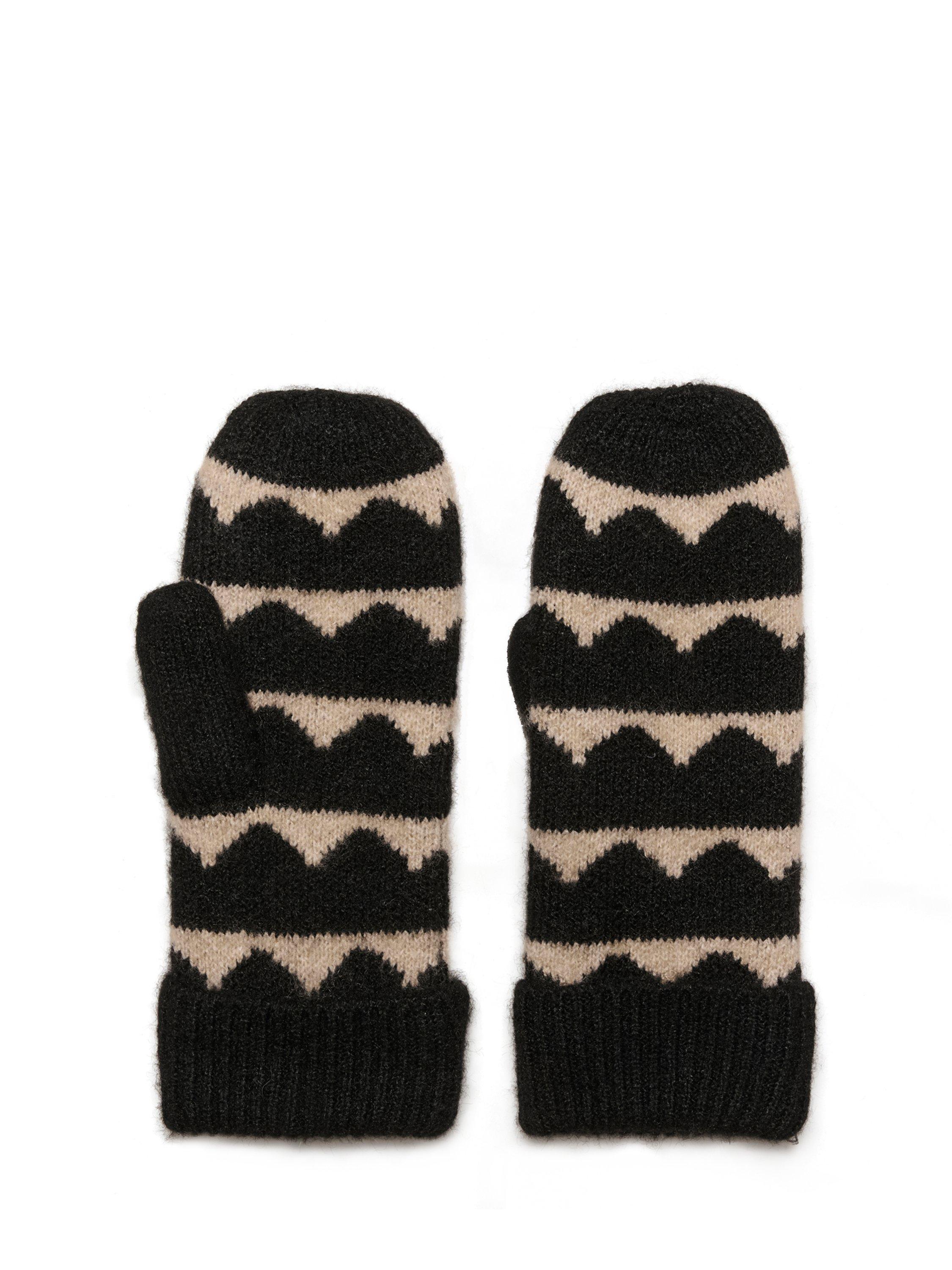 KAFFEDottia Graphic Fold Over Mittens, Black