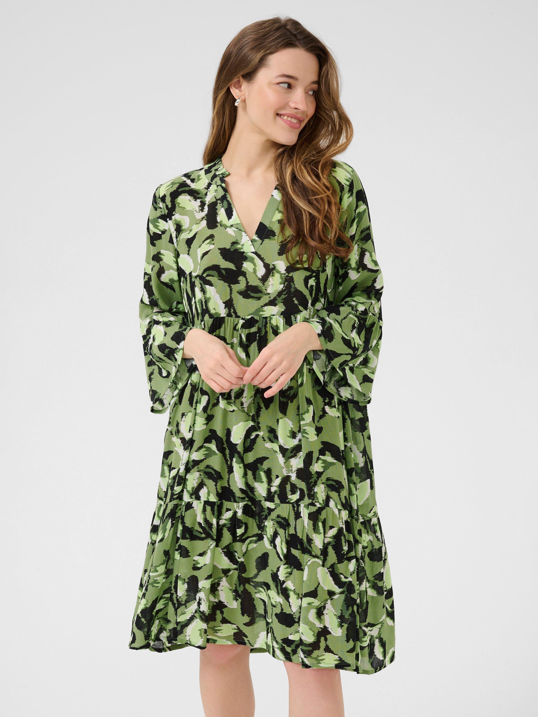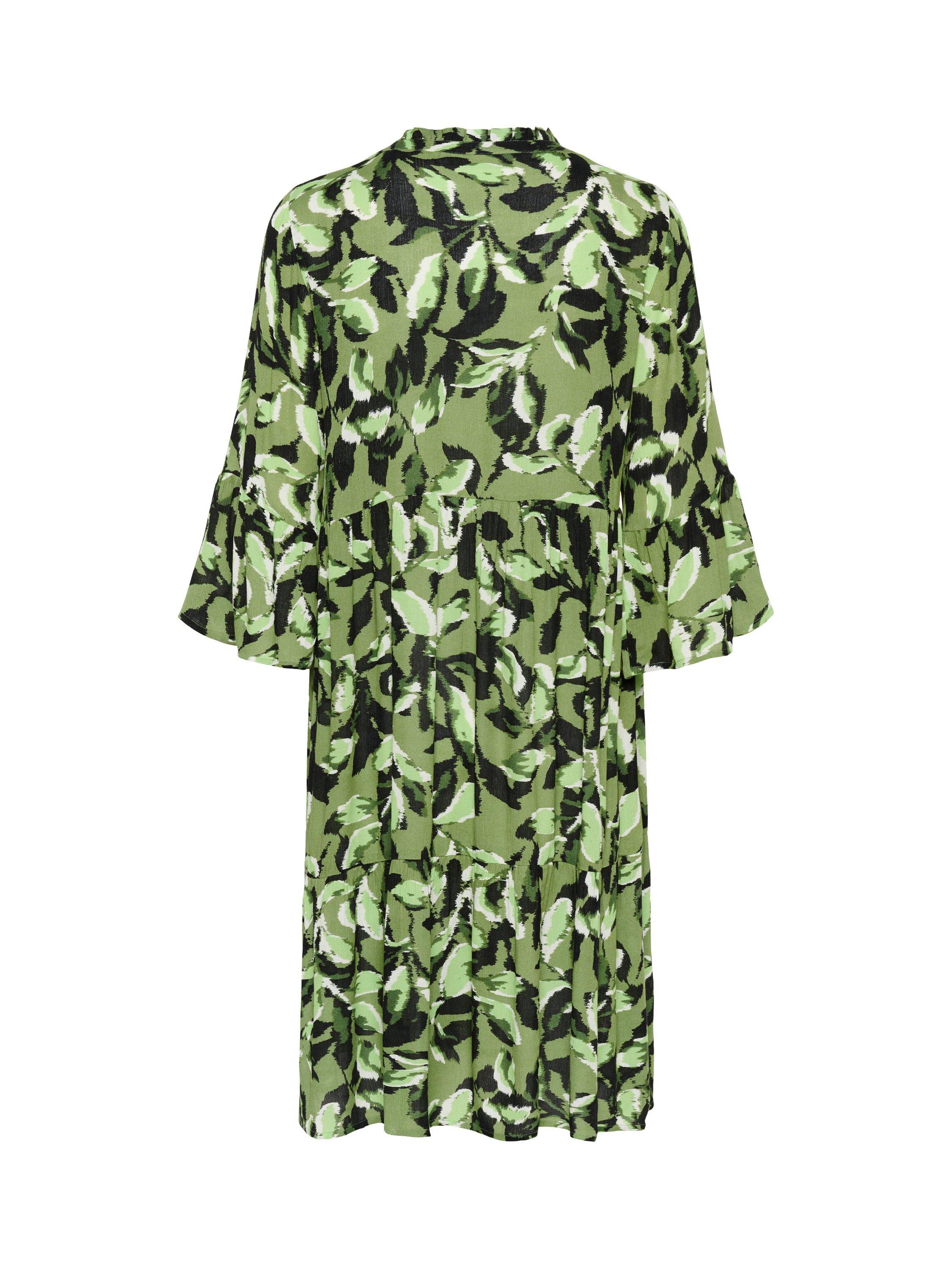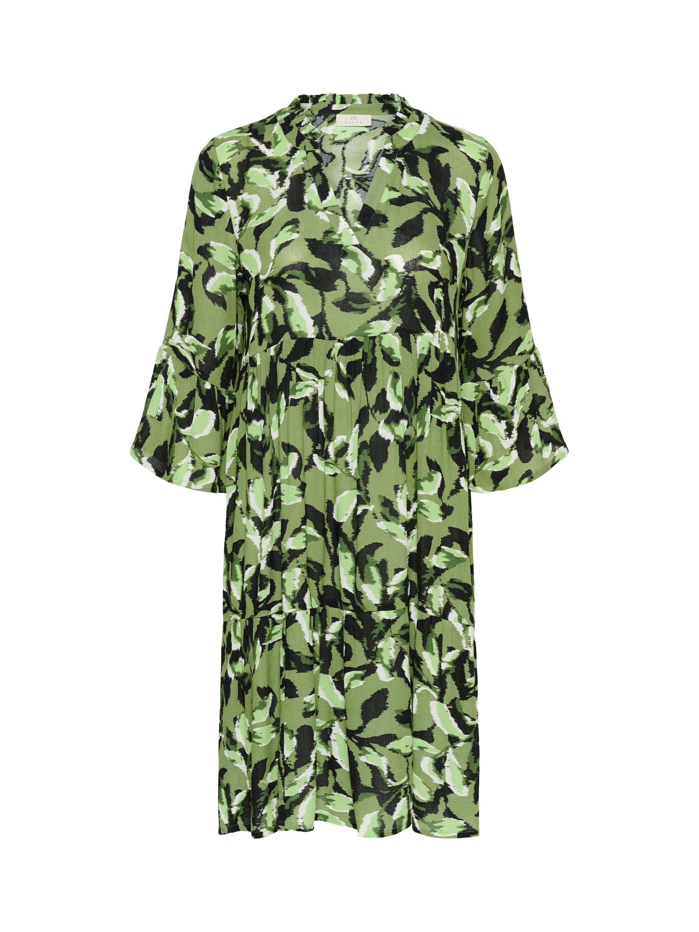In a tiered A-line silhouette, this knee length dress from KAFFE is dreamt up from whisper-weight viscose. Effortlessly flattering thanks to a fuss-free v-neckline and three quarter length sleeves, it is doused in a nature-inspired leaf print.