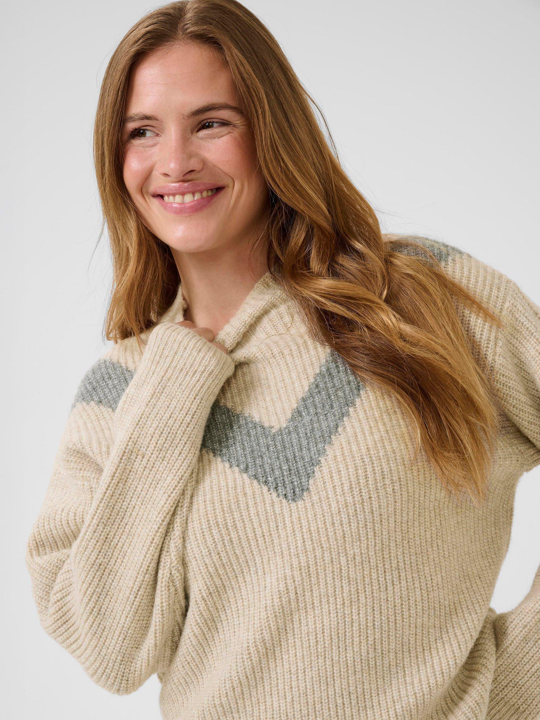 Perfect for layering with a high neckline and long sleeves, this chevron jumper by KAFFE is a firm believer of enjoying all seasons in a medium-weight knit.