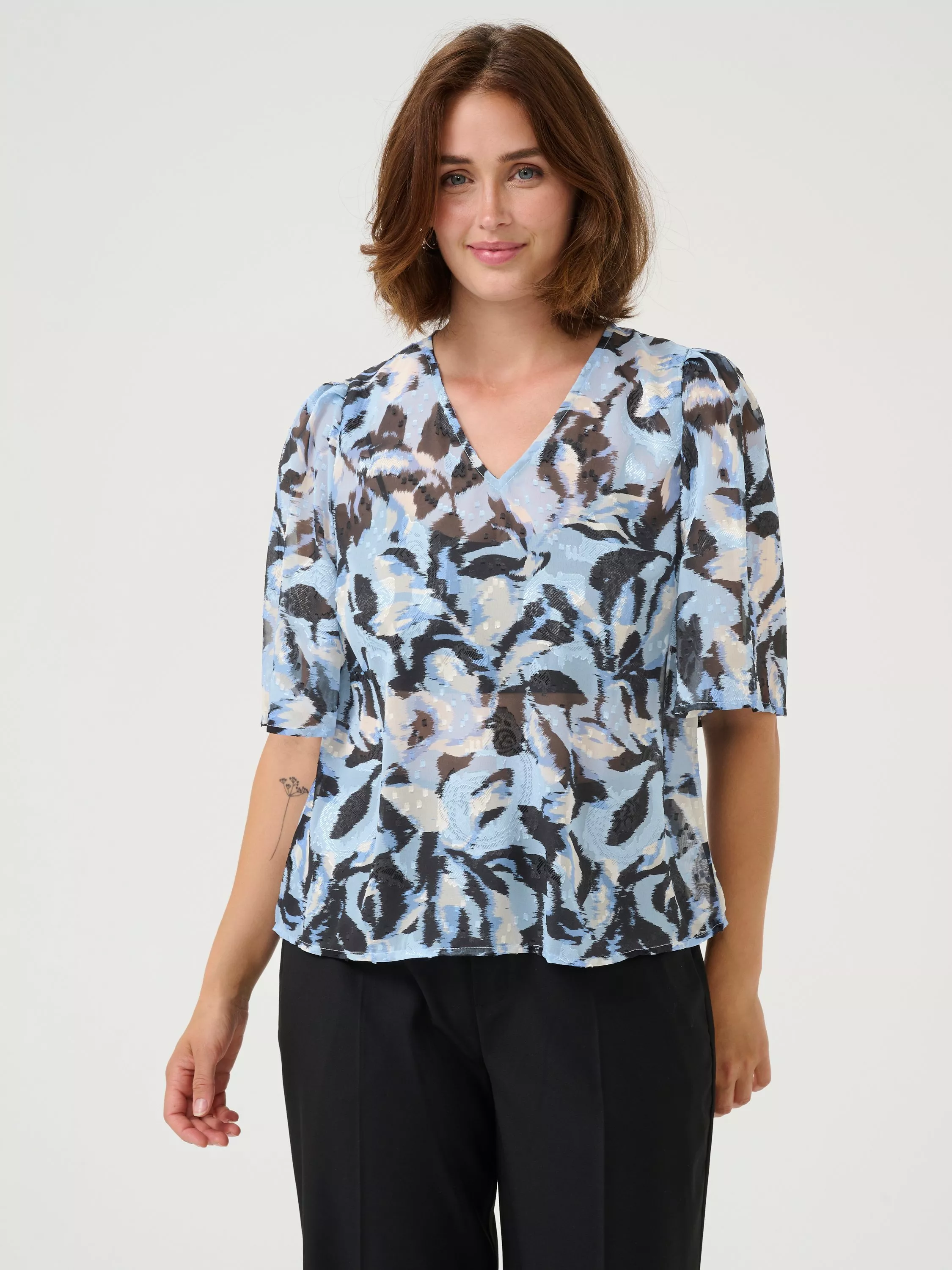 An effortless choice, this blouse from KAFFE will instantly lift your mood with its bloom-filled floral print. Cut with a classic v-neck and short sleeves, it is made from soft fabric and is an easy daytime option.