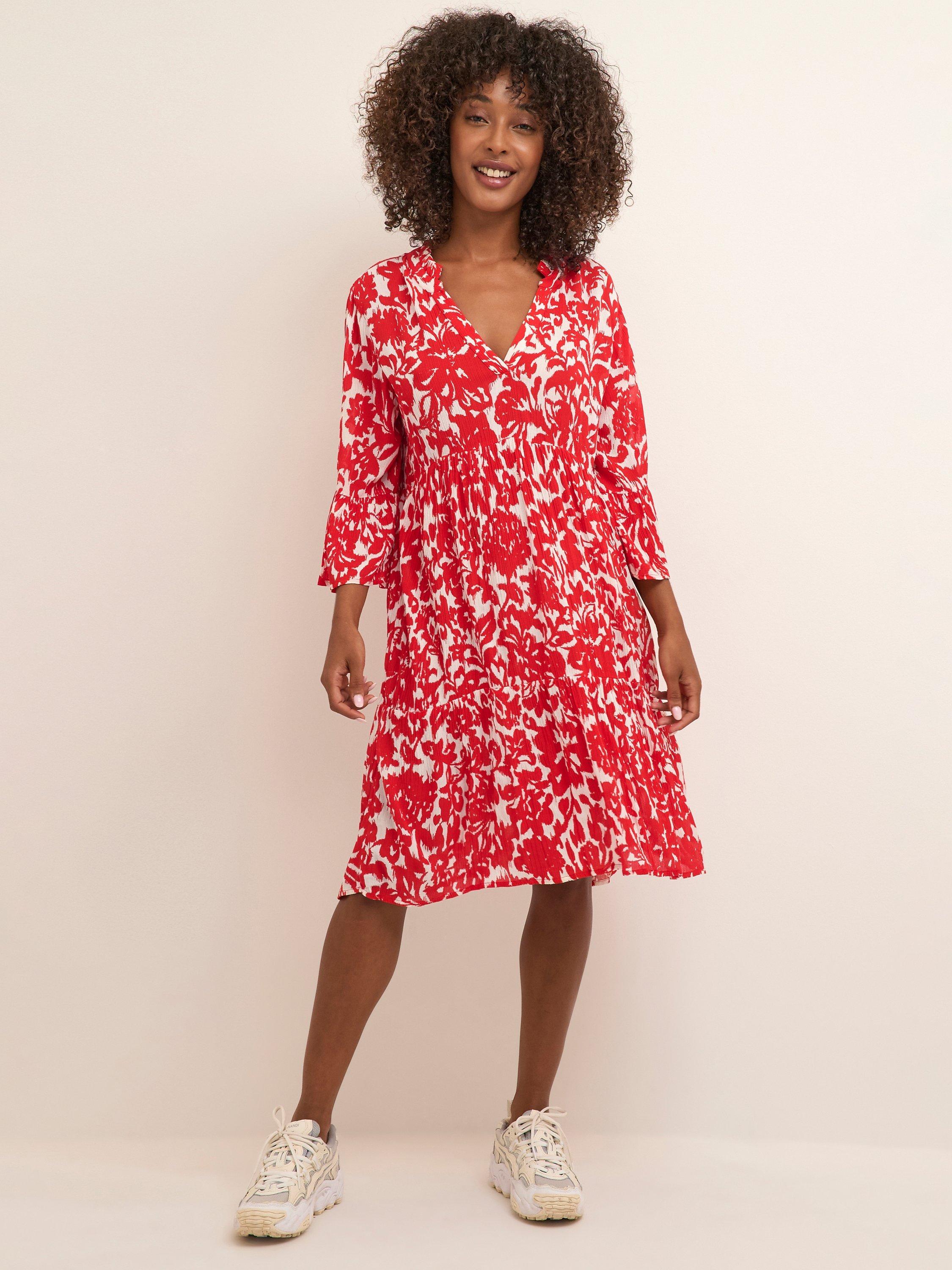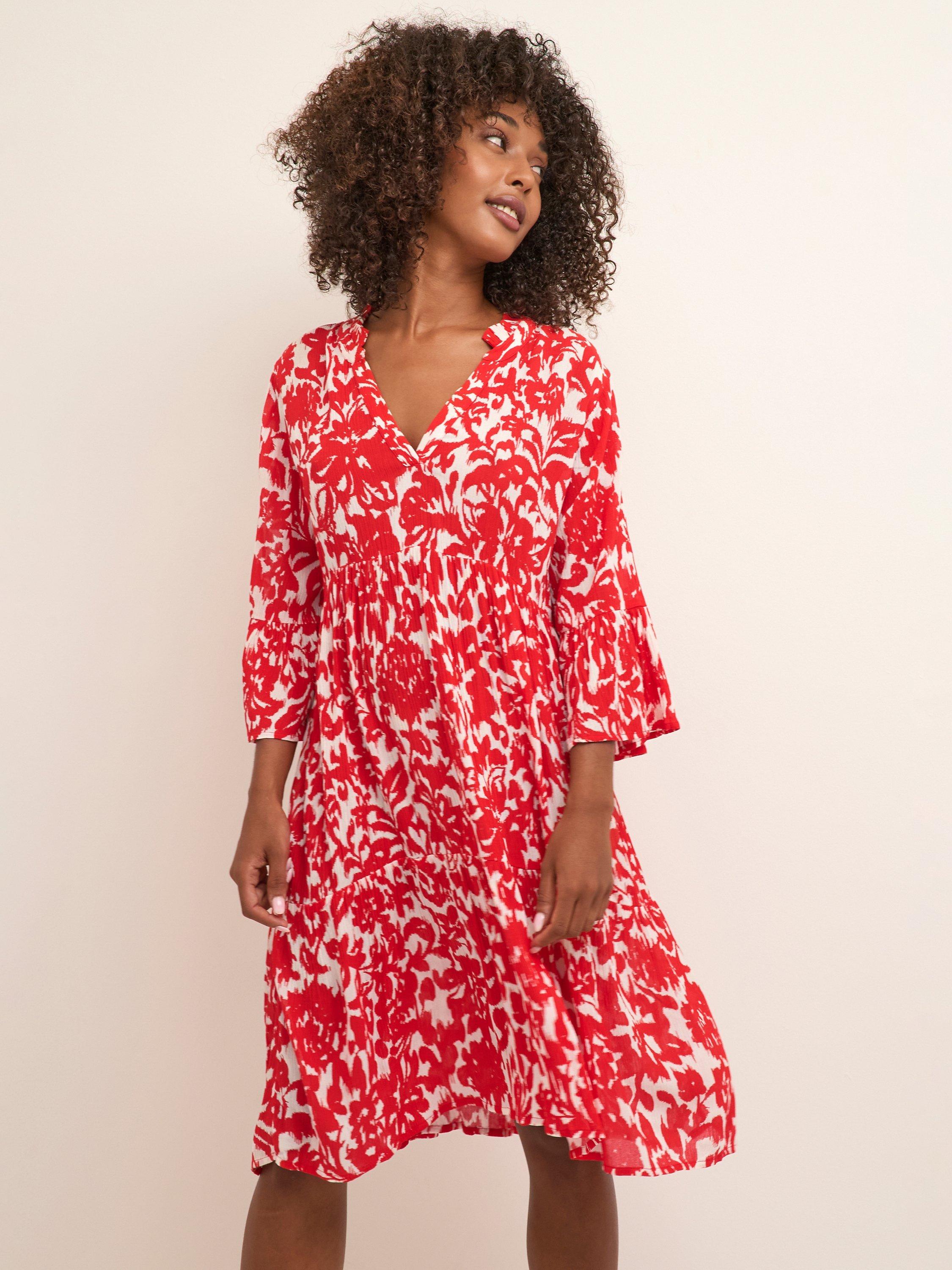 Flattering in all the right places, this knee length dress from KAFFE is made from viscose that's beloved for its weightless feel. With a universally flattering v-neckline and three quarter length sleeves, this style is illustrated with forever covetable blooms.