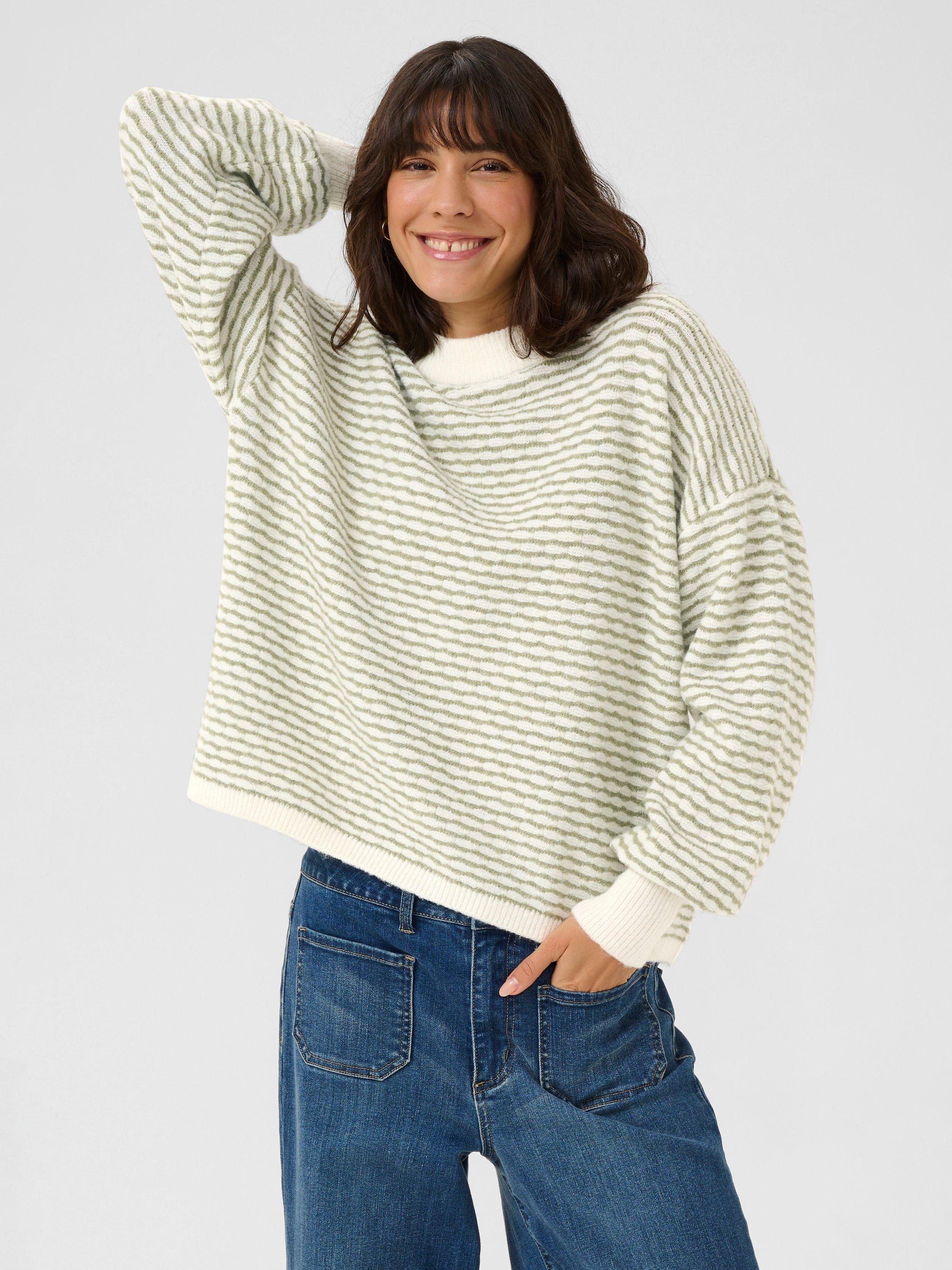 The ellery pullover is the perfect style to add to your everyday wardrobe this season. It has a crew neck and a casual fit with drop shoulders, and it is made in a patterned and textured knit with solid-coloured edges. The sleeves are long and loose, and they are gathered in a wide knit cuff.