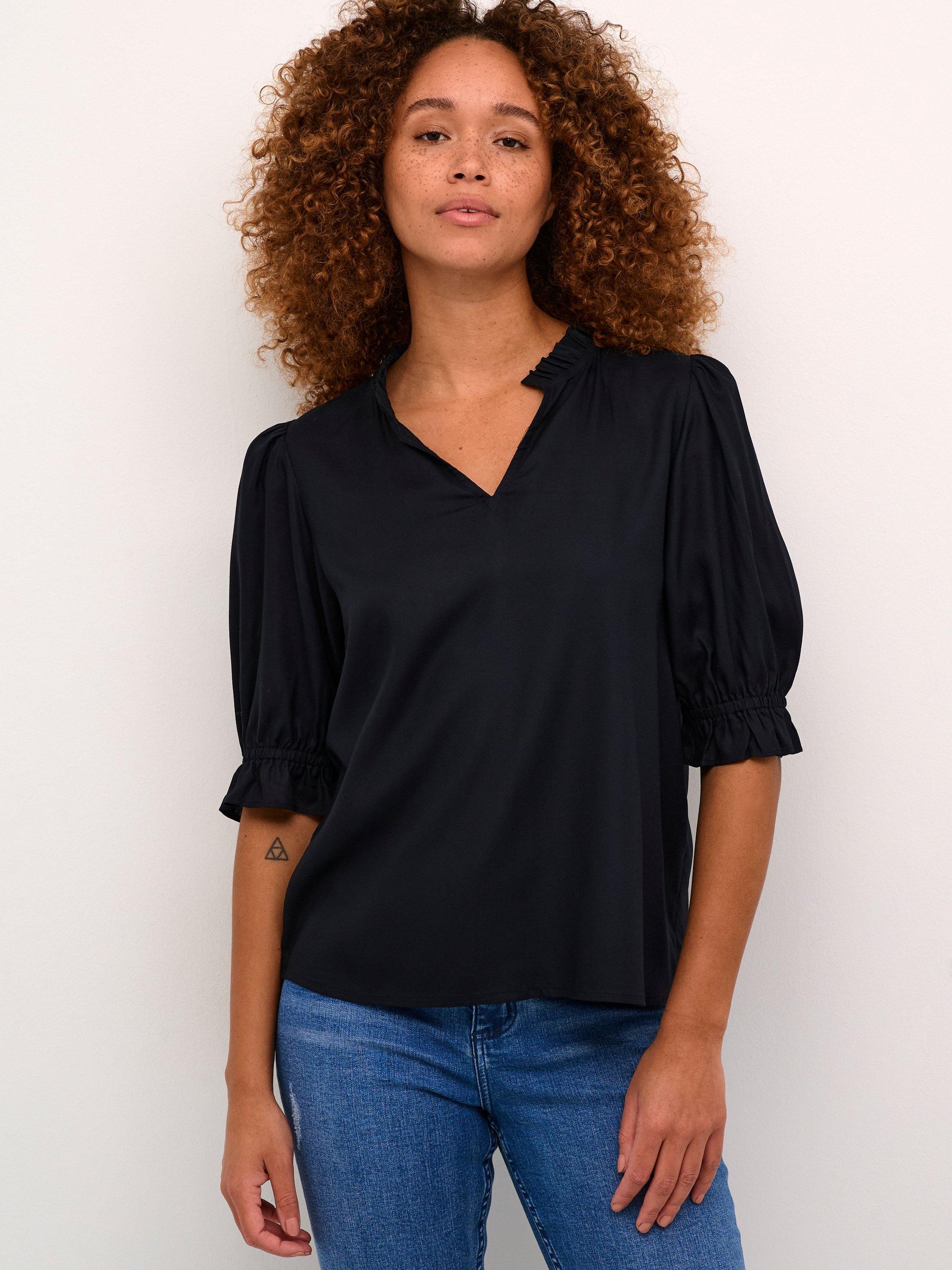 An effortless choice, this blouse from KAFFE makes for the perfect companion to patterned layers. Cut with a classic v-neck and short sleeves, it is made with light yet robust fabric for longevity of wear and is an easy daytime option.