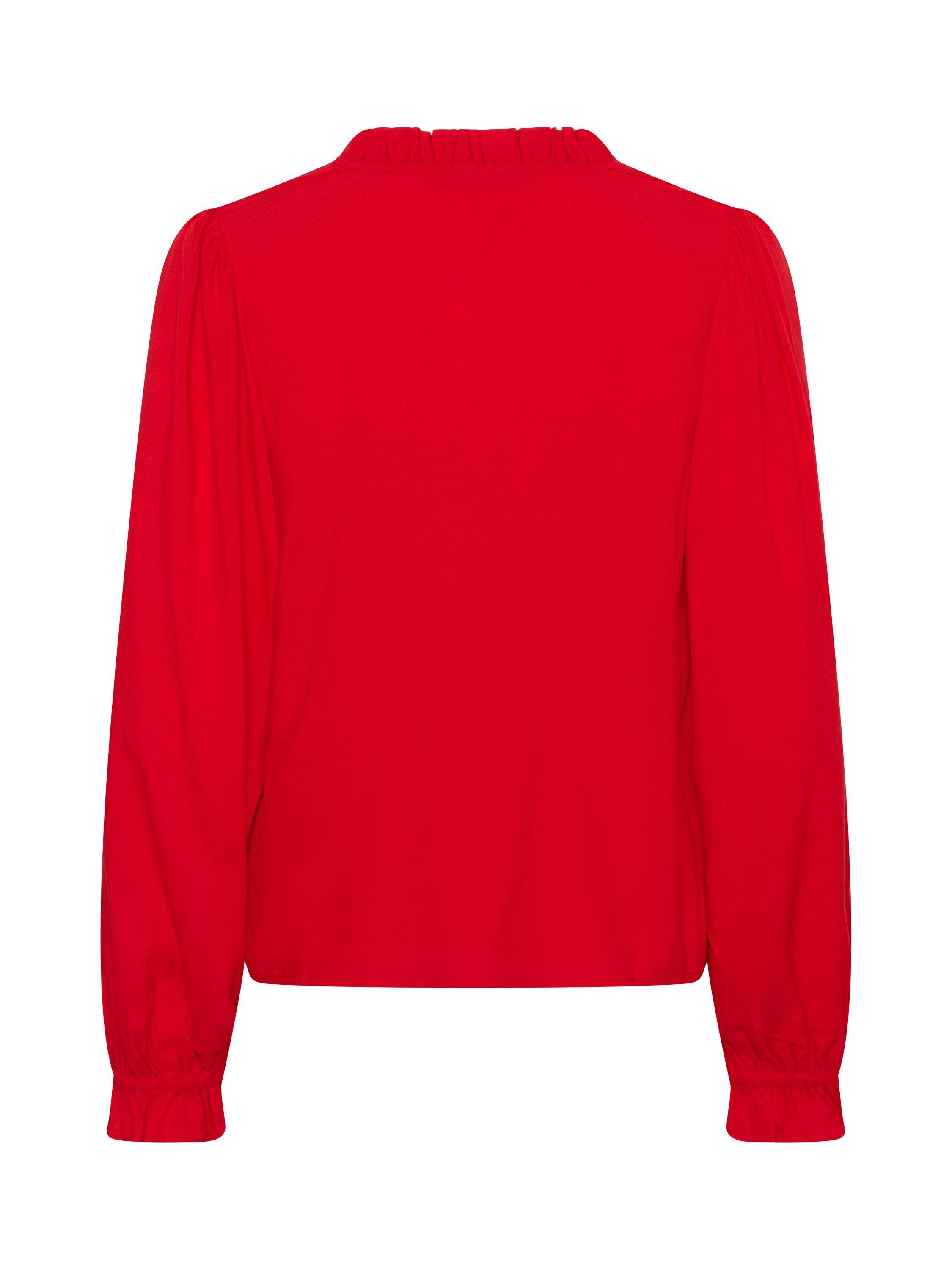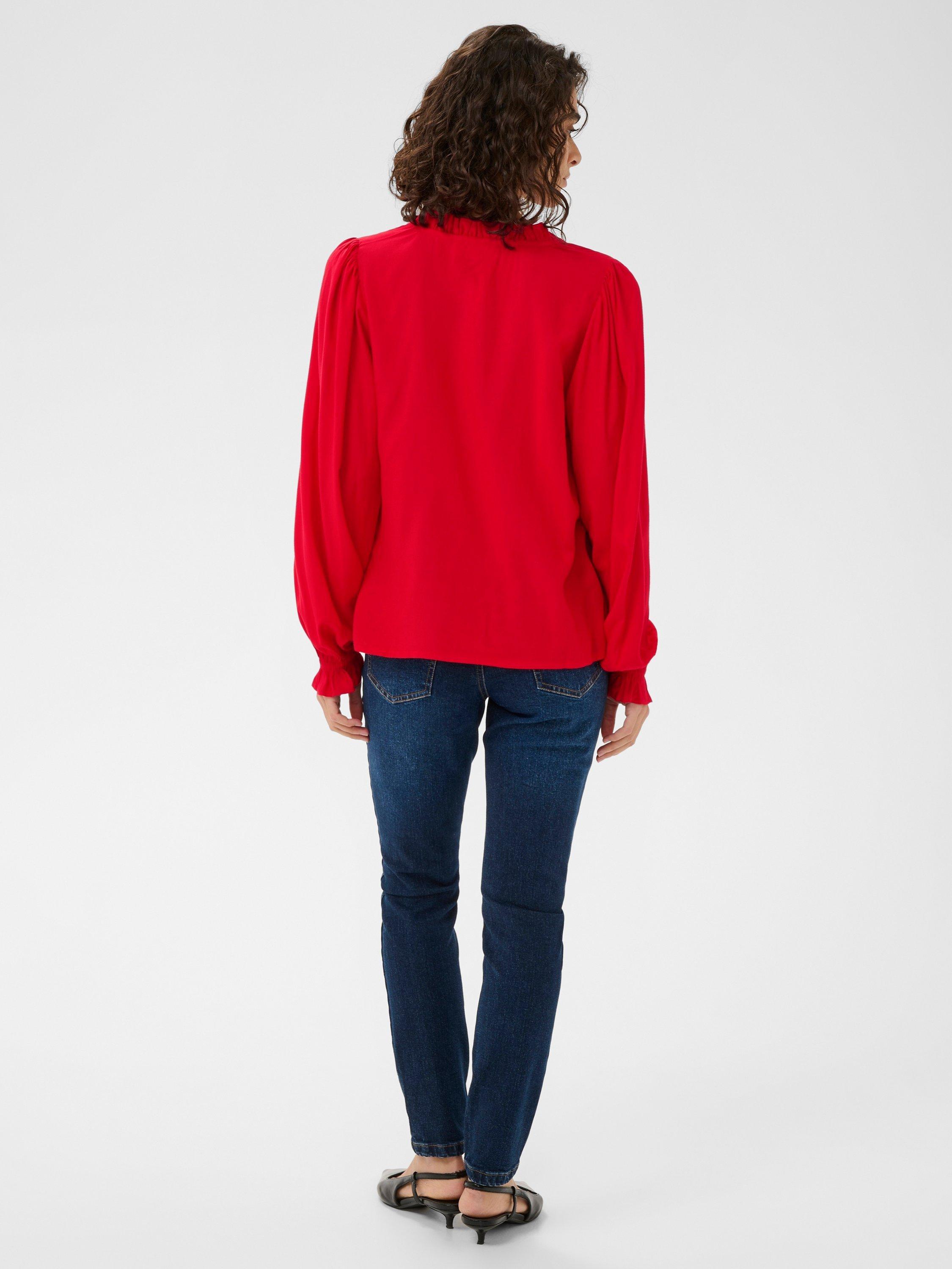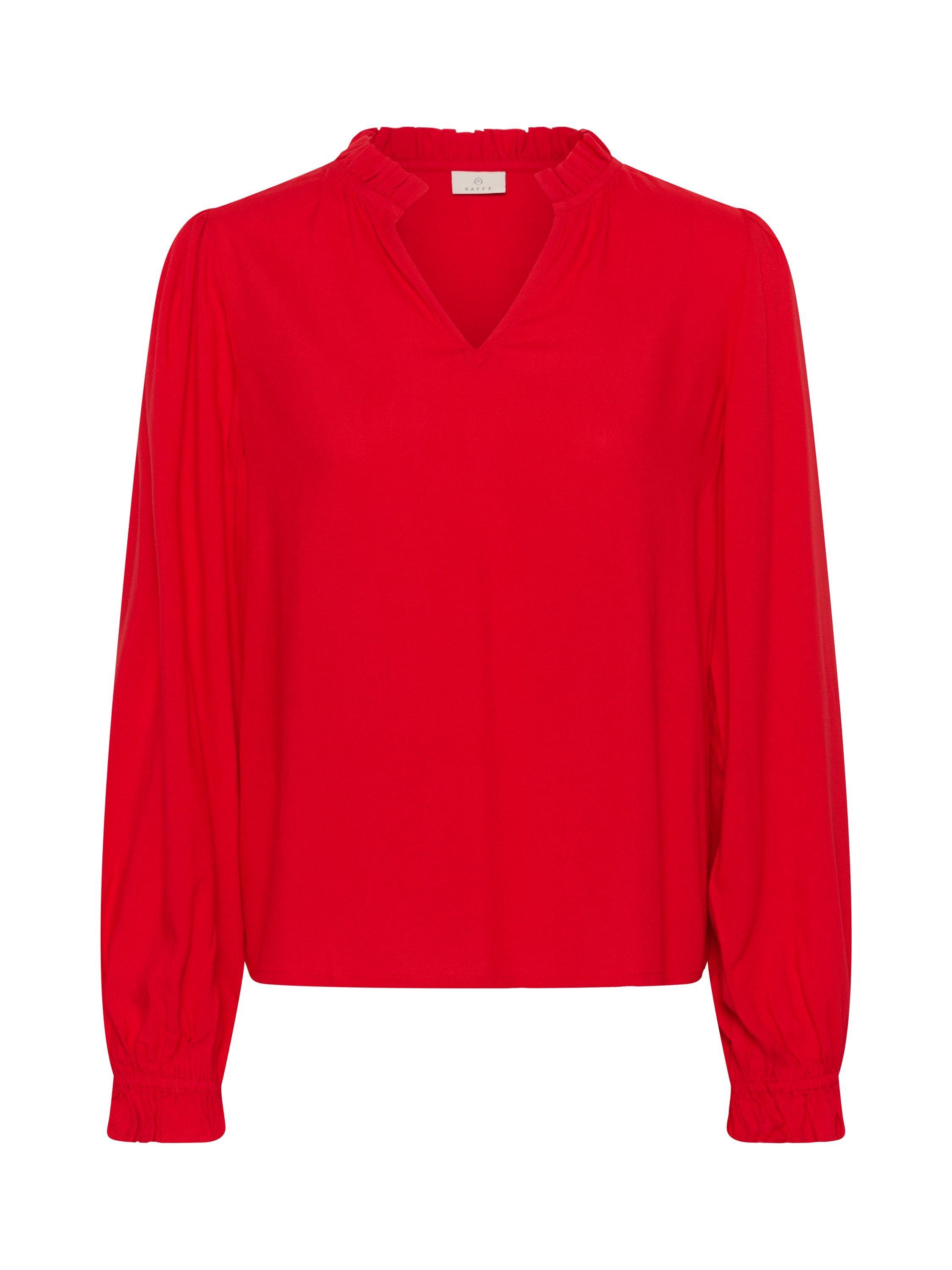Softly draped V-neck blouse, billowy long sleeves and gathered cuffs for graceful movement, ideal for weekend outings or sophisticated office looks.