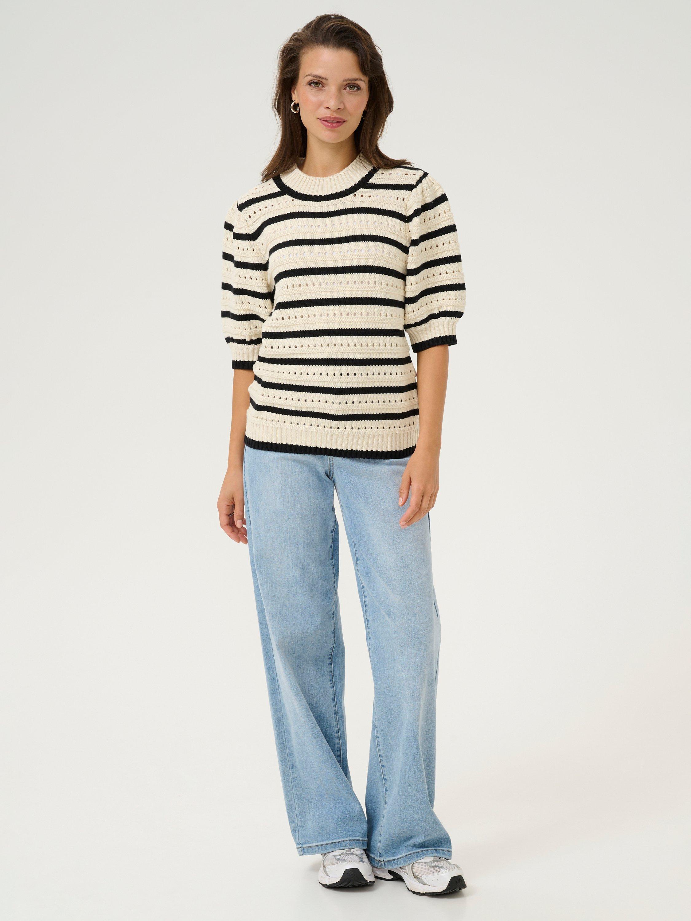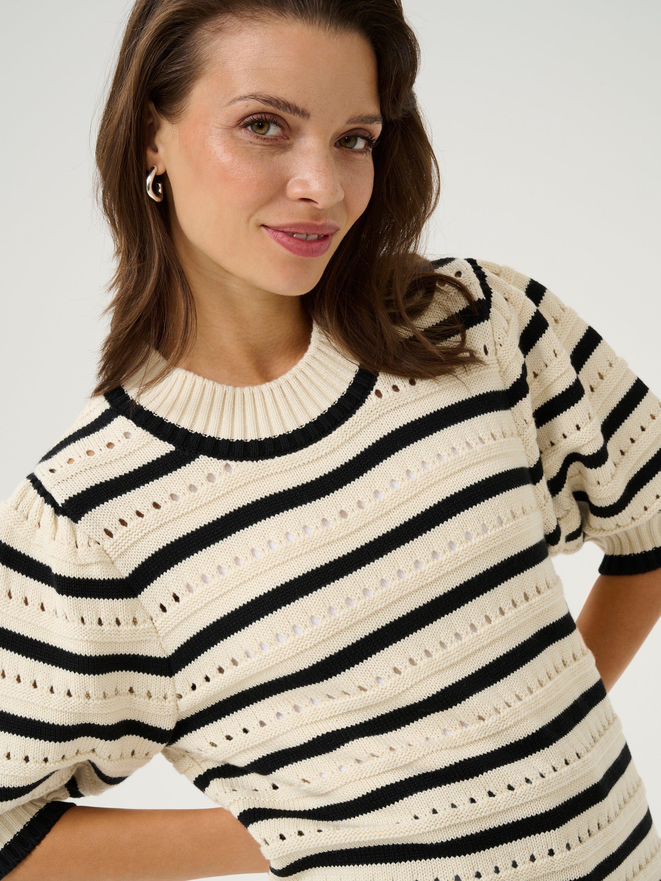Topped with a crew neck and elbow length sleeves, this mid-weight stripe jumper from KAFFE is cut from a cotton-rich blend for durable comfort that lasts.
