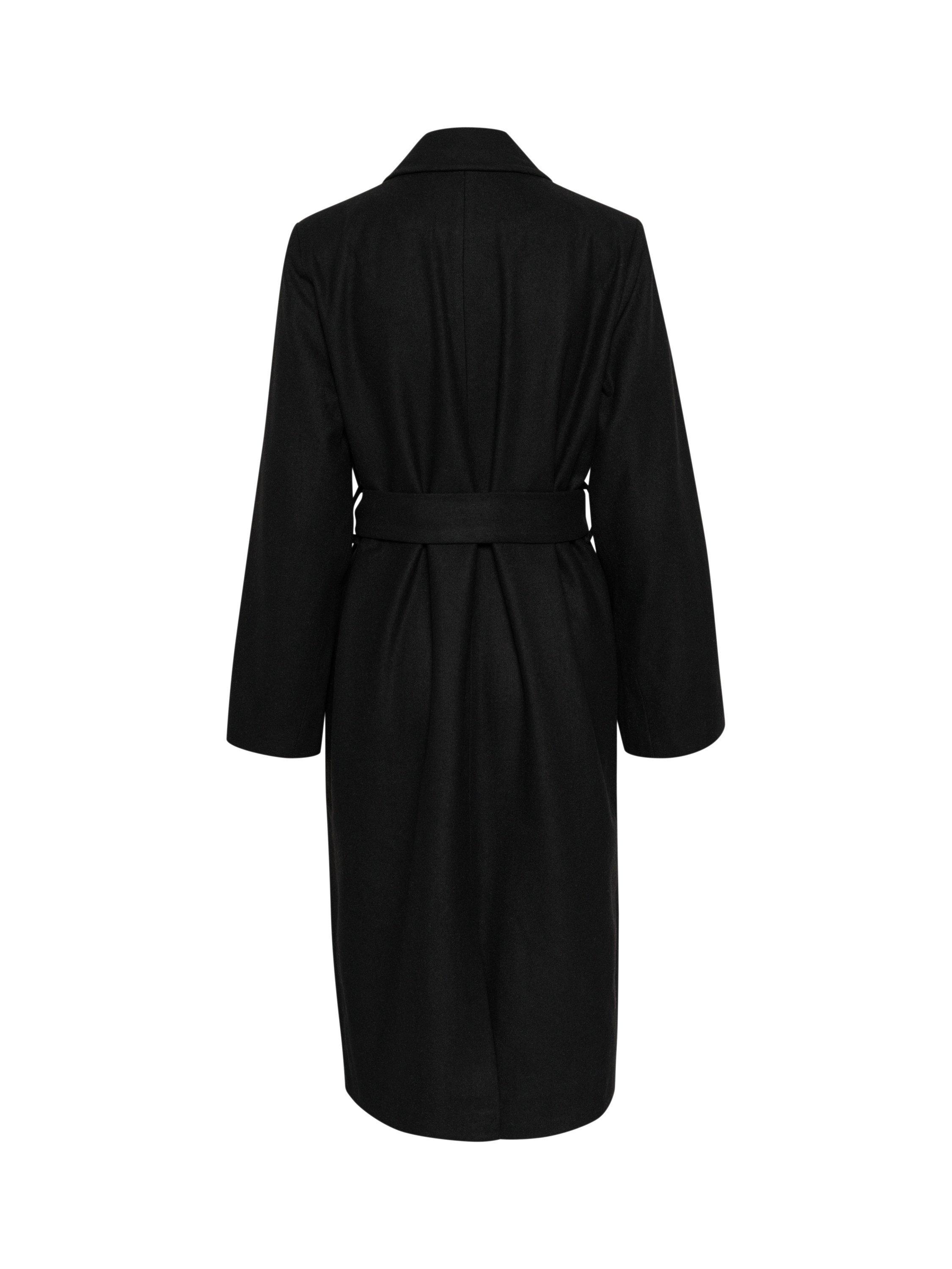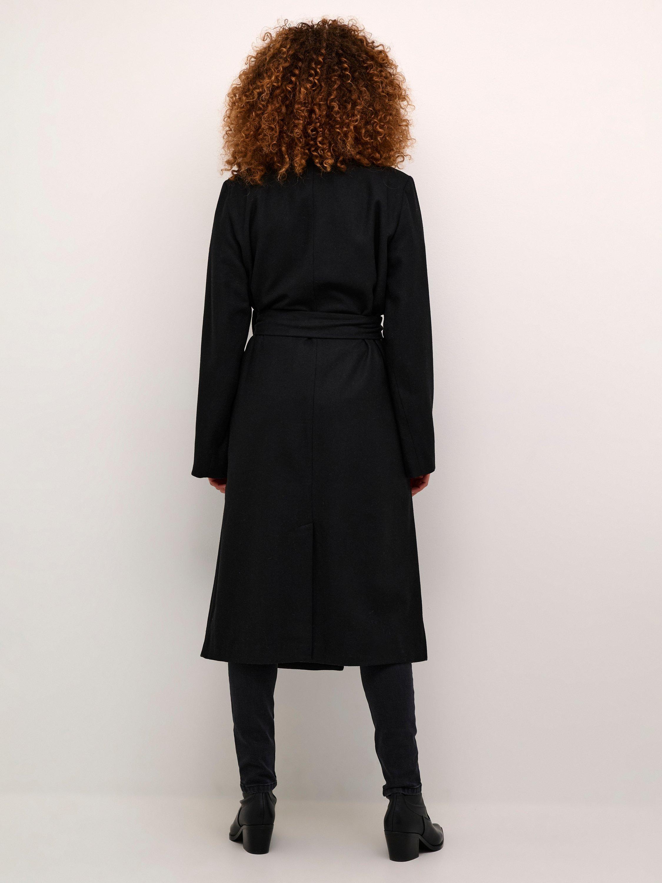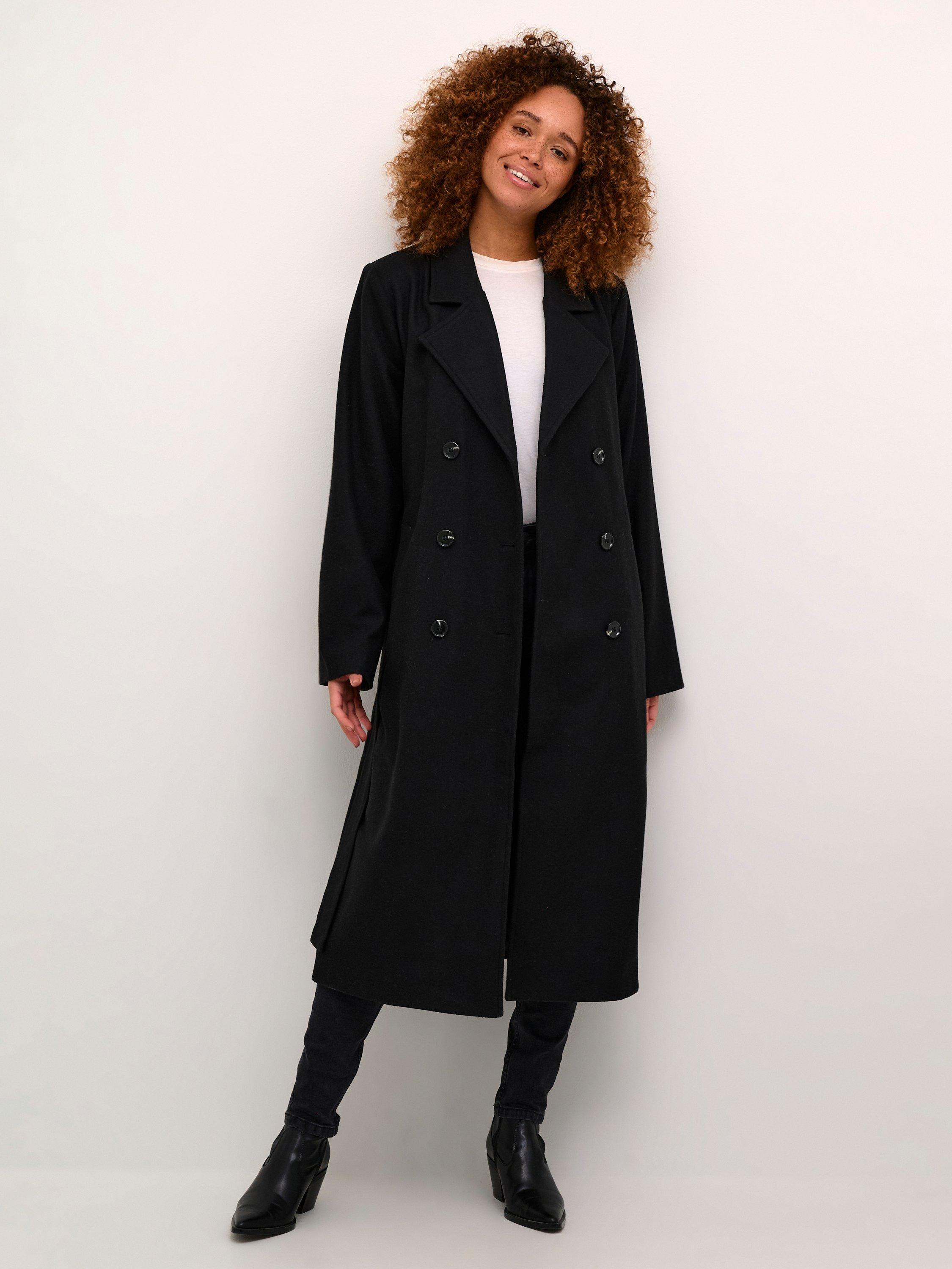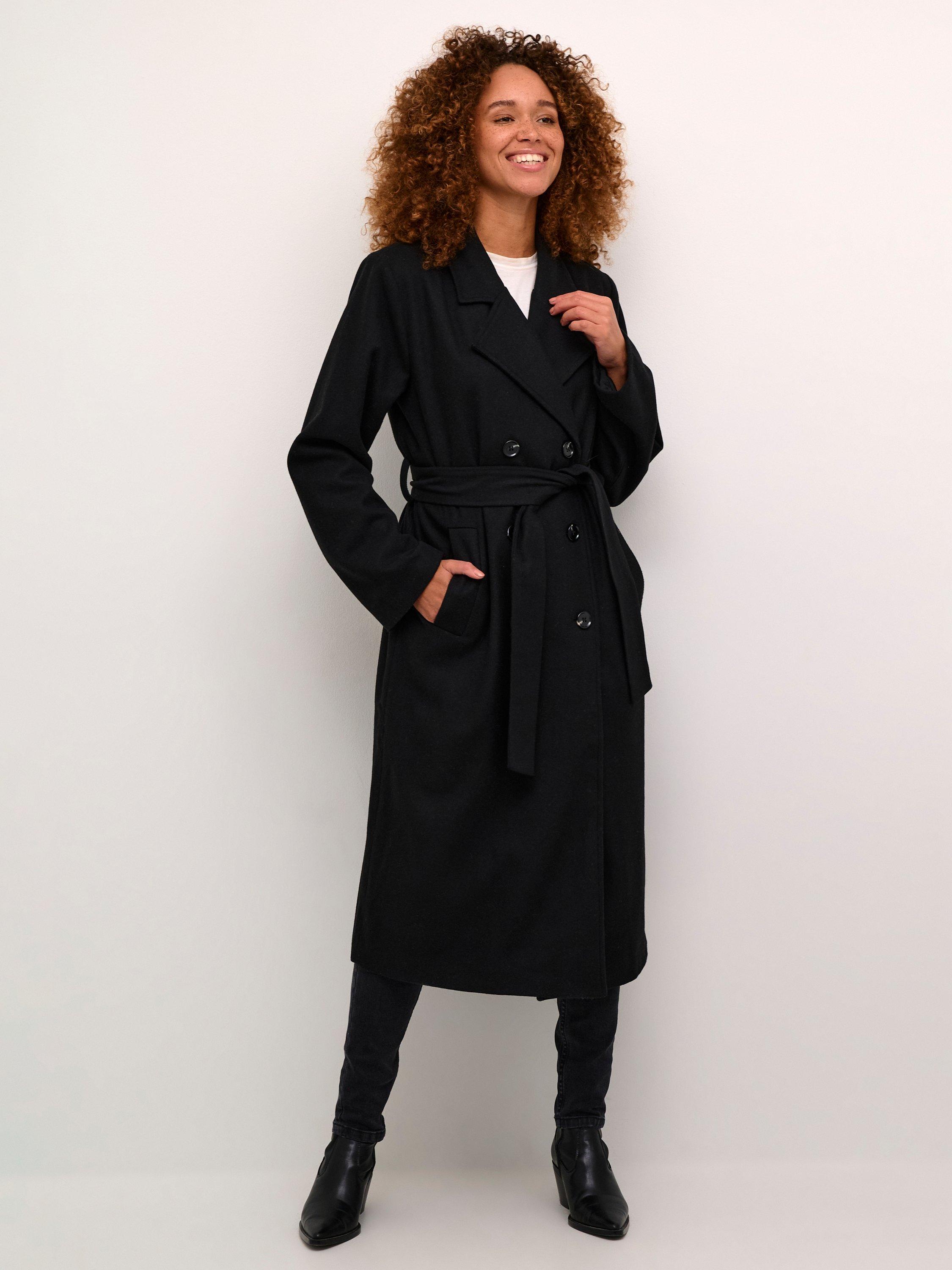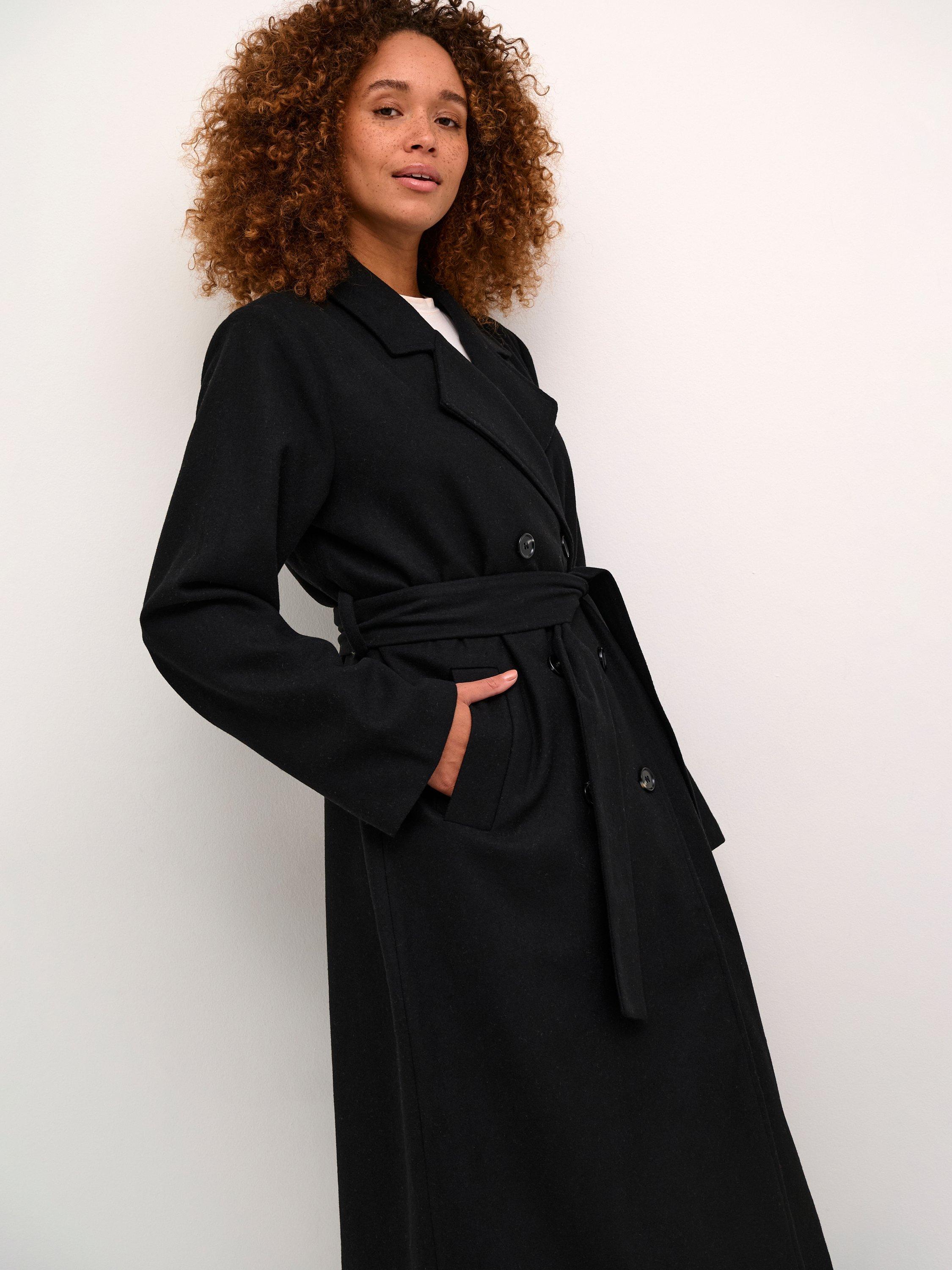 The fanny coat is a timeless and versatile piece of outerwear, that will look great with any outfit. It is double-breasted with a notch lapel, and it has a tying belt at the waist and slanted front pockets. The coat has a casual fit and long, straight sleeves, and it comes all the way down to the mid-calves.