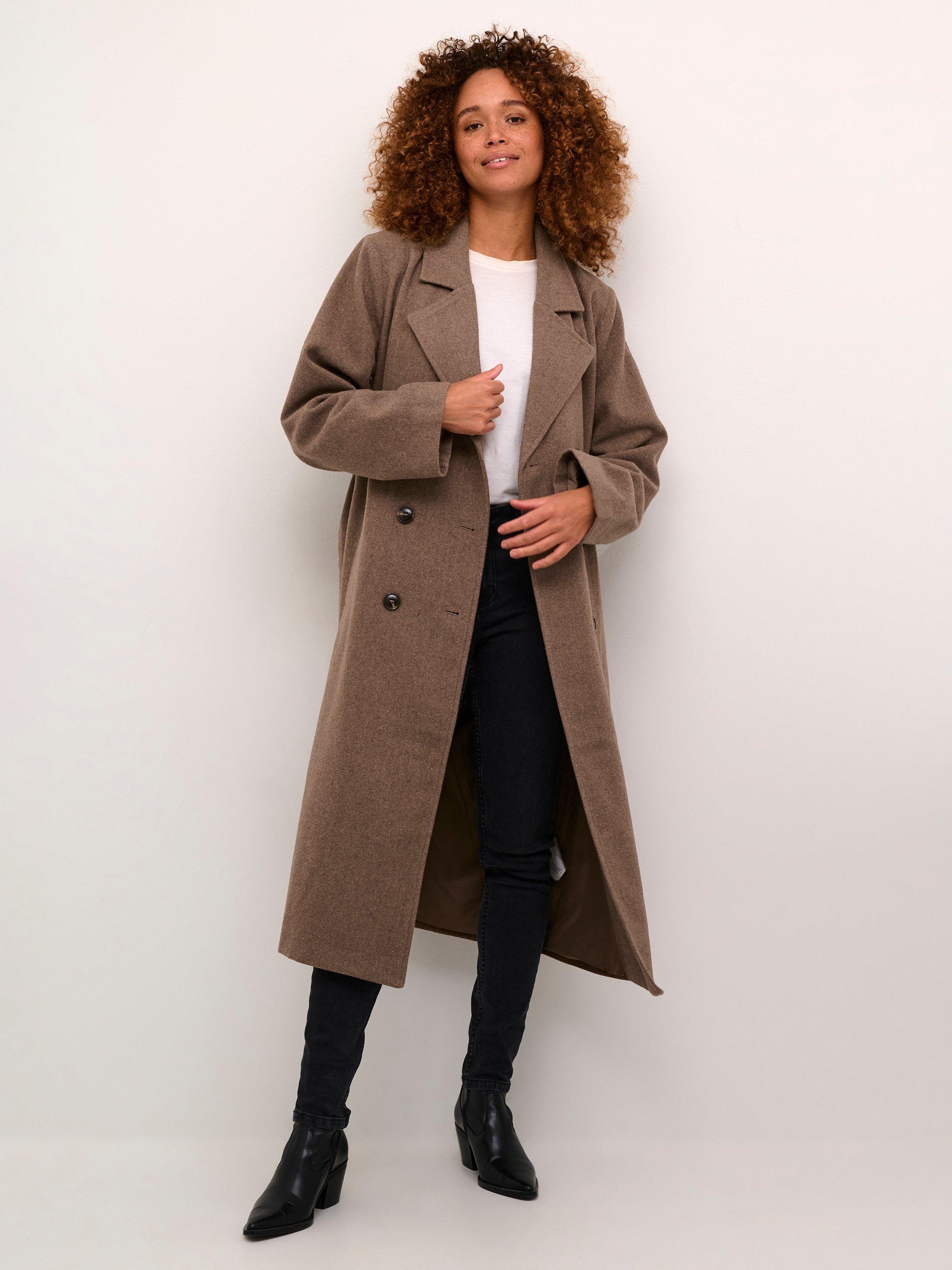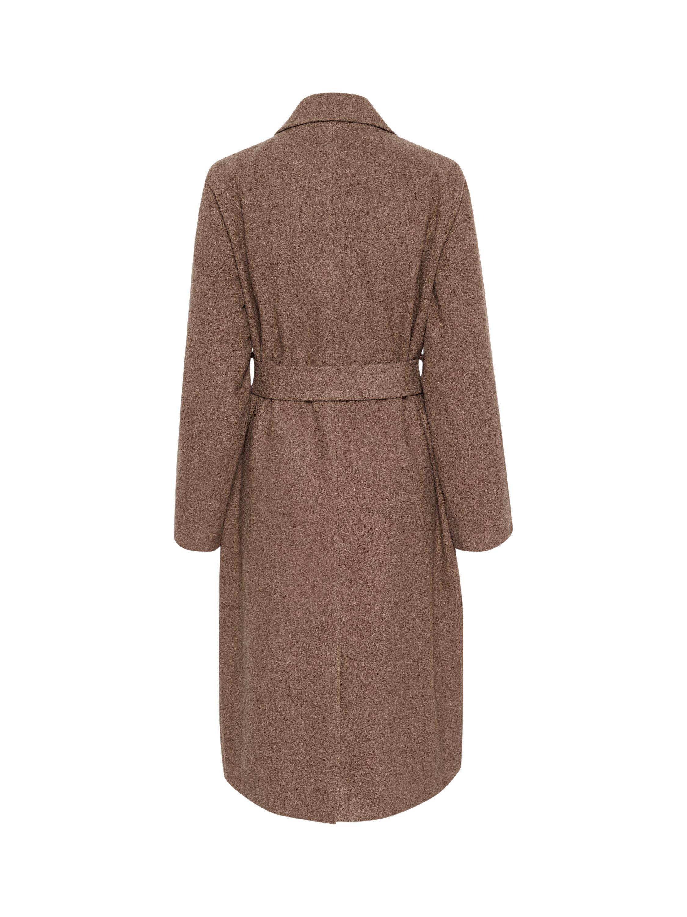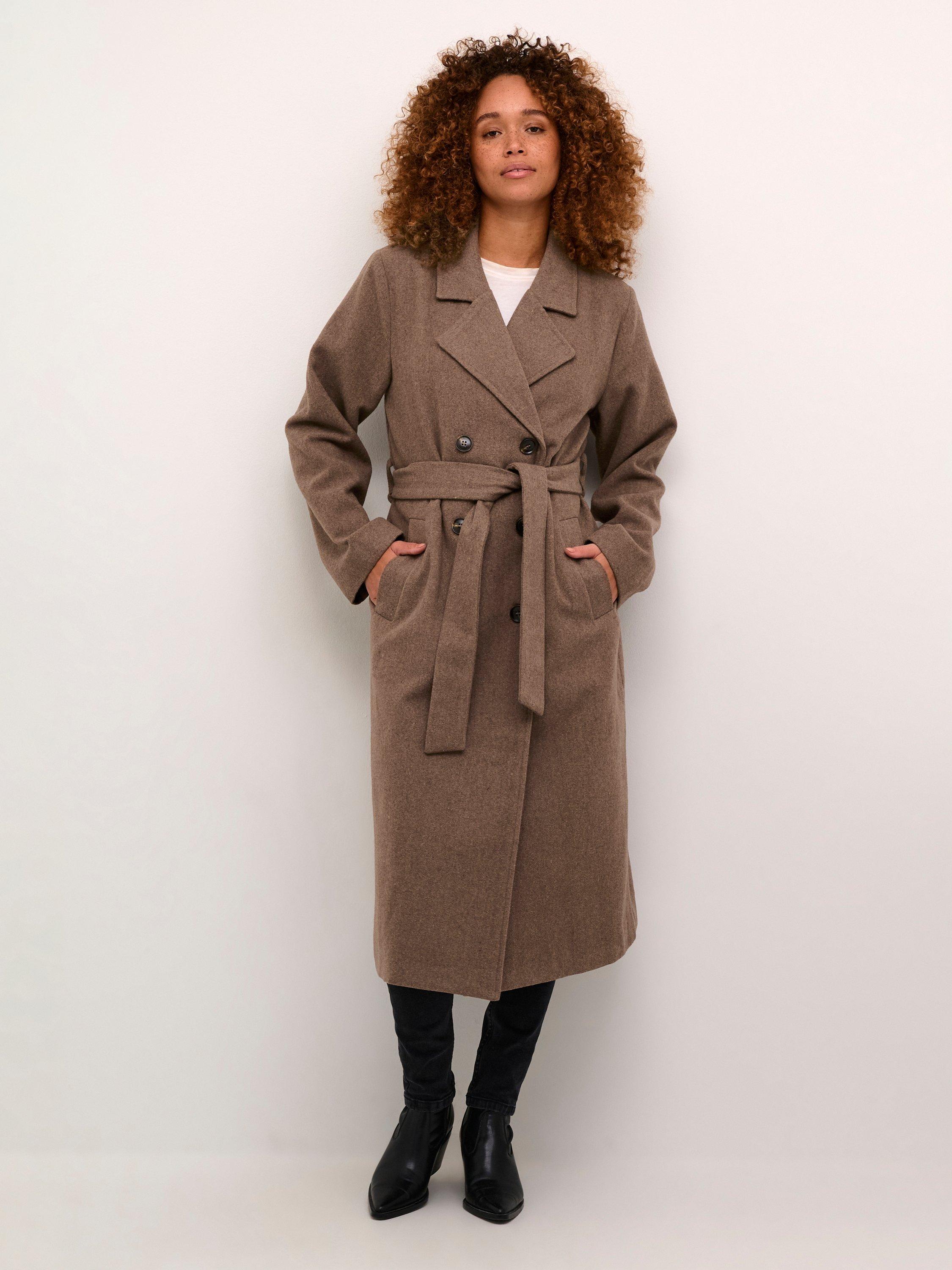 The fanny coat is a timeless and versatile piece of outerwear, that will look great with any outfit. It is double-breasted with a notch lapel, and it has a tying belt at the waist and slanted front pockets. The coat has a casual fit and long, straight sleeves, and it comes all the way down to the mid-calves.