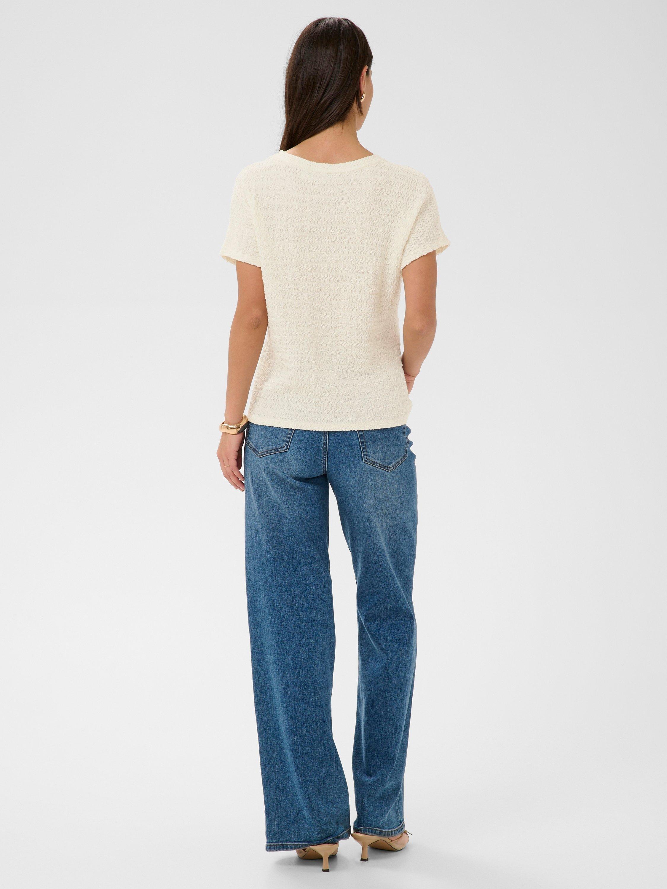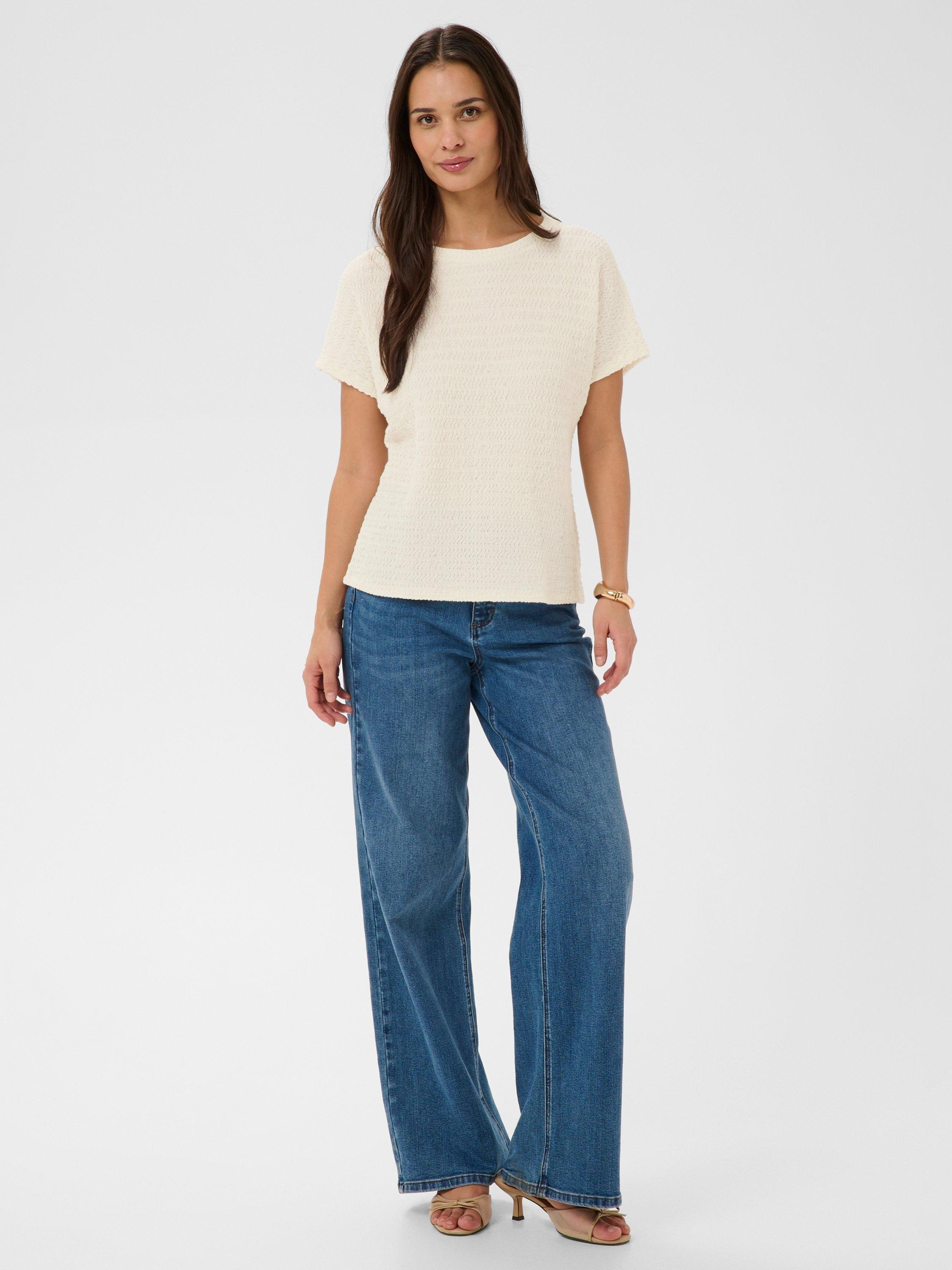 An essential jersey top by KAFFE. Featuring a round neck, short sleeves and easy fit, its soft textured fabric skims for a flattering drape. A great piece for everyday.