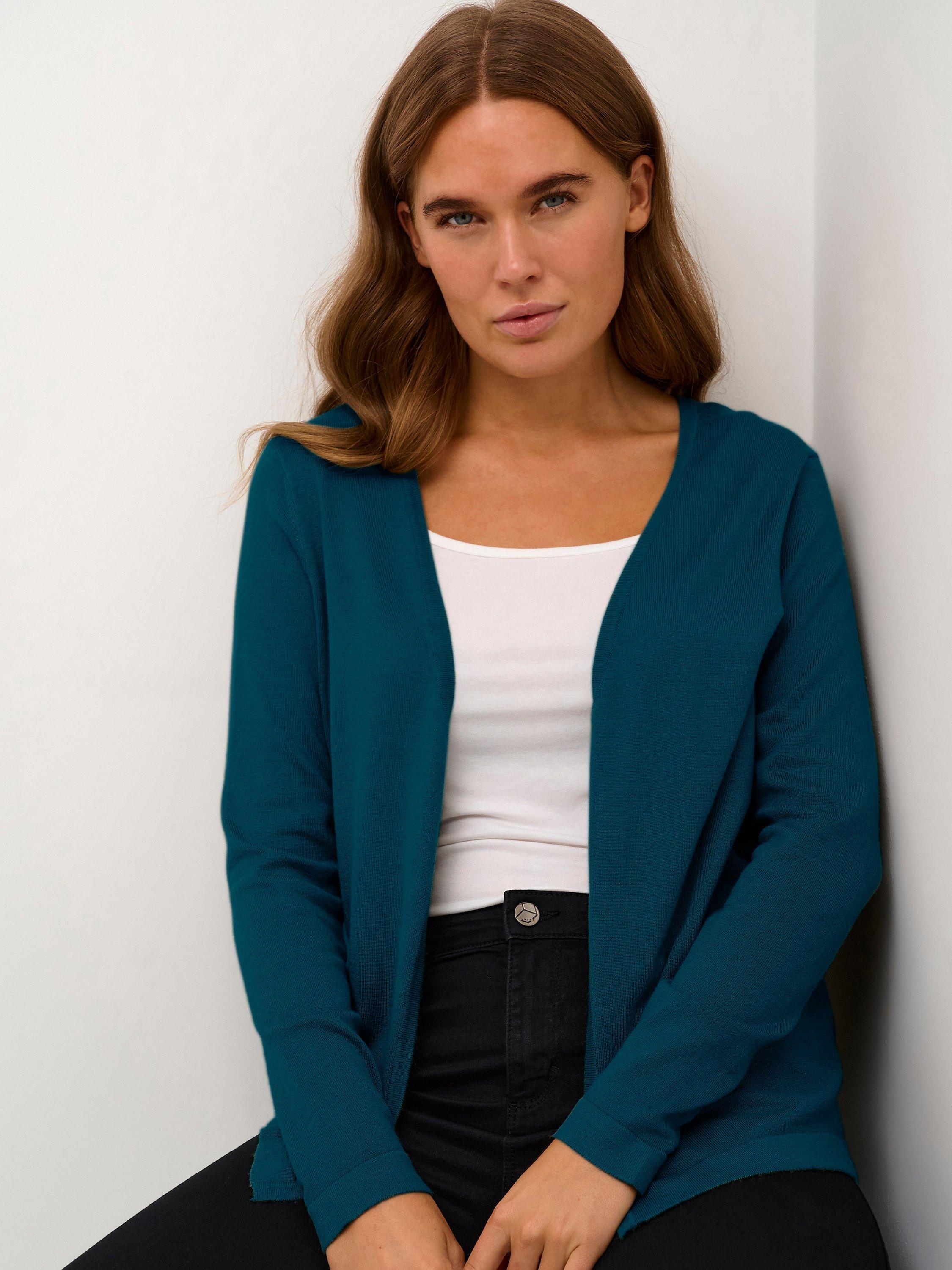 A handy layering piece for when the temperature cools, this cardigan from KAFFE is made with smooth, blended fabric for light and comfortable wear.