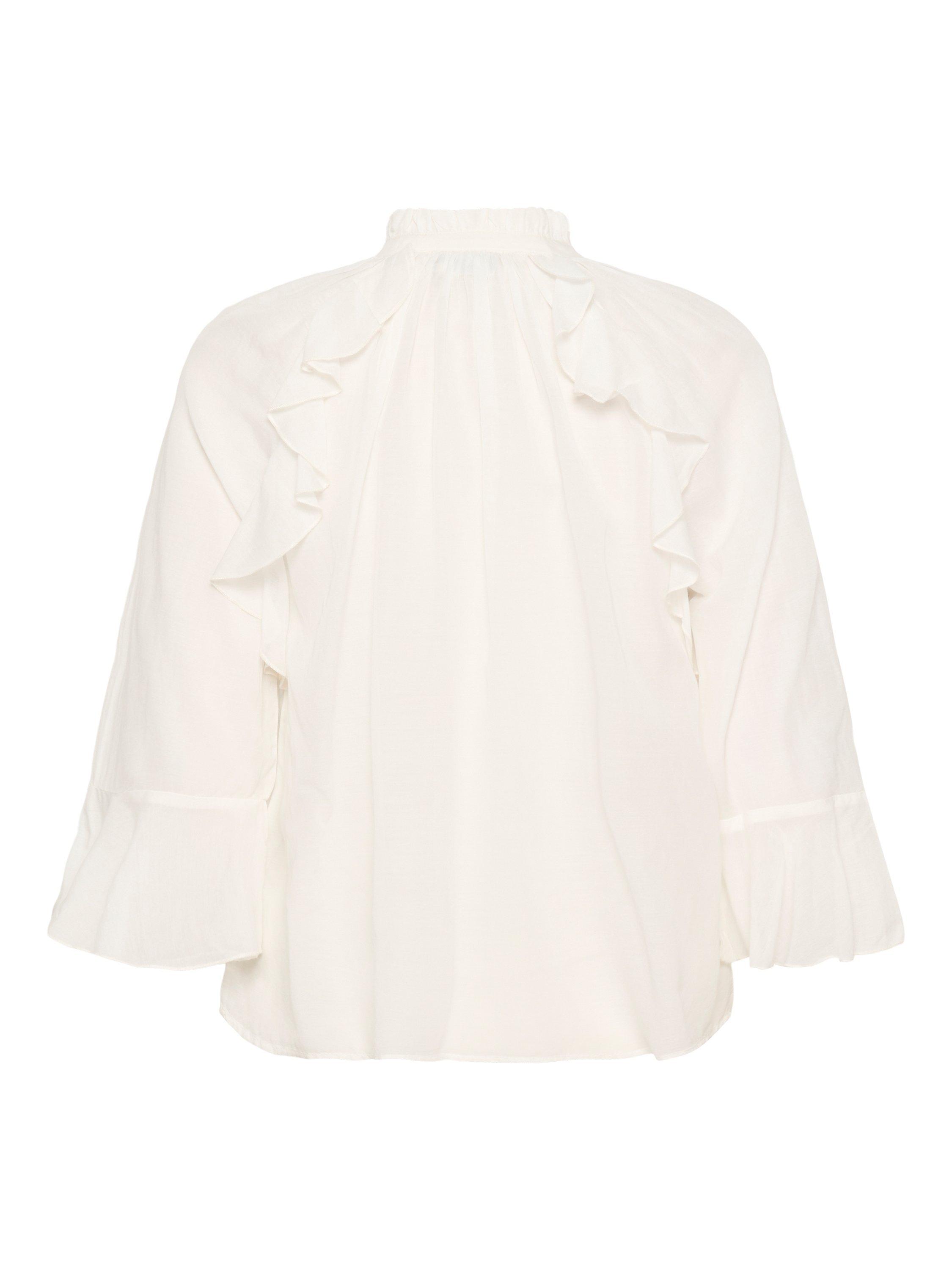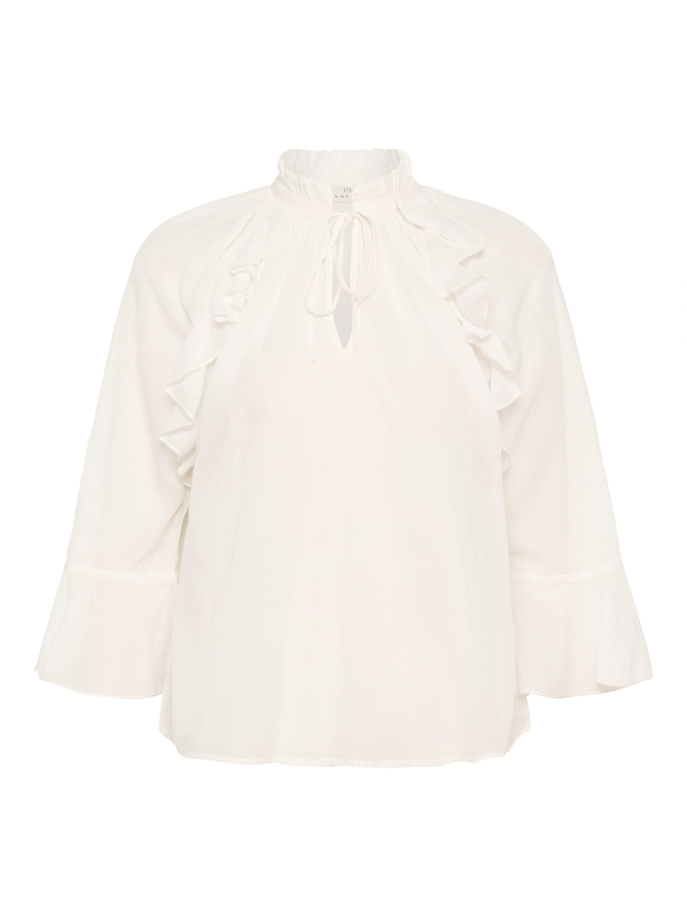 An airy blouse by KAFFE, made from a comfortable cotton-rich fabric with cascading ruffles. With a tie neck and three-quarter length bell sleeves, it's effortless style for daily dressing.