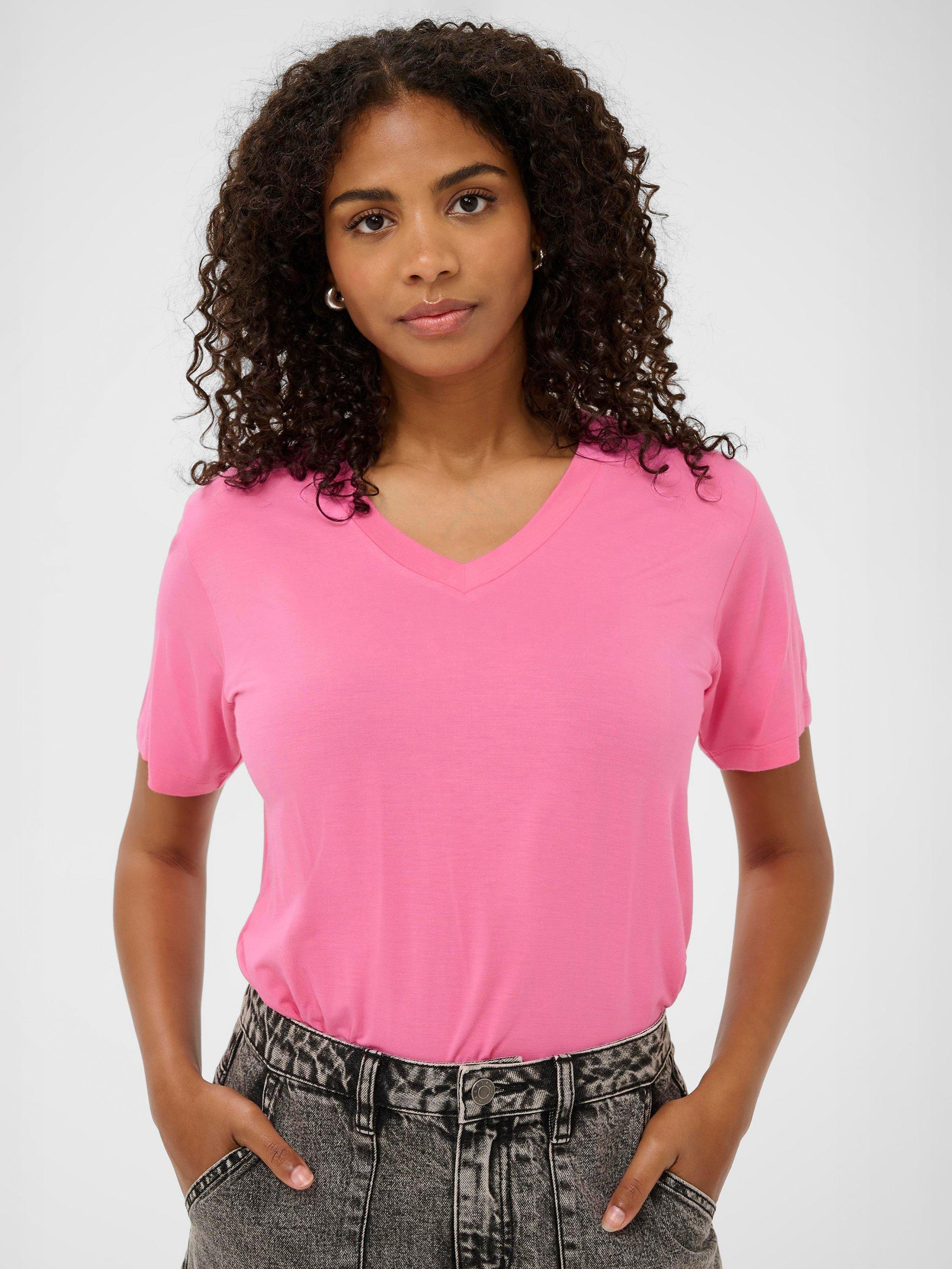 Experience ultimate comfort with the the Frida V-Neck T-Shirt by Kaffe, crafted from eco-friendly viscose with a hint of stretch for a perfect fit.