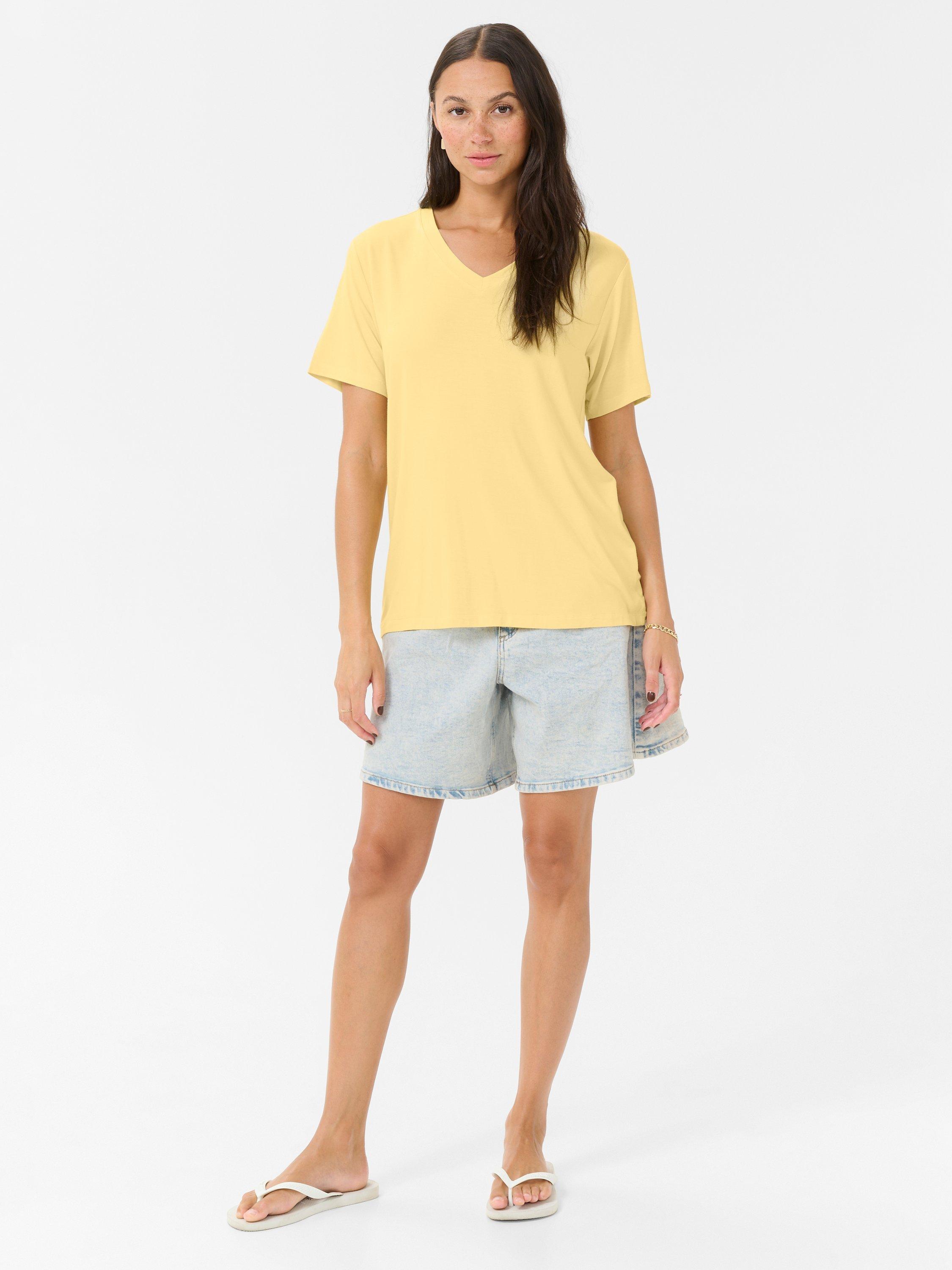 KAFFEFrida V-Neck T-Shirt, Mid Yellow