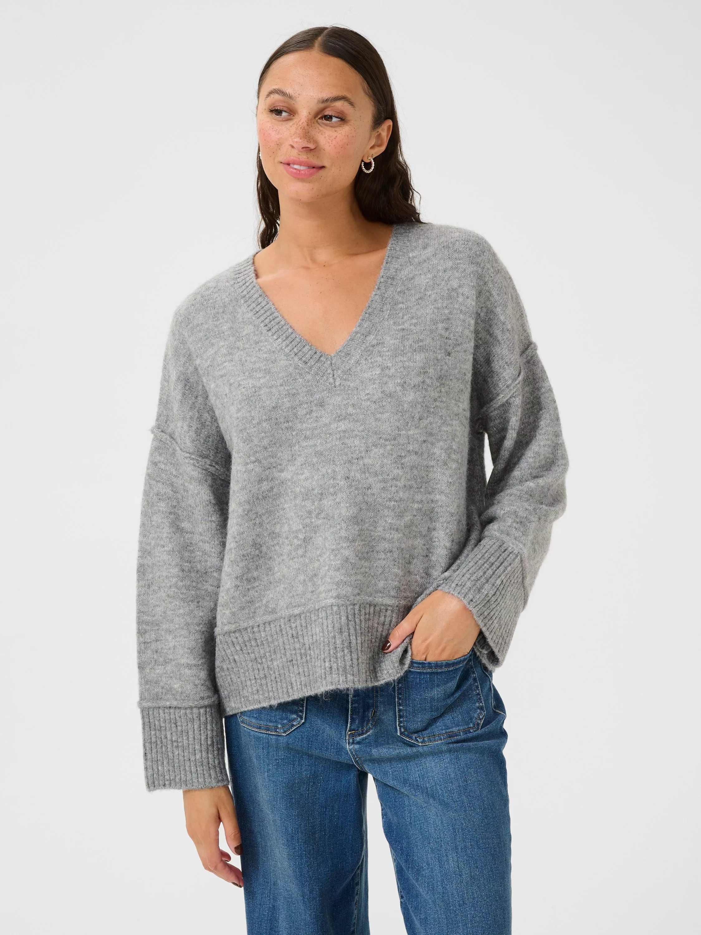 Layering neatly with a v-neckline and long sleeves with loose fit drop shoulders, this mid-weight jumper by KAFFE will help you stay cosy despite what the weather says.