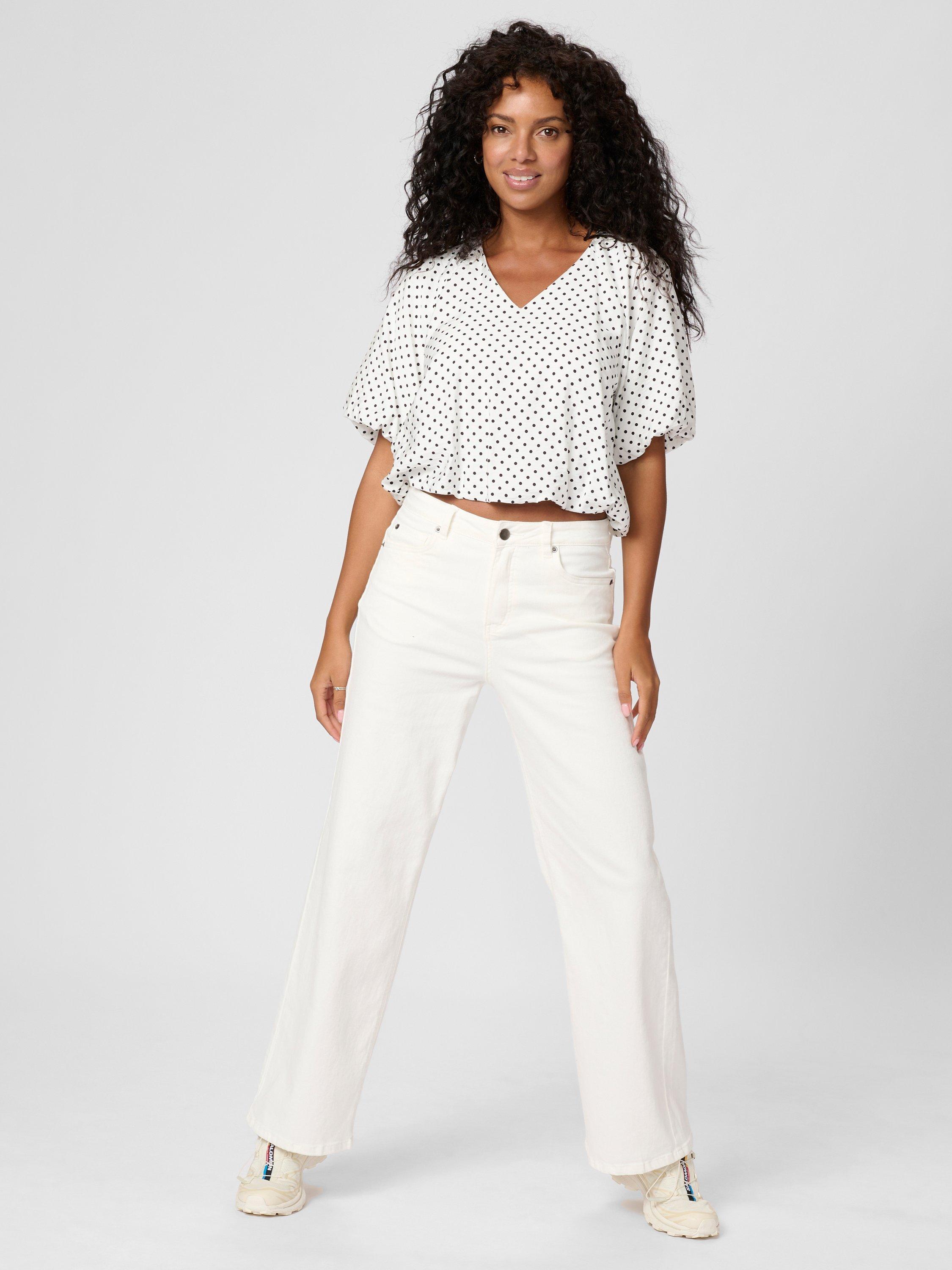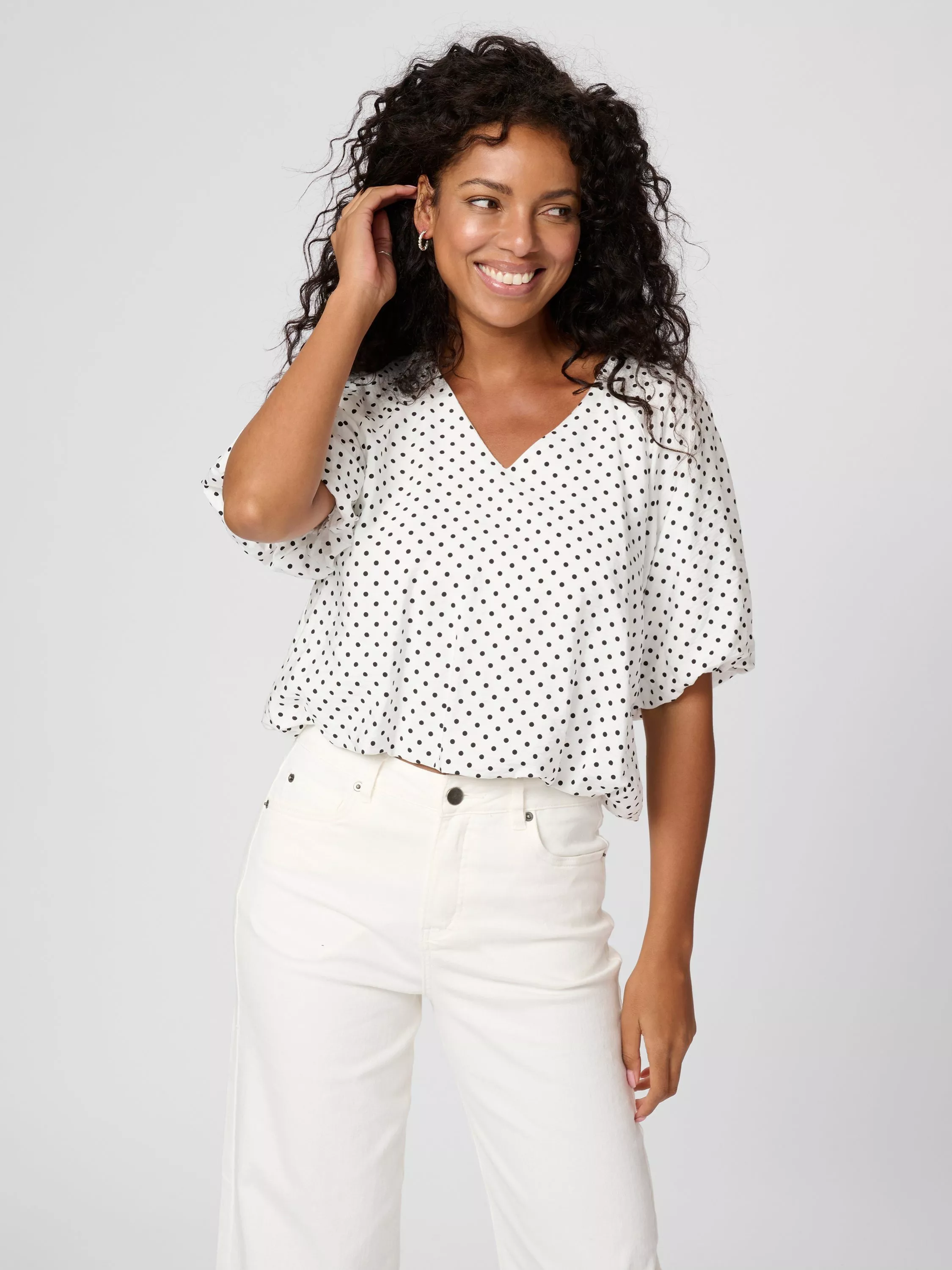 Ensuring comfort and elegance for any occasion, this blouse from KAFFE features a chic polka dot print. Made from sustainable materials with a v-neckline and short sleeves, it will slot seamlessly into your everyday staples.