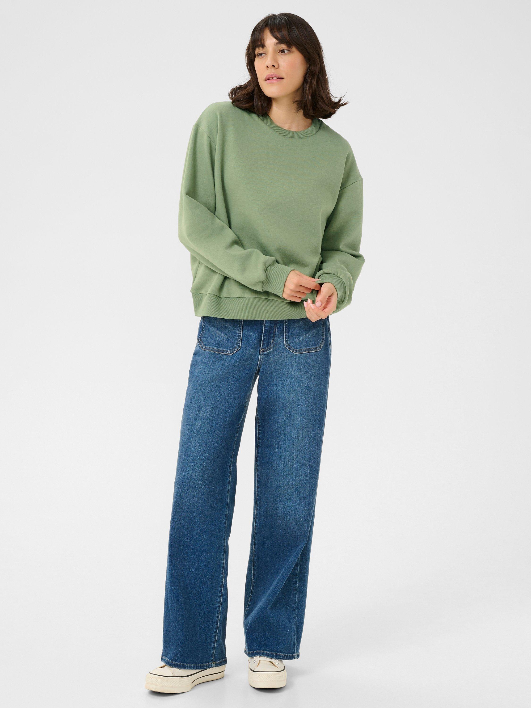 Nice and simple with a round neckline and long sleeves, this very chic sweatshirt by KAFFE is whipped up from a cotton-blend fabric for its soft and long-lasting qualities.