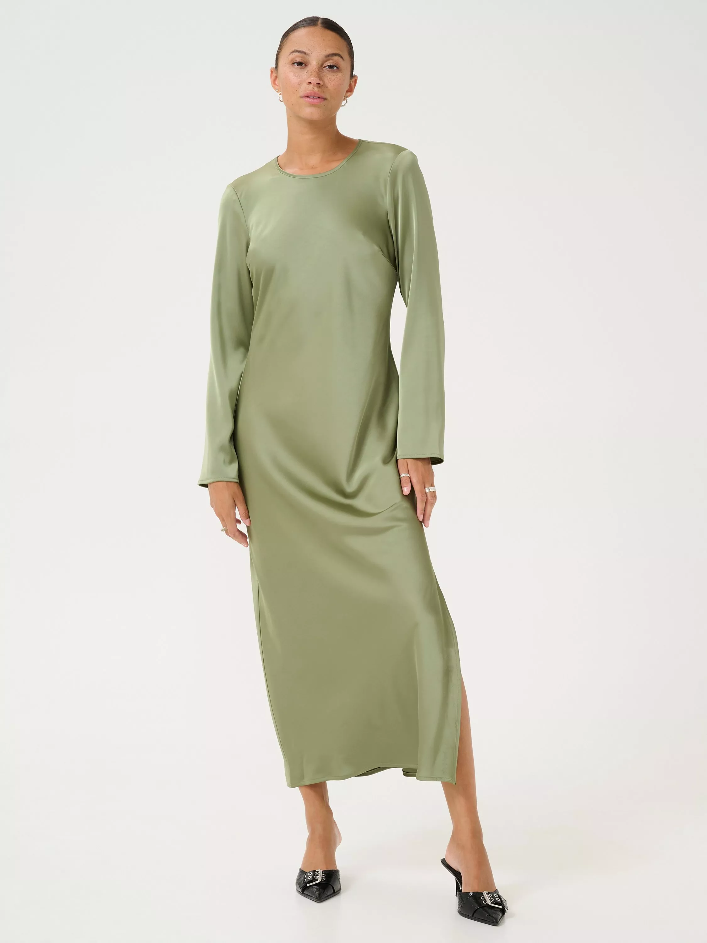 Set in a simple, A-line shape with side hem splits, this maxi dress from KAFFE is made from a soft satin fabric blend. With a fuss-free round neckline and full-length sleeves, this style is free of unnecessary embellishments.