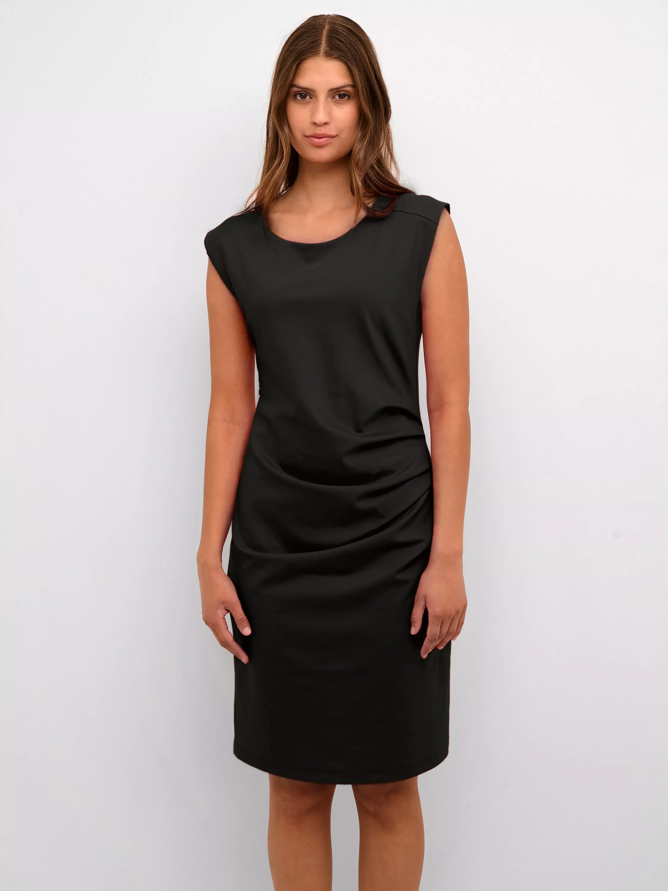 Impeccably constructed with drapery, this knee length dress from KAFFE is crafted from a blend of fabrics. Classically framed with its scoop neckline, this sleeveless style needs no prints or accents to hold the spotlight.