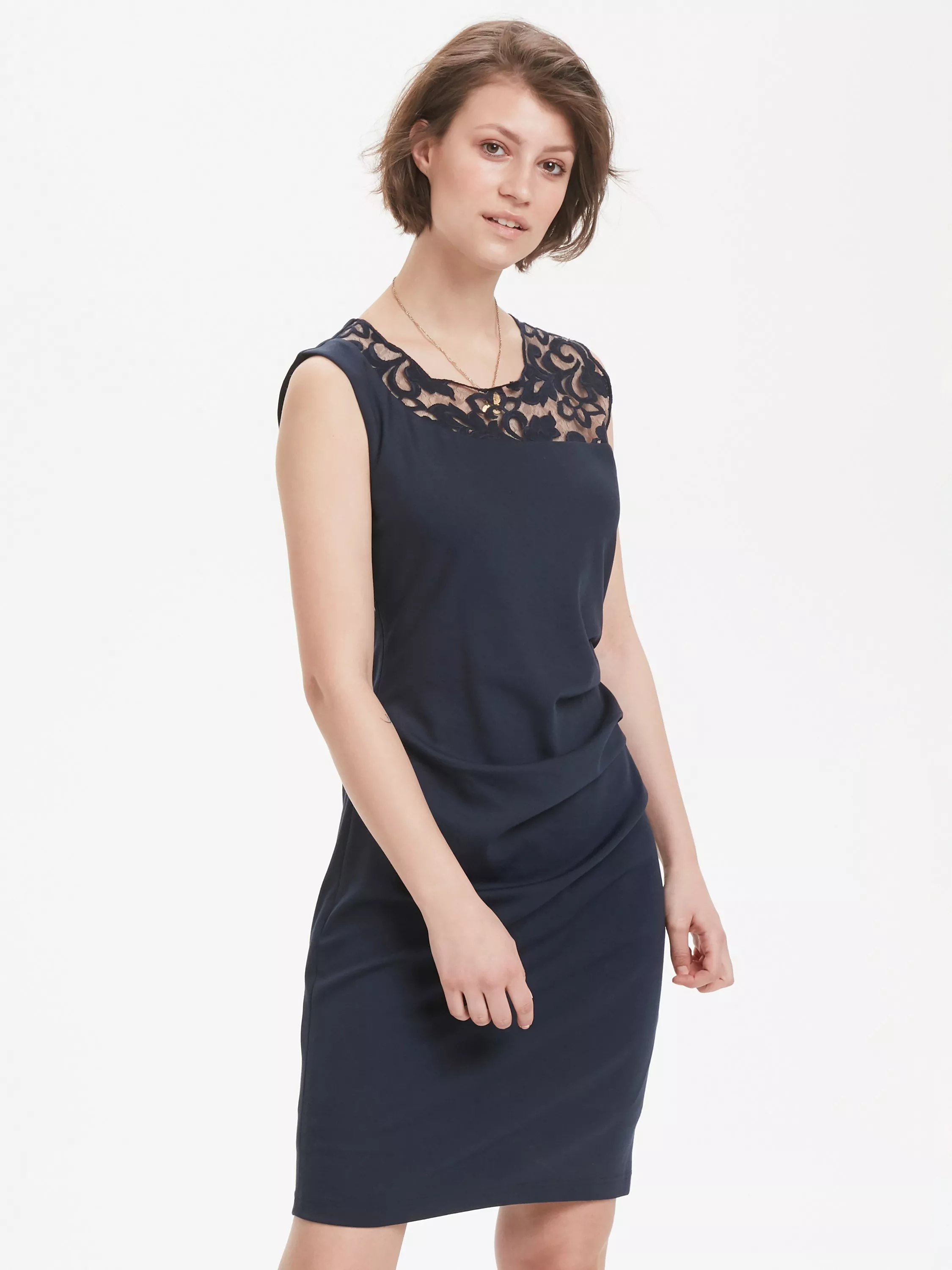 Designed in a party-ready cocktail style, this knee length dress from KAFFE is made using a blend of fabrics. With a simple round neck, this style has a subtle textured effect for an elevated touch.