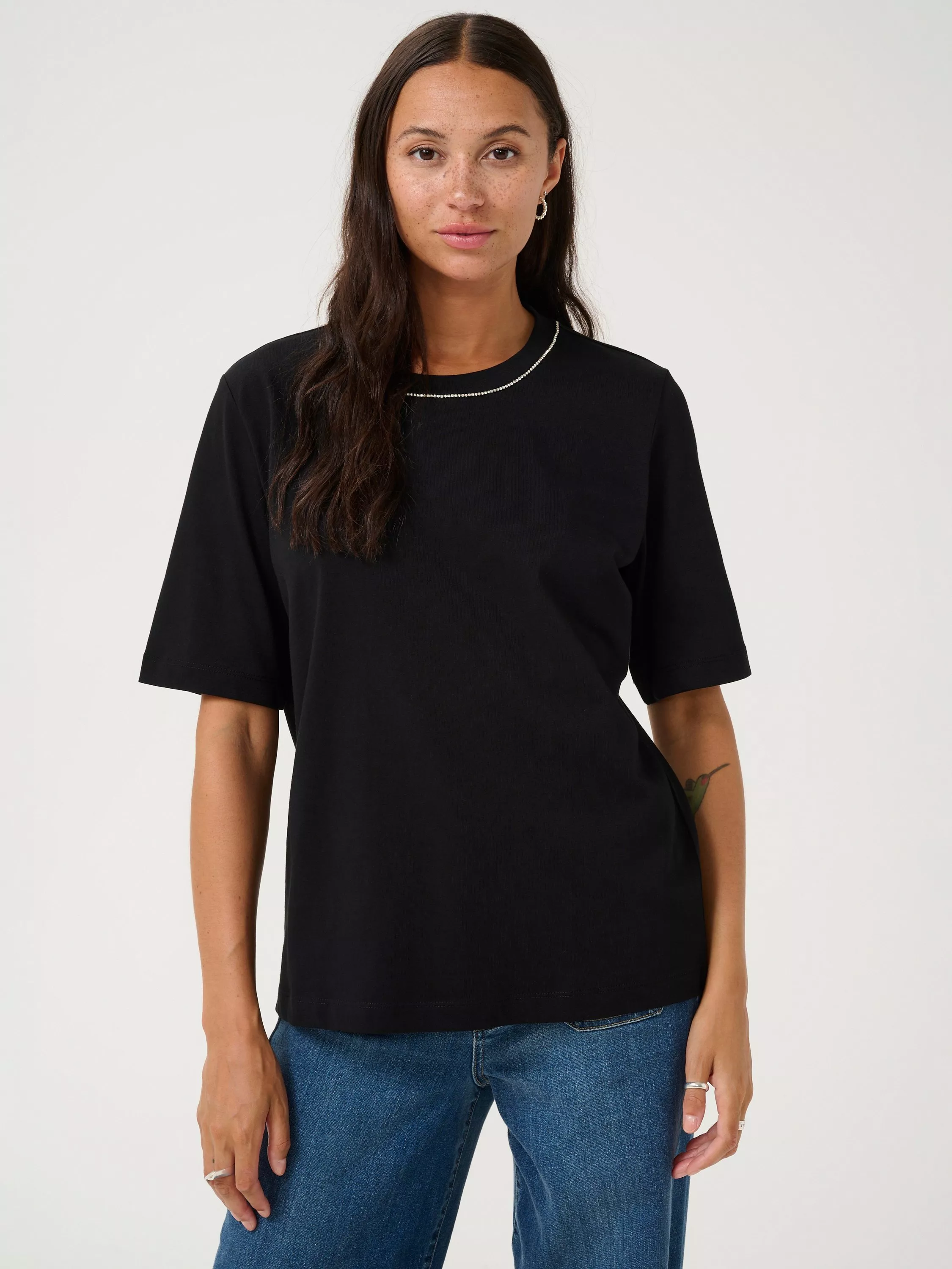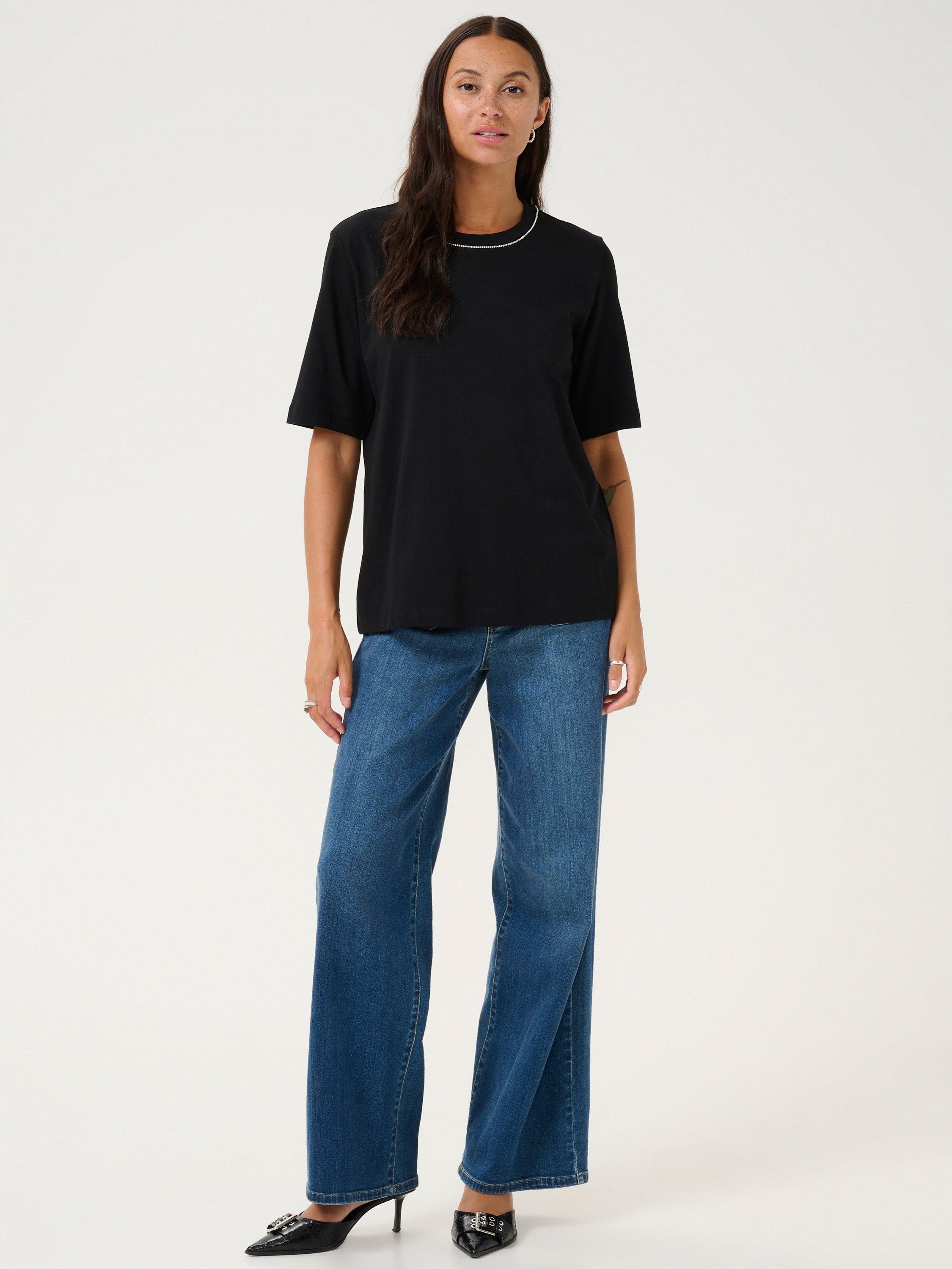 Bolstering your daytime collection, this t-shirt by KAFFE makes for the perfect companion to patterned layers. Designed with a classic crew neckline with subtle beading and short sleeves, it is light and breathable in cotton and cut to a straight fit.