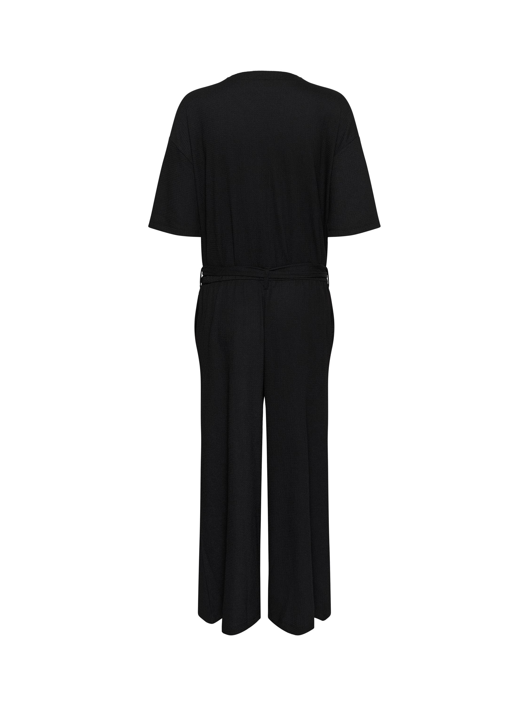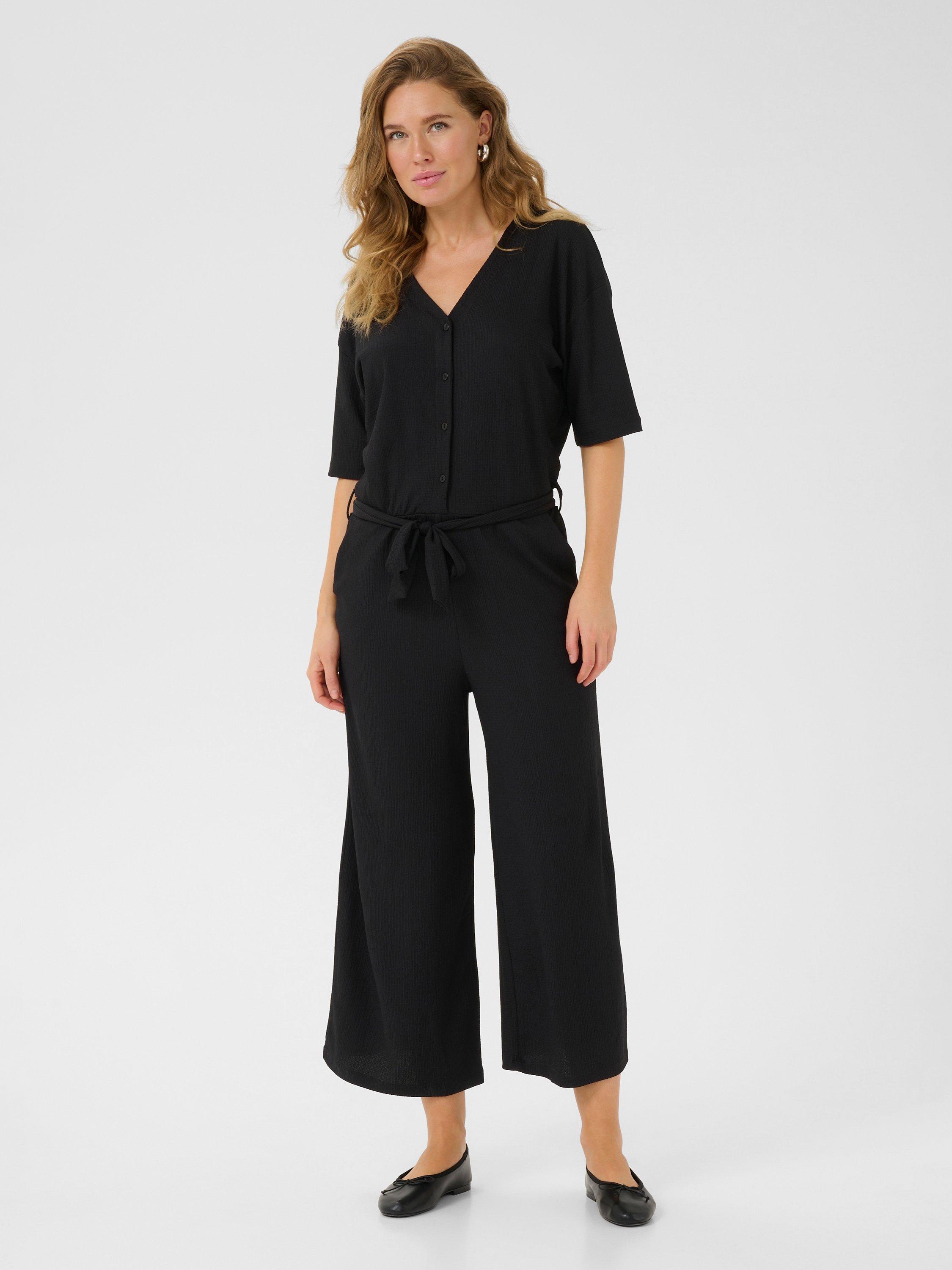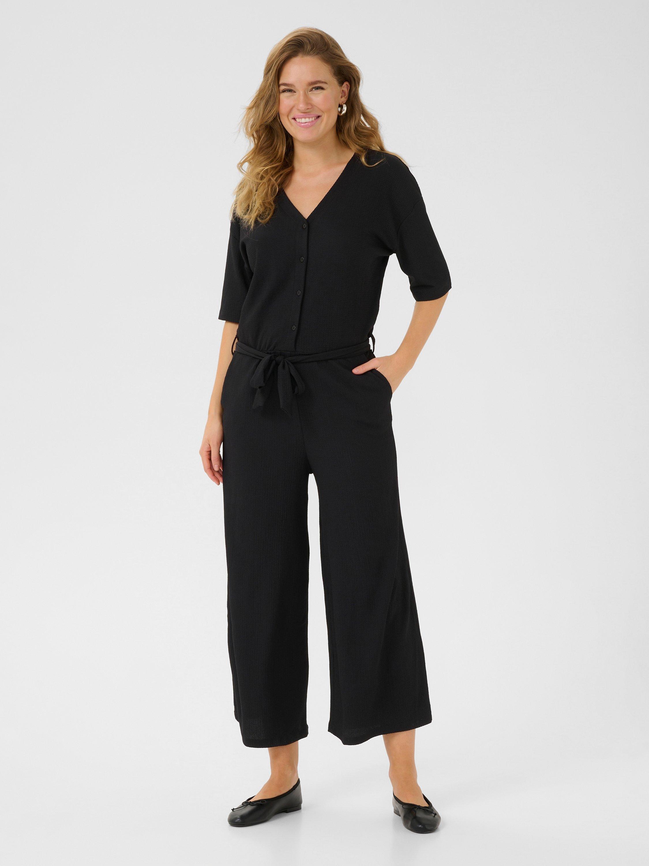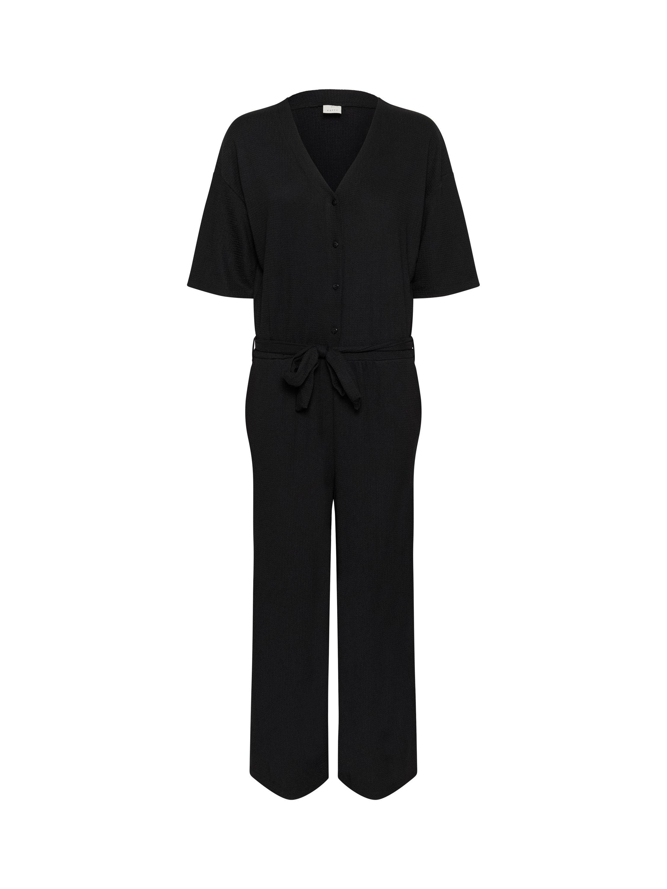 Kept refined with a v-neckline and short sleeves, this belted jumpsuit from KAFFE falls to a cropped wide leg.