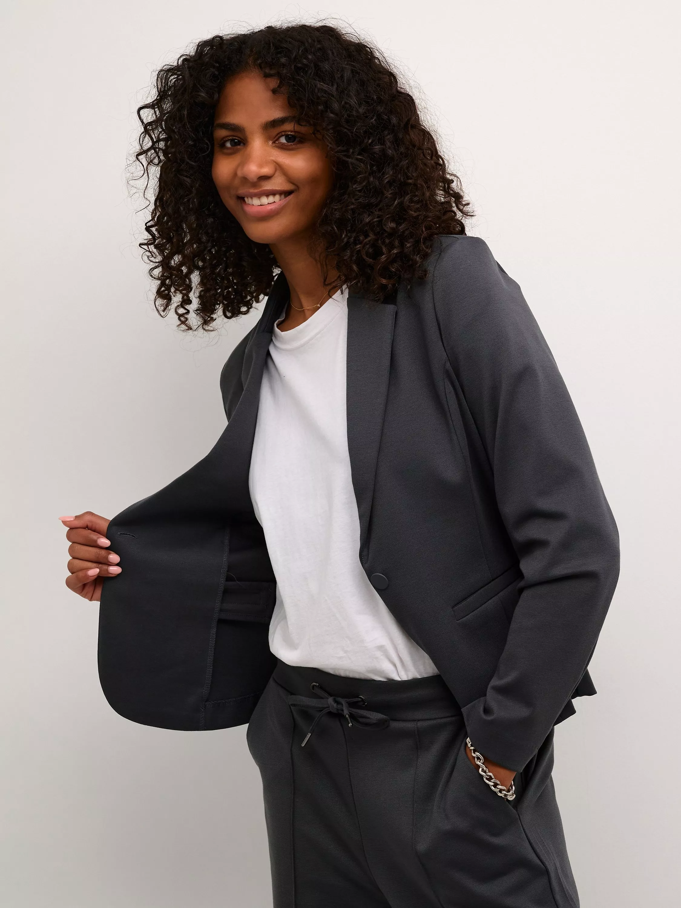 Carefully carved to a sharp silhouette, this single-breasted blazer from KAFFE sits at the hip for versatile coverage.