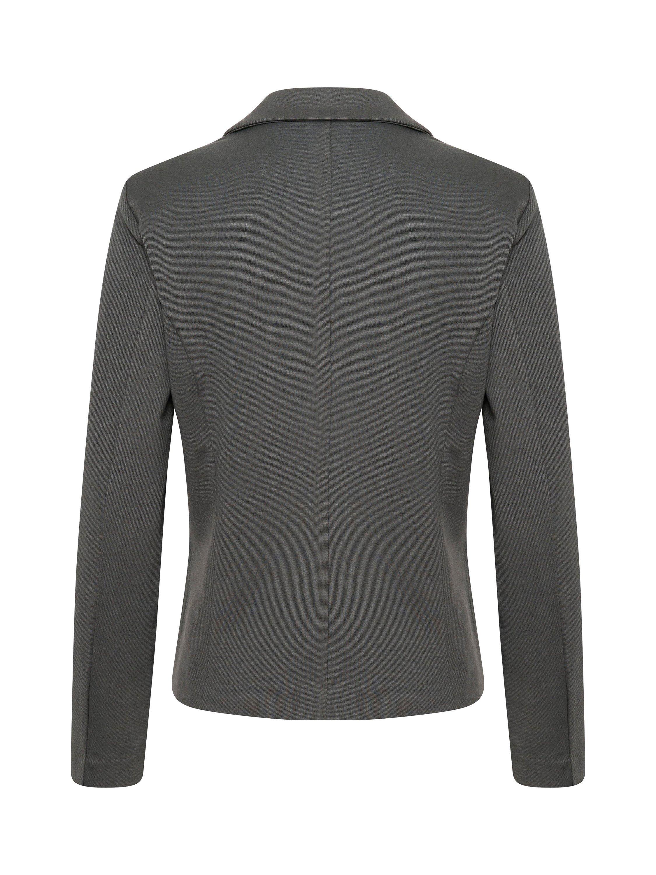 Featuring notch lapels and welted front pockets, it has a regular fit with princess seams, and it is made in a soft jersey fabric.