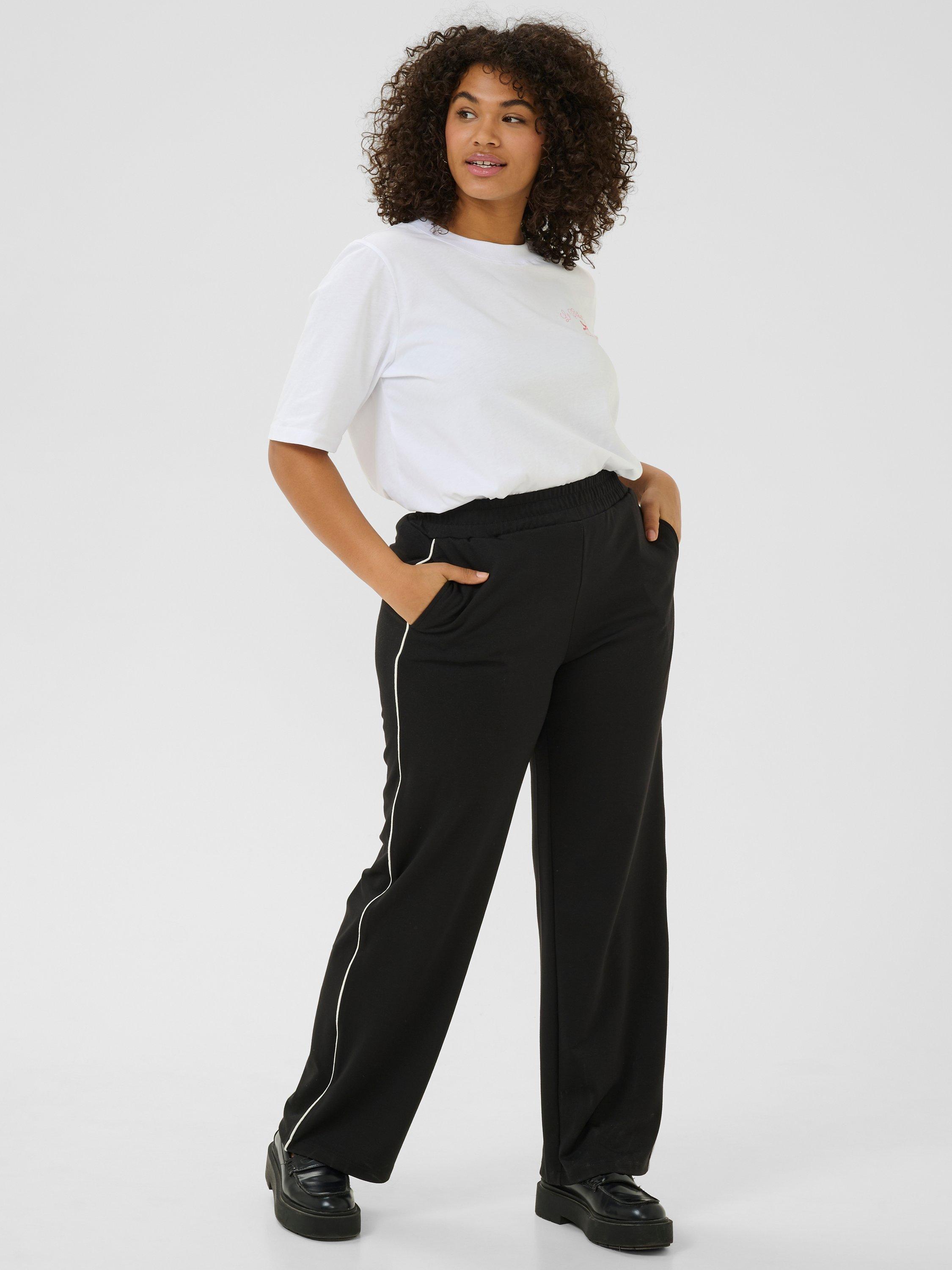 The Jenny pants are a casual pair of track pants that will add a sporty touch to your outfit. They are high-waisted with an elastic waistband, and they have a regular fit with straight legs. The pants have a stripe down the side of the legs, and they have seamed side pockets and welted back pockets.