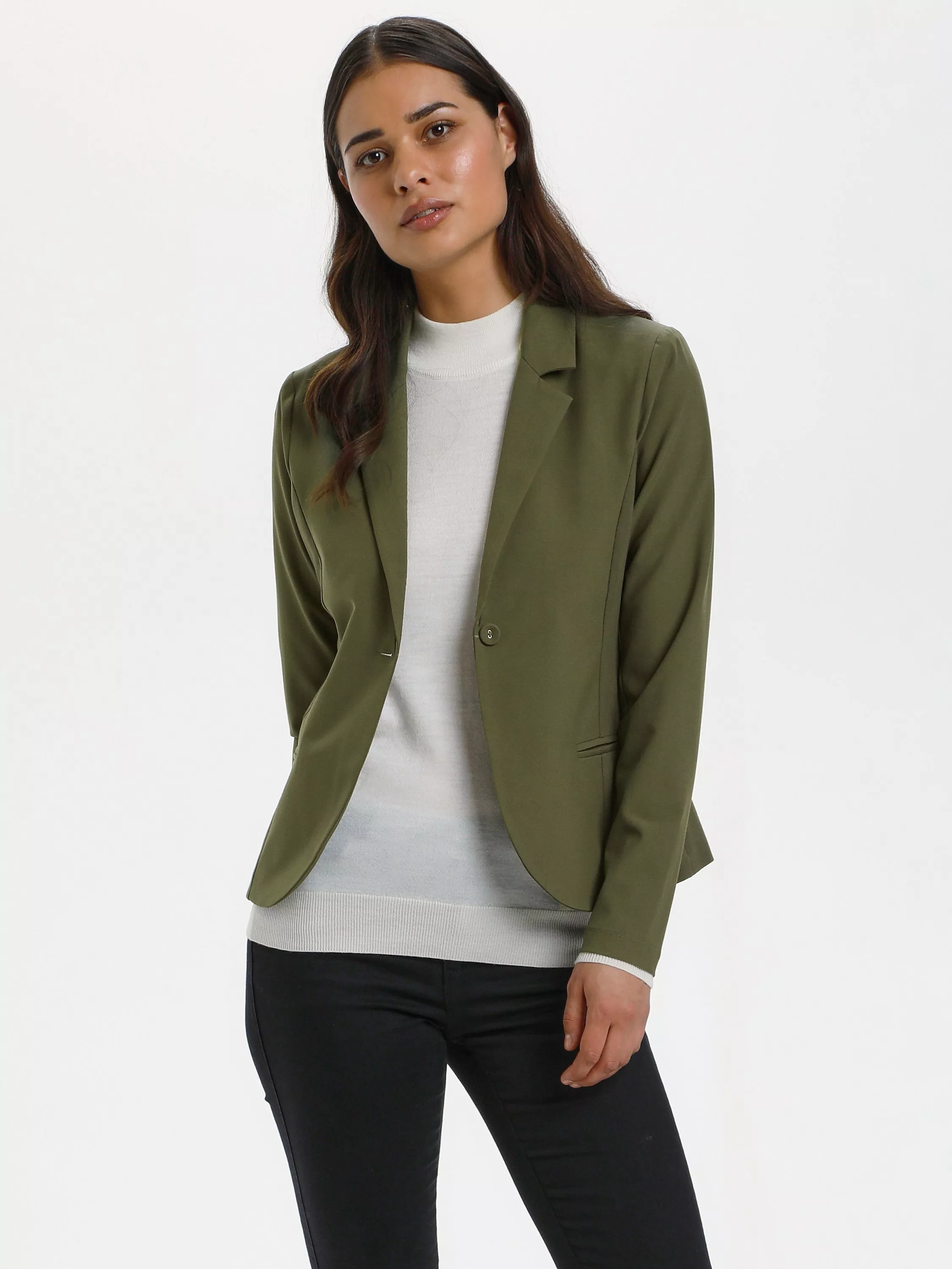 For smarter settings that call for a tailored touch, this blazer from KAFFE falls to a regular length.