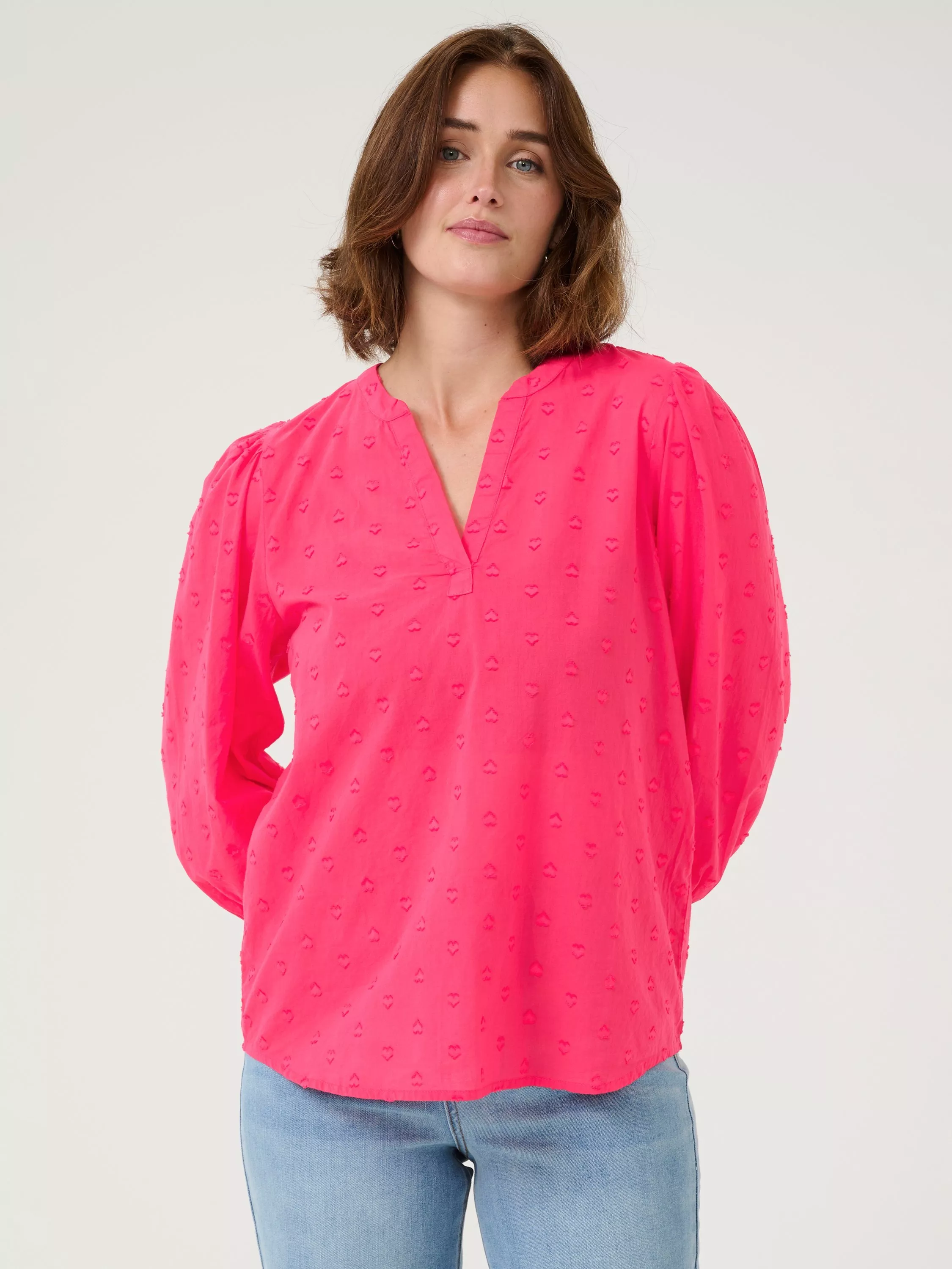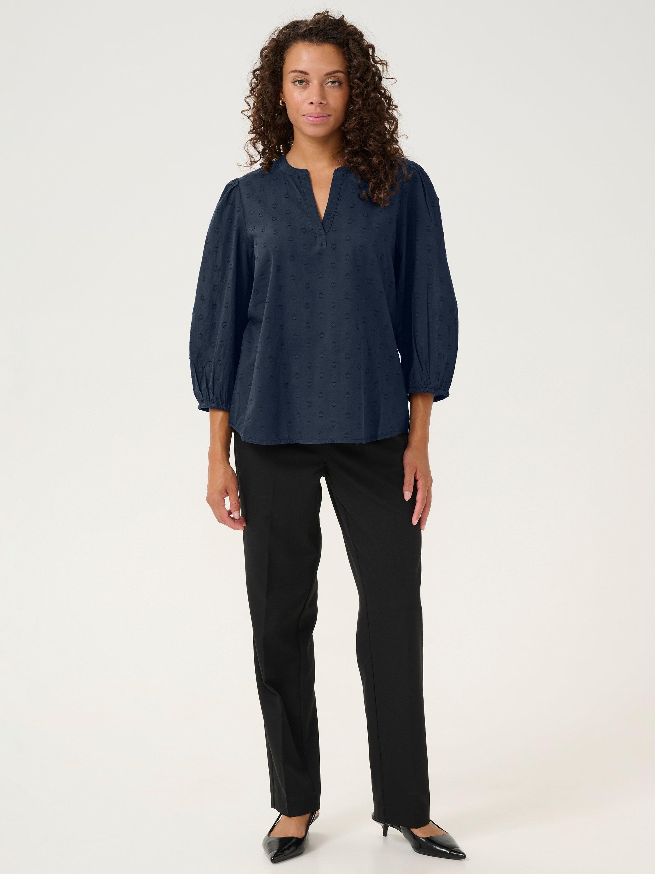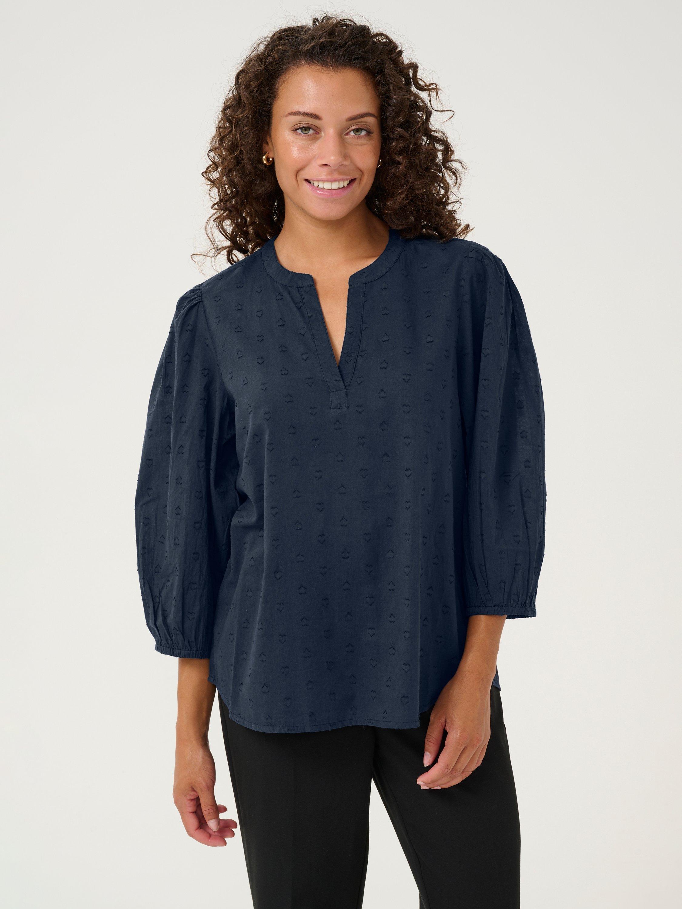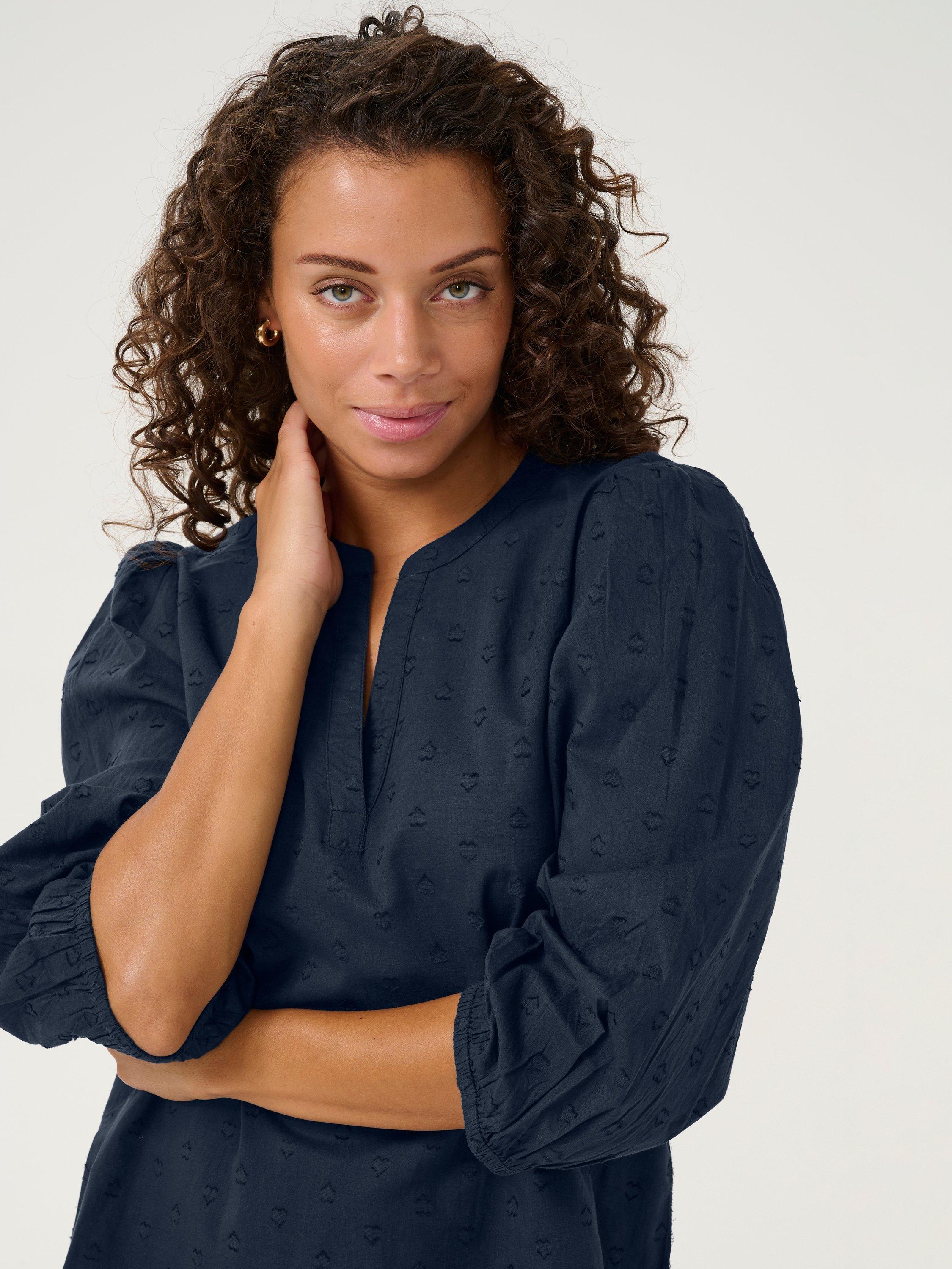 Made from soft cotton, this loose-fitting blouse from KAFFE is cut with a v-neckline, three-quarter length sleeves and all-over embroidery.