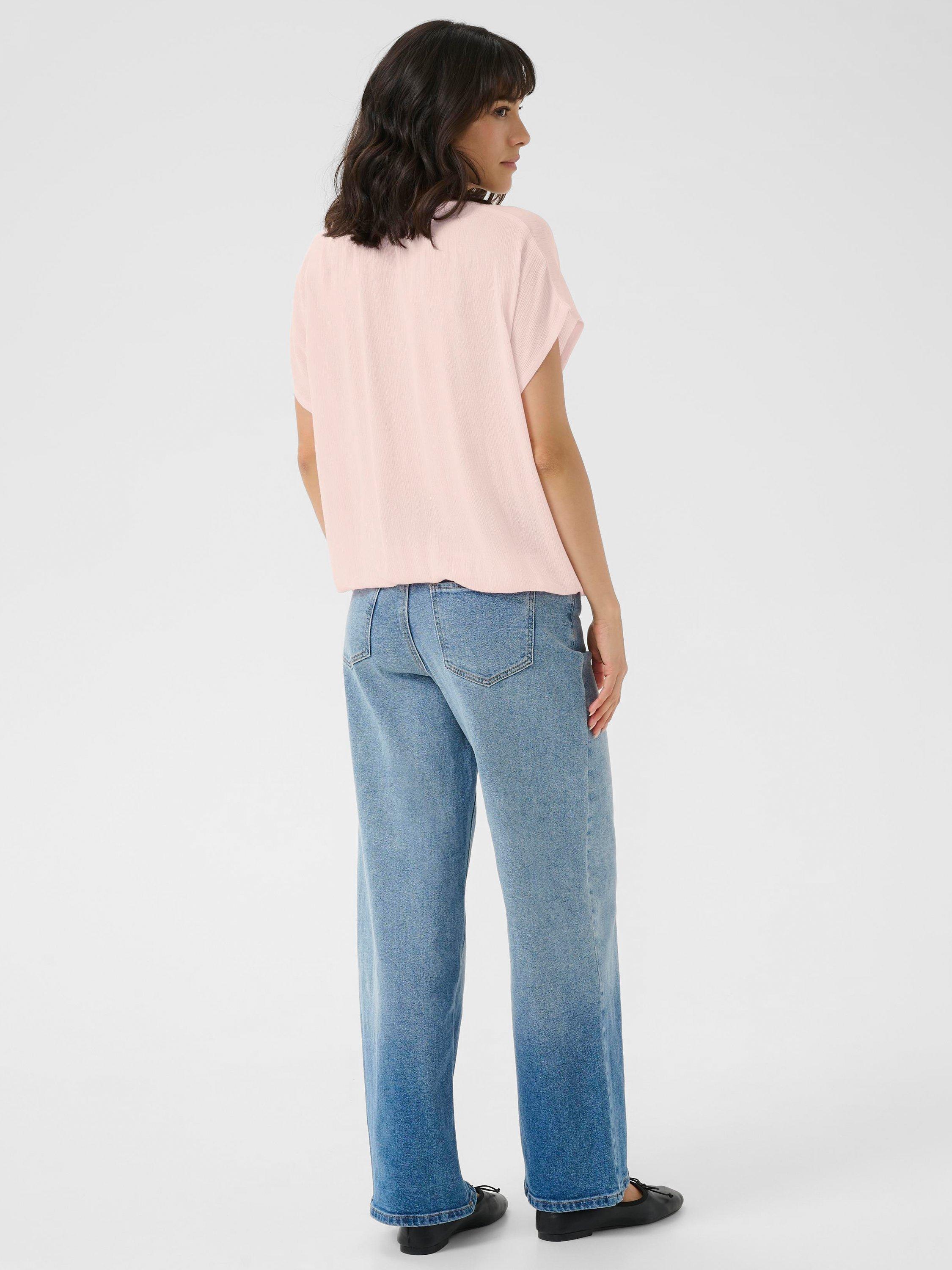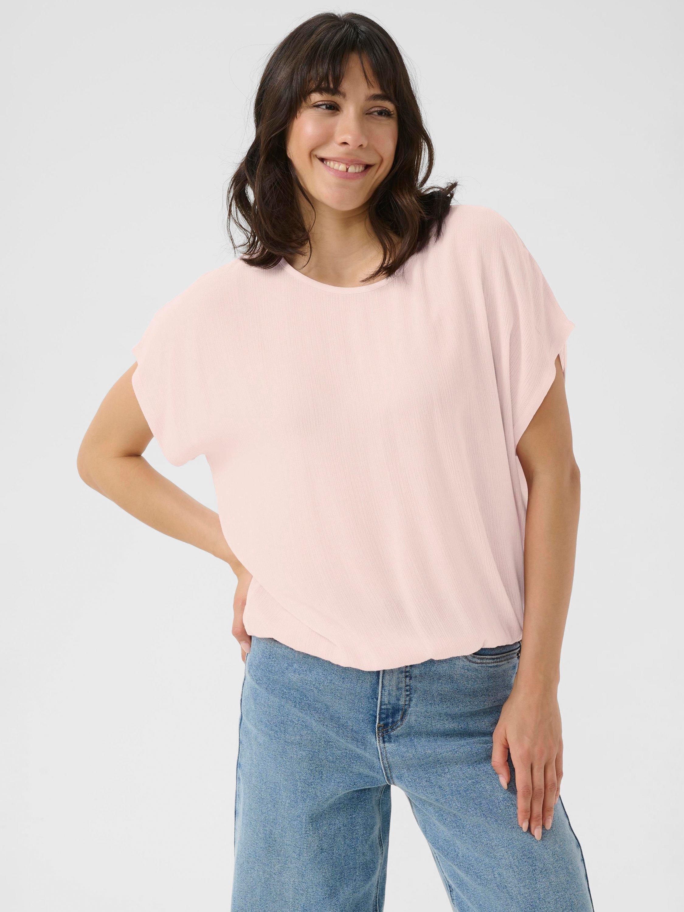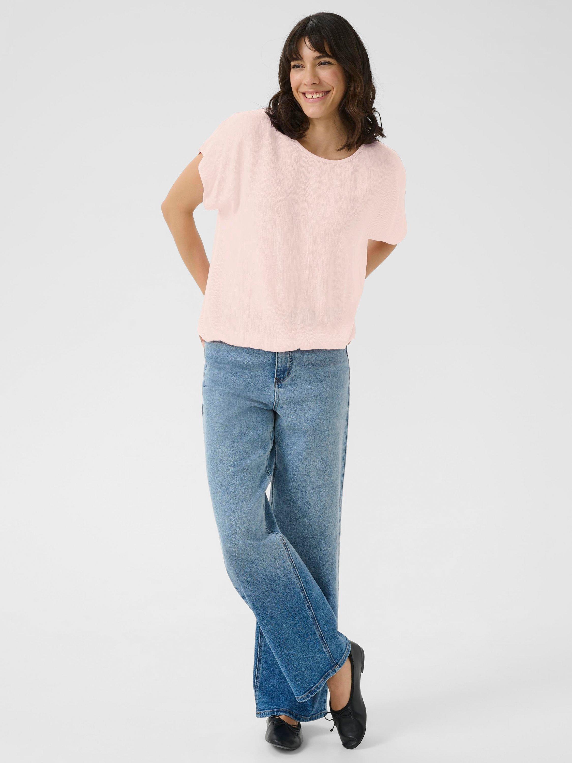 A KAFFE blouse - cap sleeves and crew neck keep things fresh, while the soft drape lets you move with ease. Perfect for layering, it’s ready to pair with anything you choose.