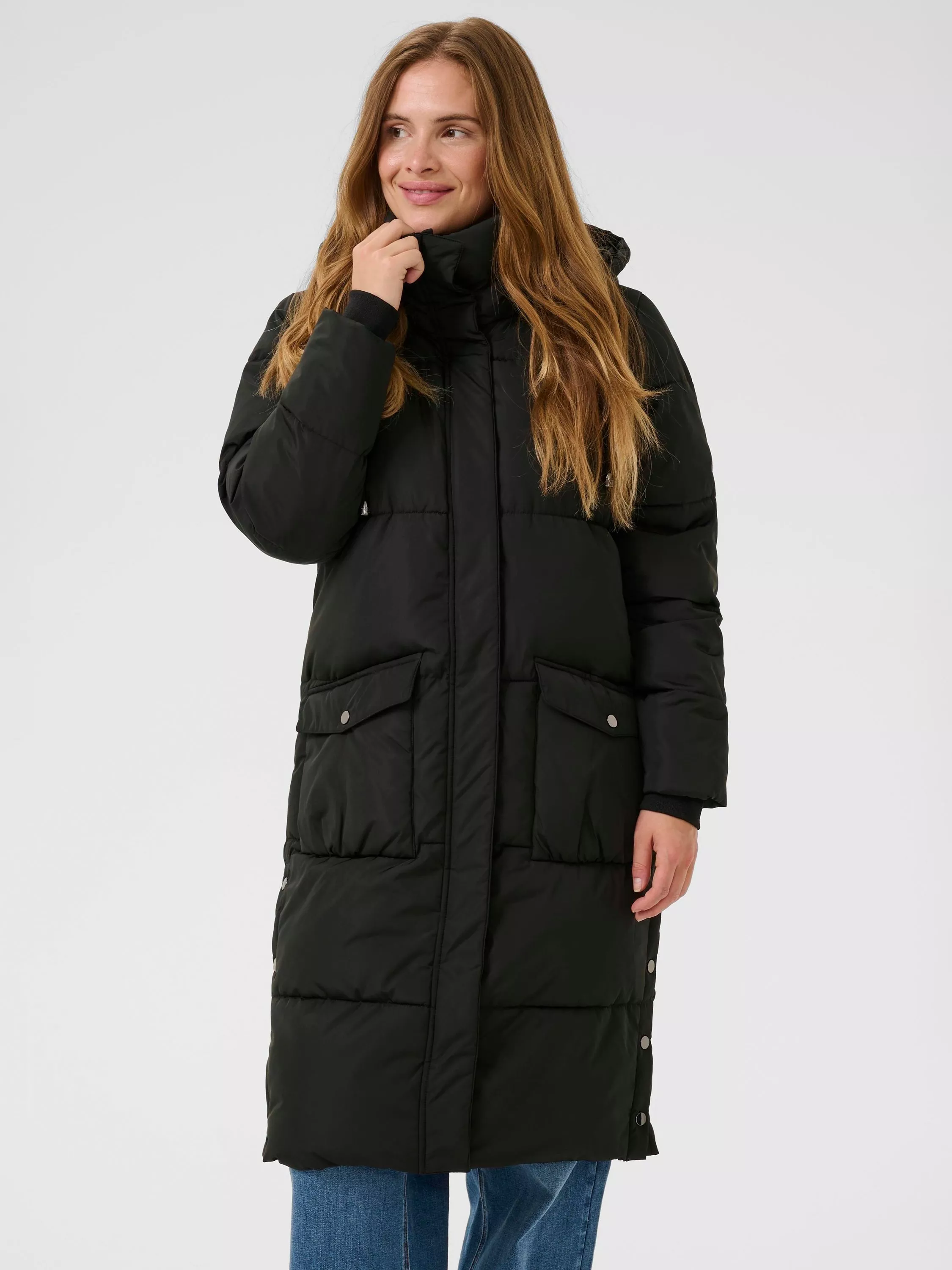 KAFFE longline puffer coat - designed for everyday adventures, its practical hood and secure zip offer comfort and warmth, keeping you ready for anything the day brings.