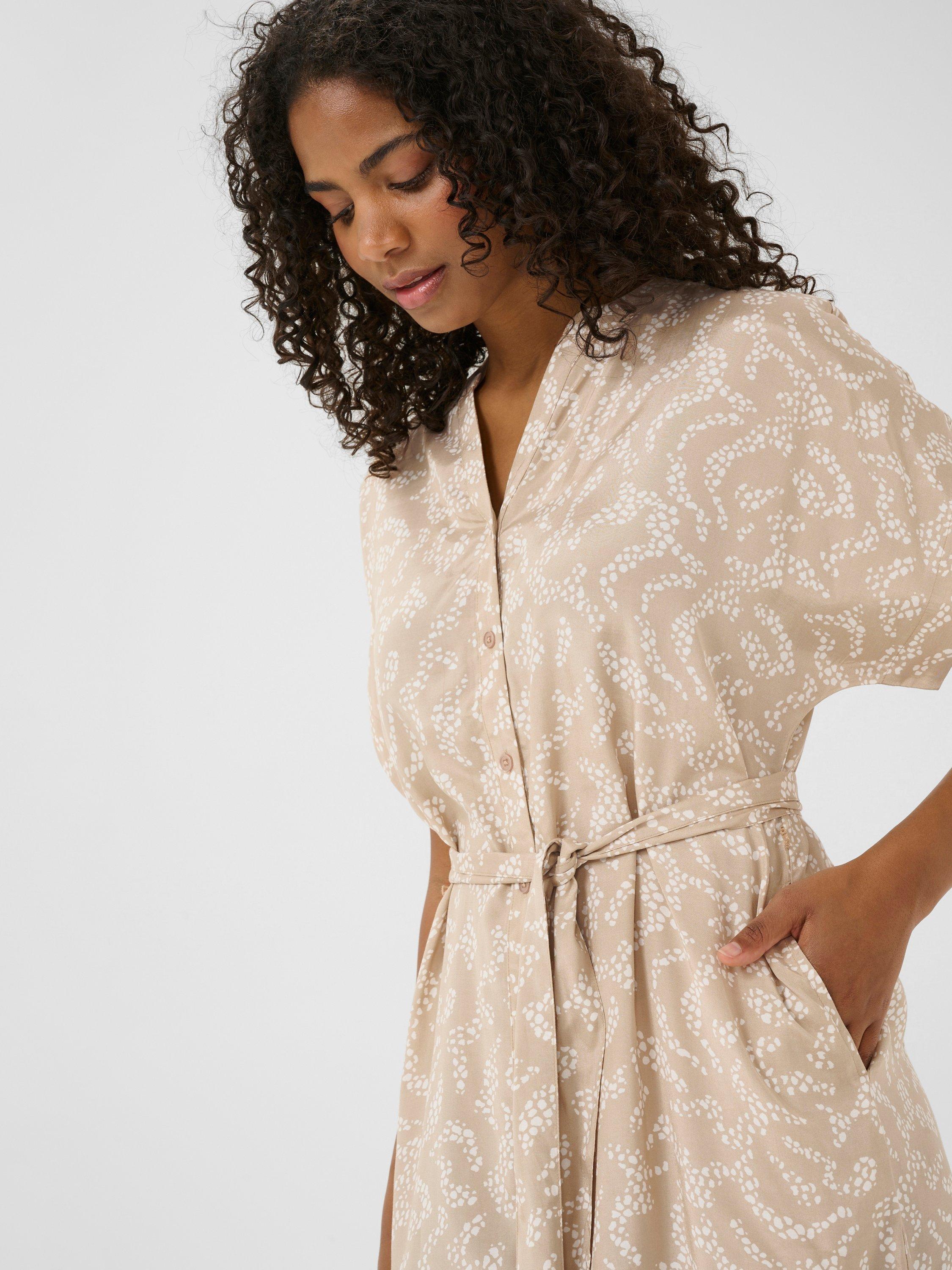 Experience elegance and comfort with the KAbarton shirt dress from KAFFE, crafted from a floaty, abstract-print fabric that's ideal for any occasion. Designed with a round neck, button-down front and short sleeves. Finished with a tie belt for a flattering silhouette.