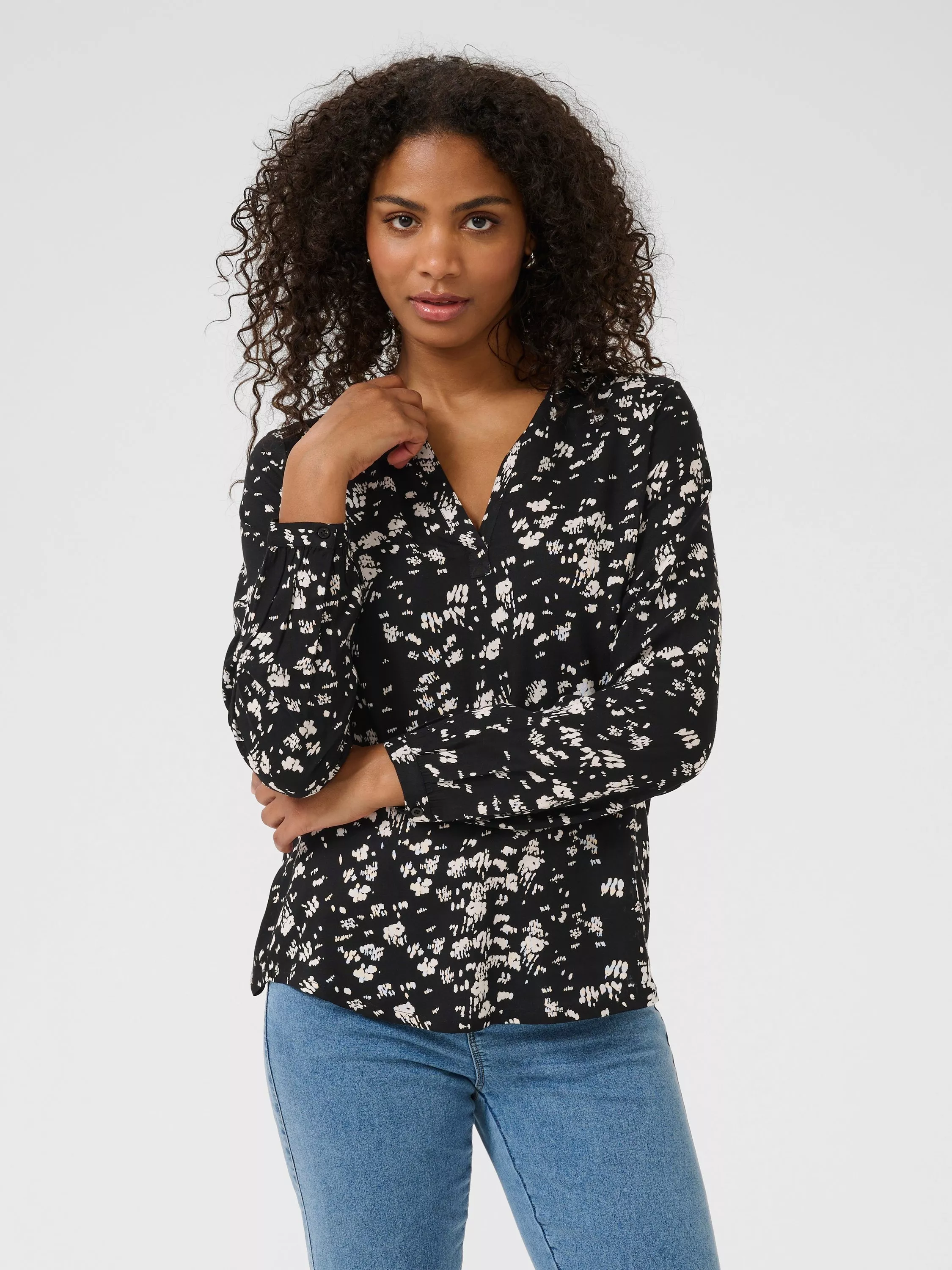 This lightweight blouse features an abstract pattern and a flattering V-neck. Designed for daywear, it keeps you comfortable and looking sharp from meetings to meet-ups.
