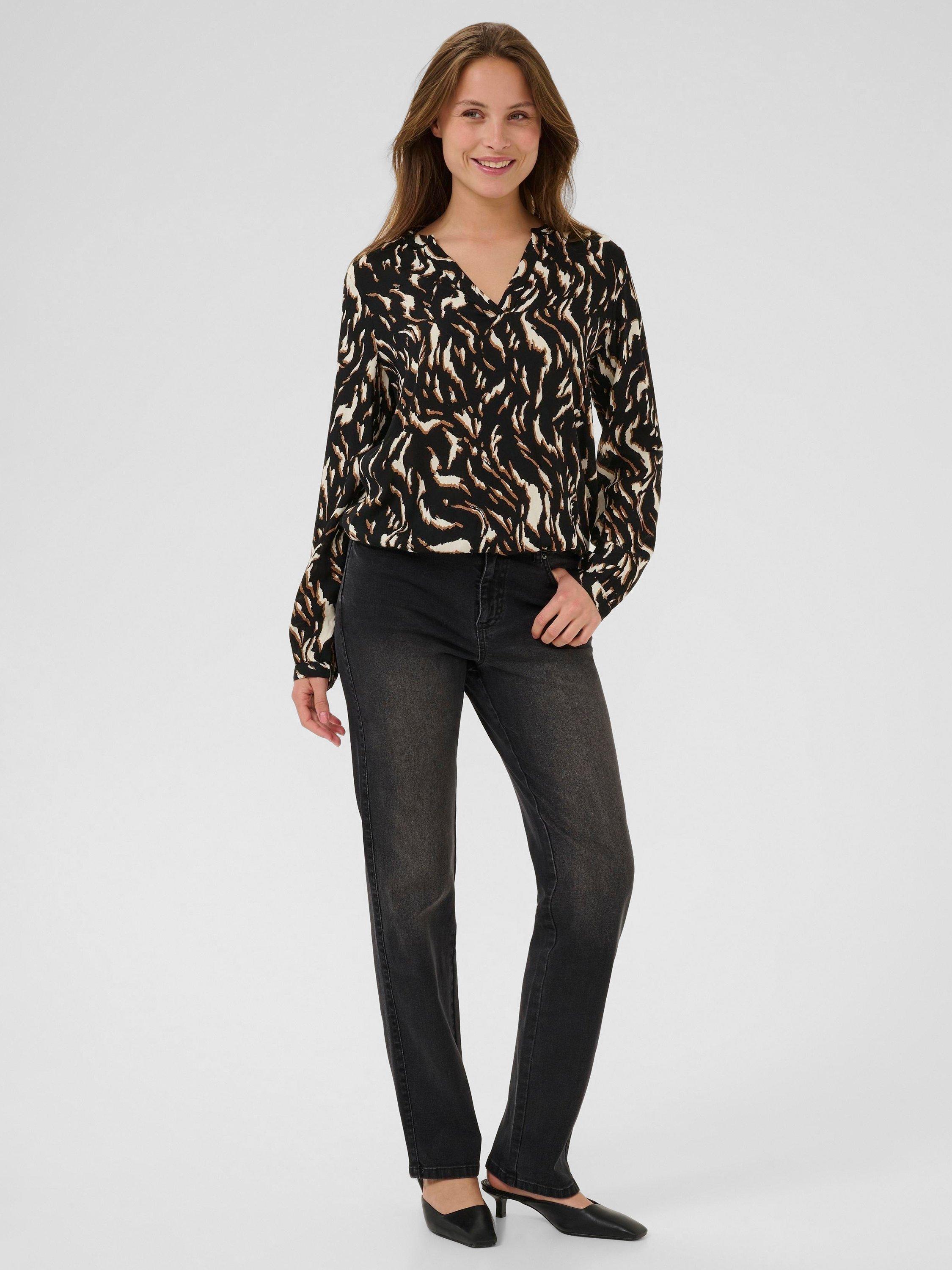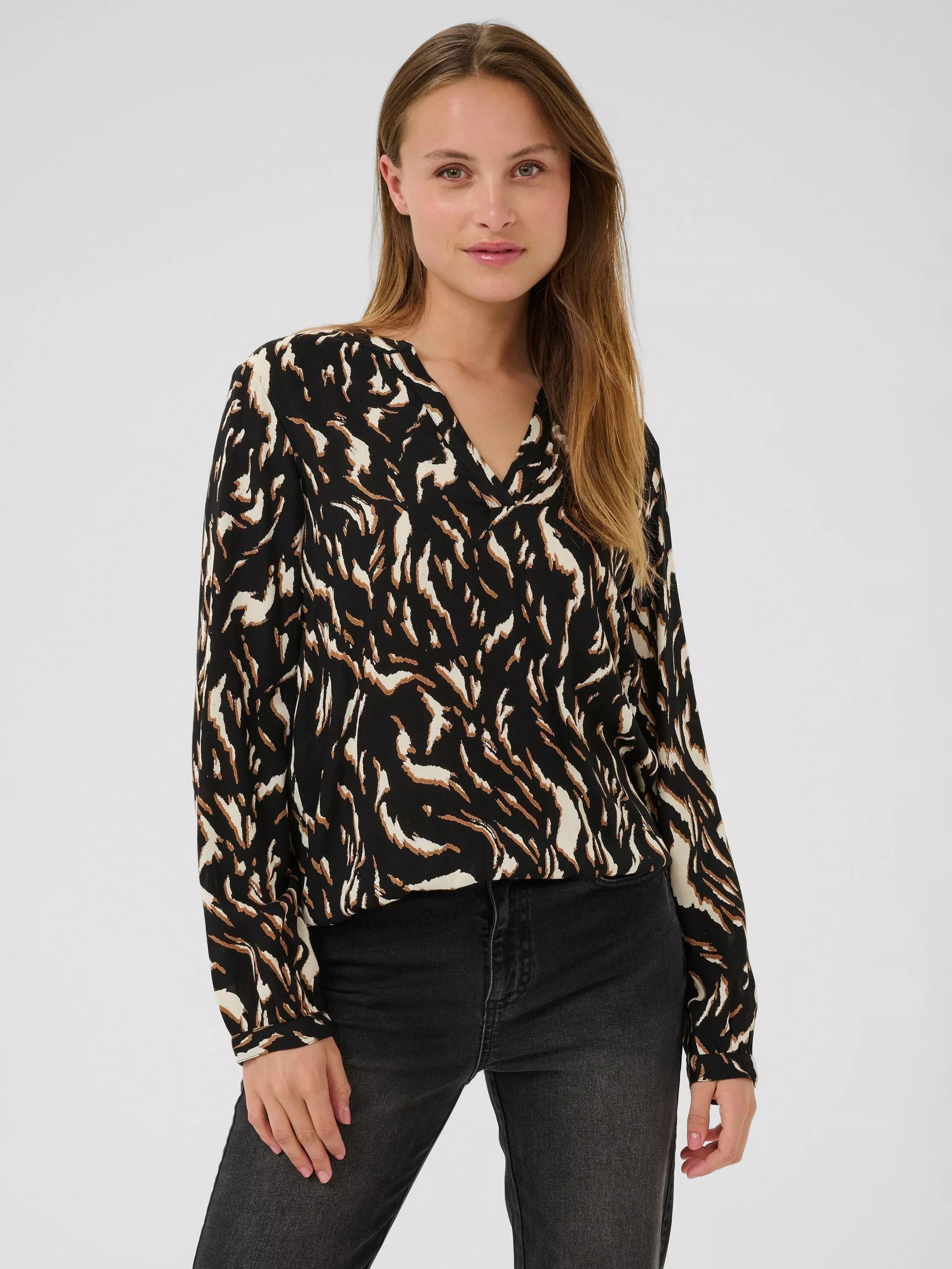 This V-neck blouse by KAFFE features a lively animal pattern and soft drape for all-day ease. Its long sleeves and clever cut lets you feel confident and comfortable, wherever your plans may lead.