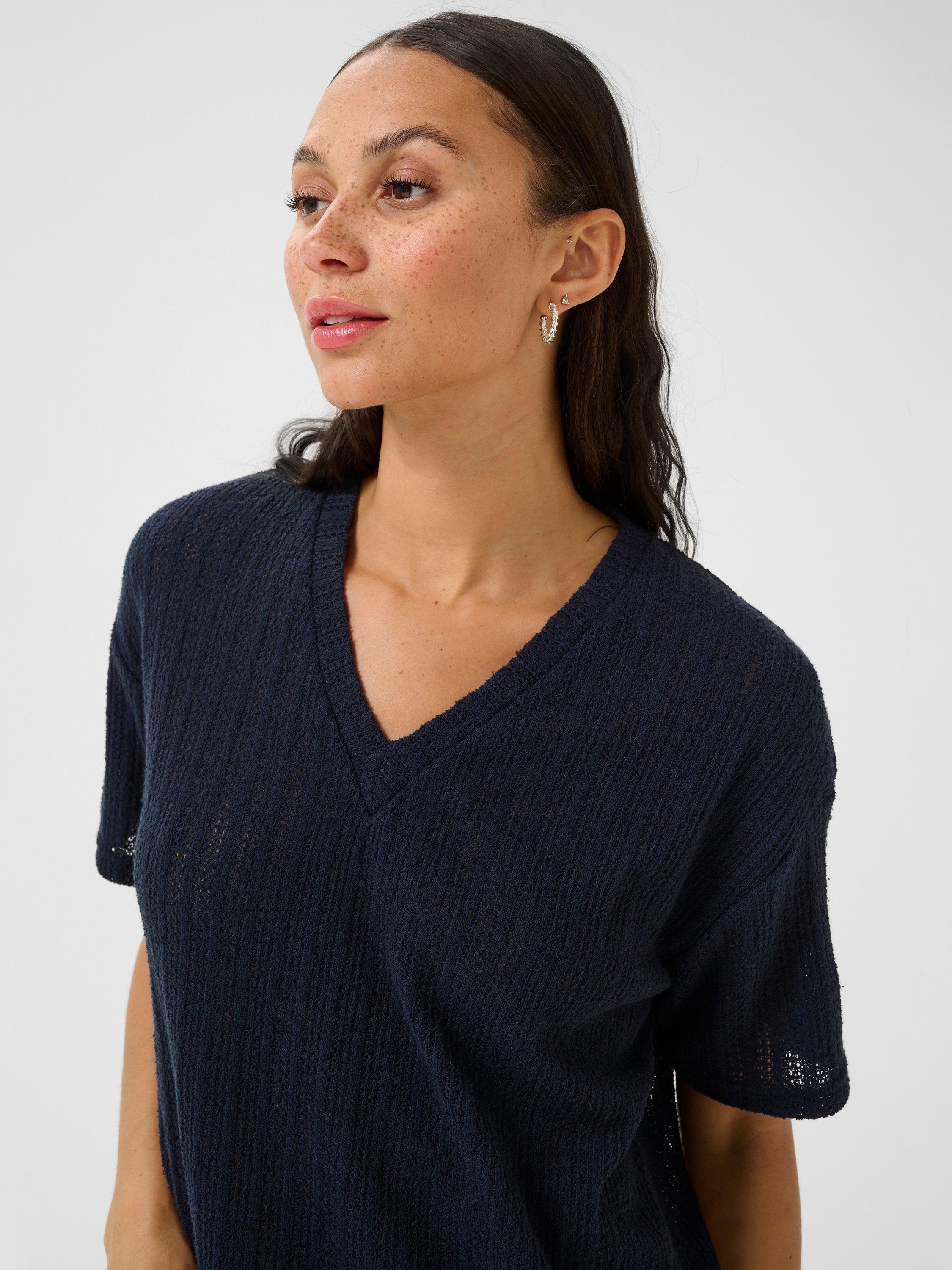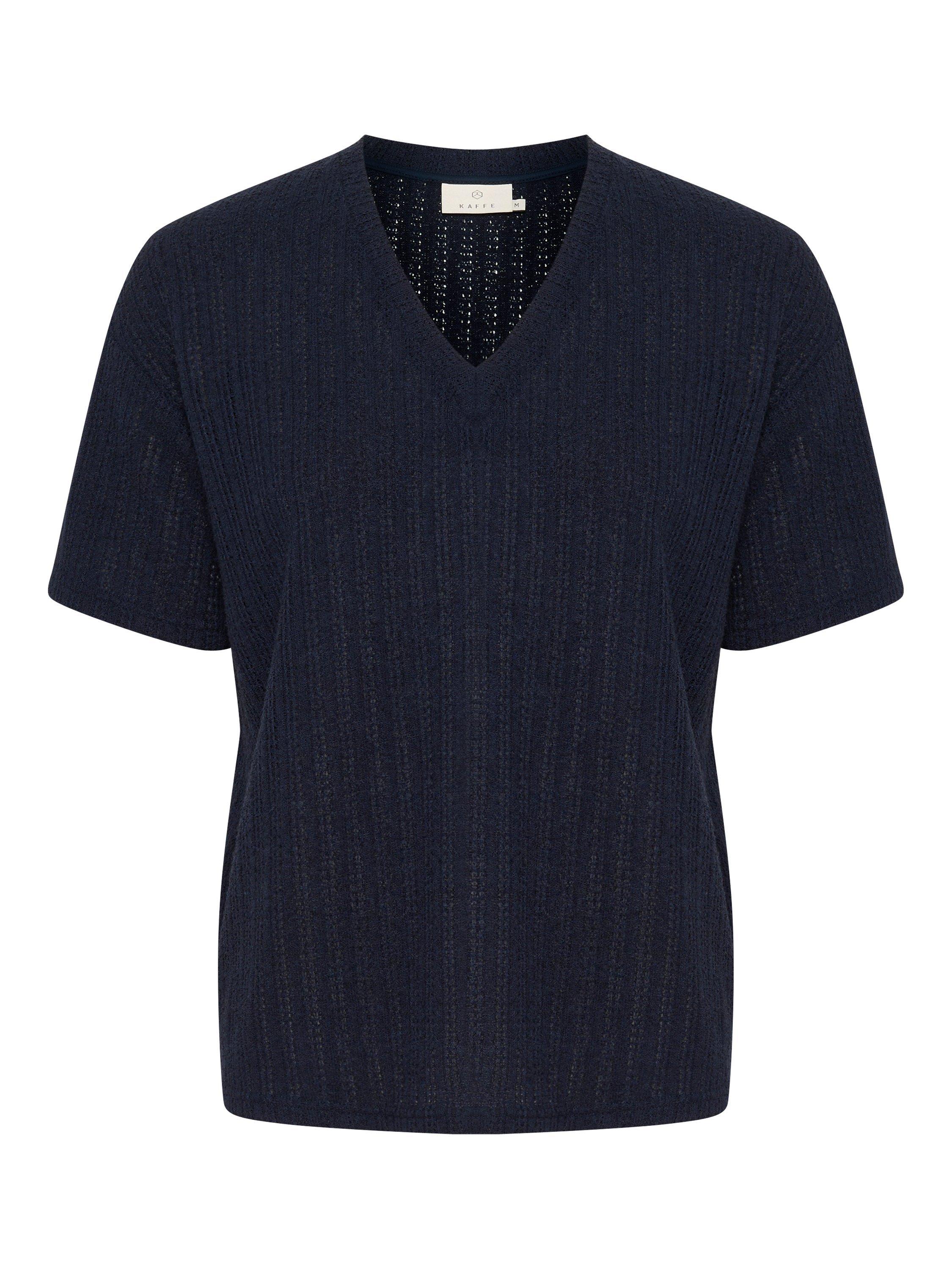 Experience the comfort of KAFFE's KAedith V-neck T-Shirt, ideal for casual outings. This classic piece is crafted from a textured, cotton-blend knit, providing a smooth and breathable wear.