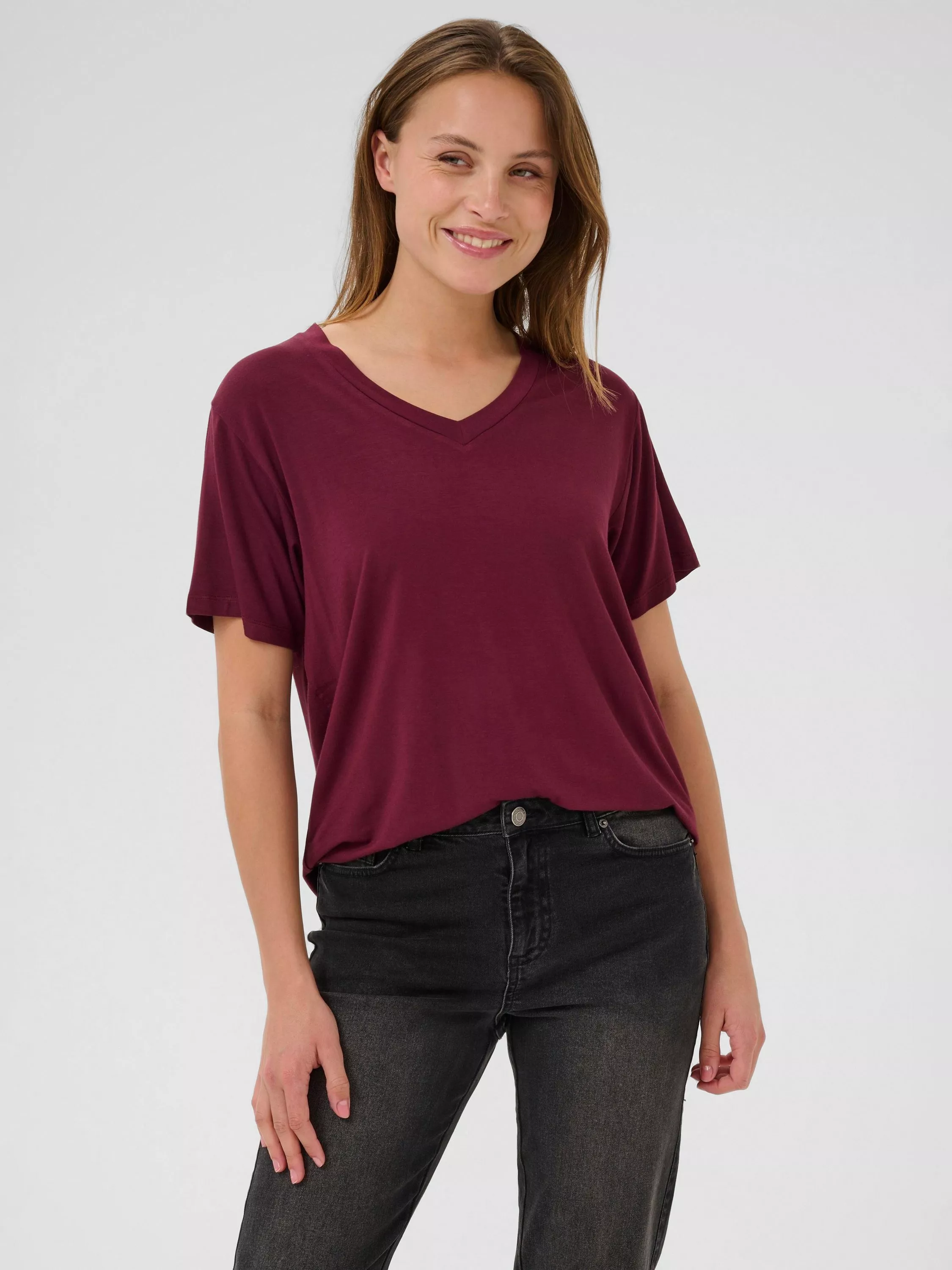 Soft, stretchy, and designed for movement, elevate everyday with this T-shirt by KAFFE. Its smart V-neck and easy cut make it perfect for busy days, quiet moments, and everywhere in between.