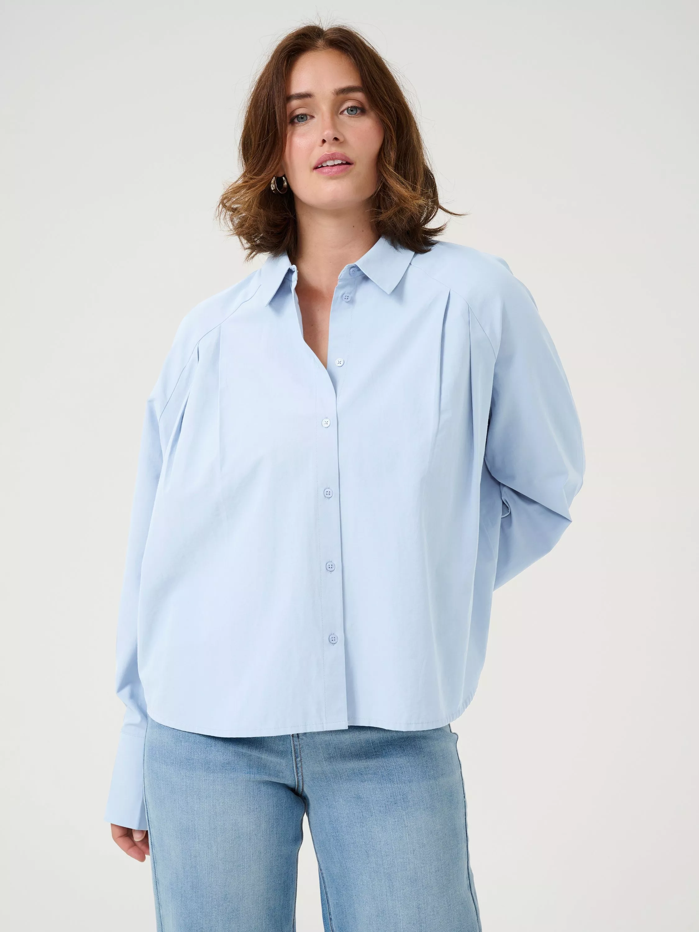 KAFFEKAhaily Cotton Blend Shirt, Mid Blue