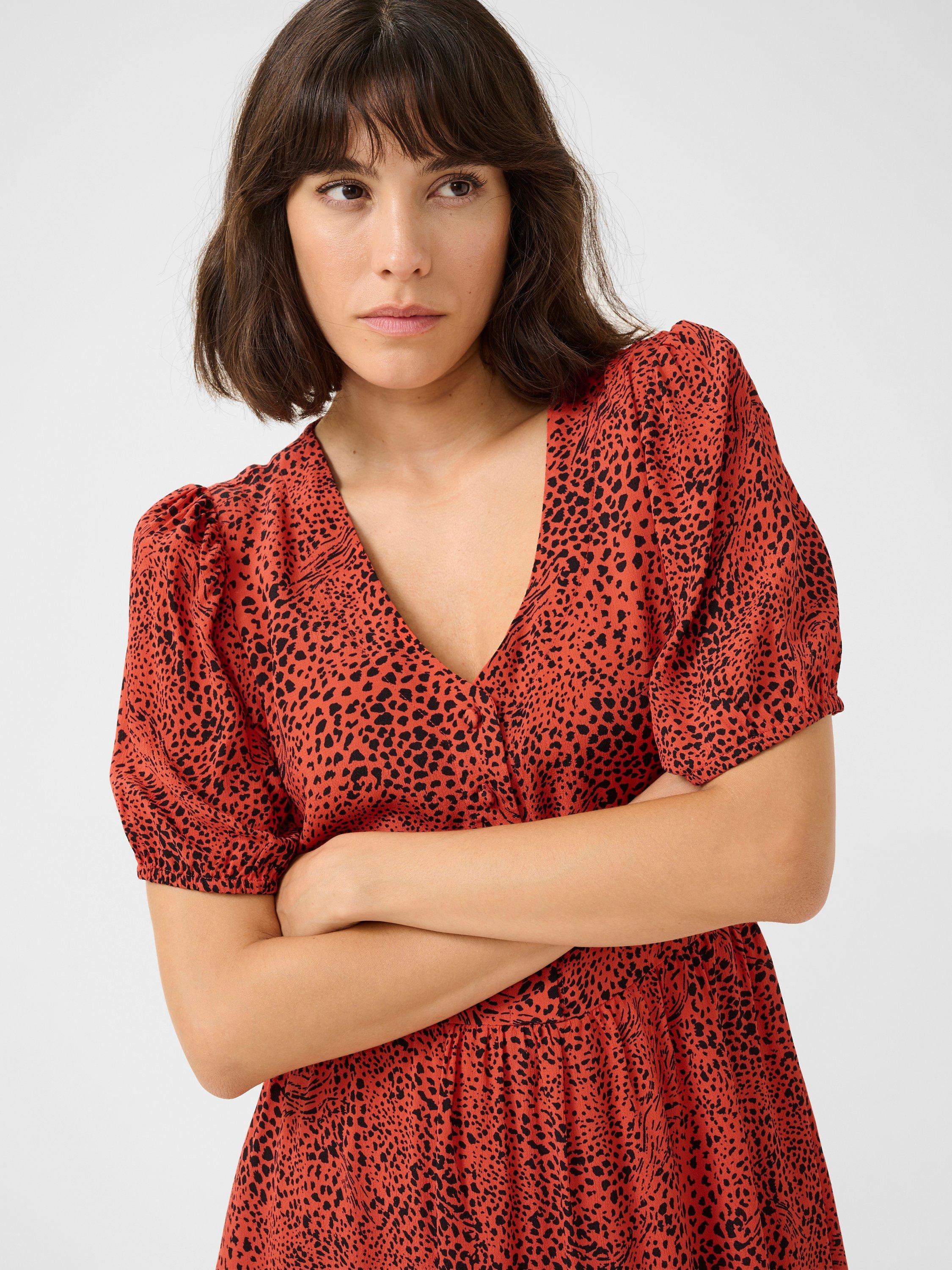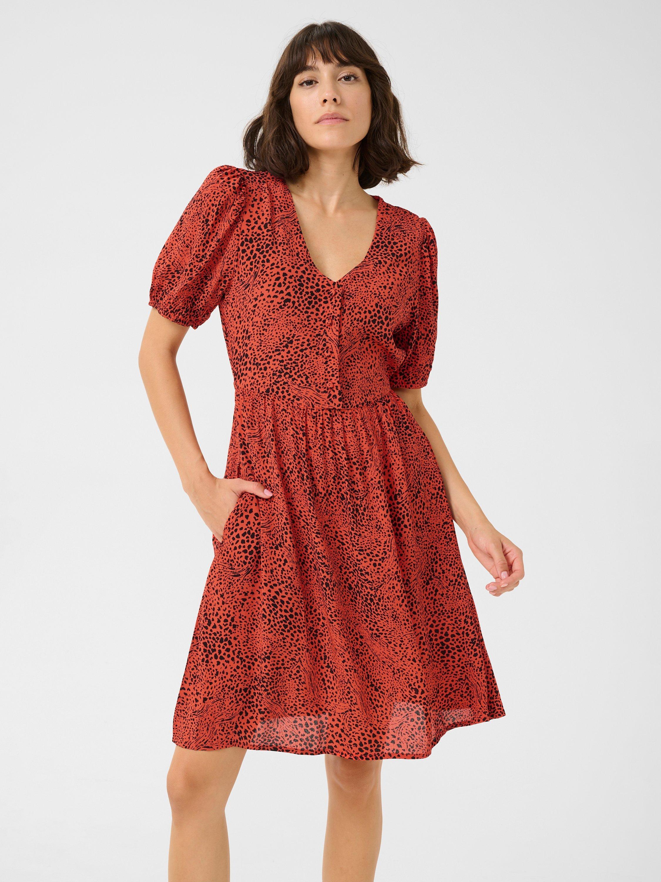 Elevate your style with the KAliana dress from KAFFE, ideal for versatile occasions. Designed in a chic leopard print, with a button-down front, short sleeves and side pockets.