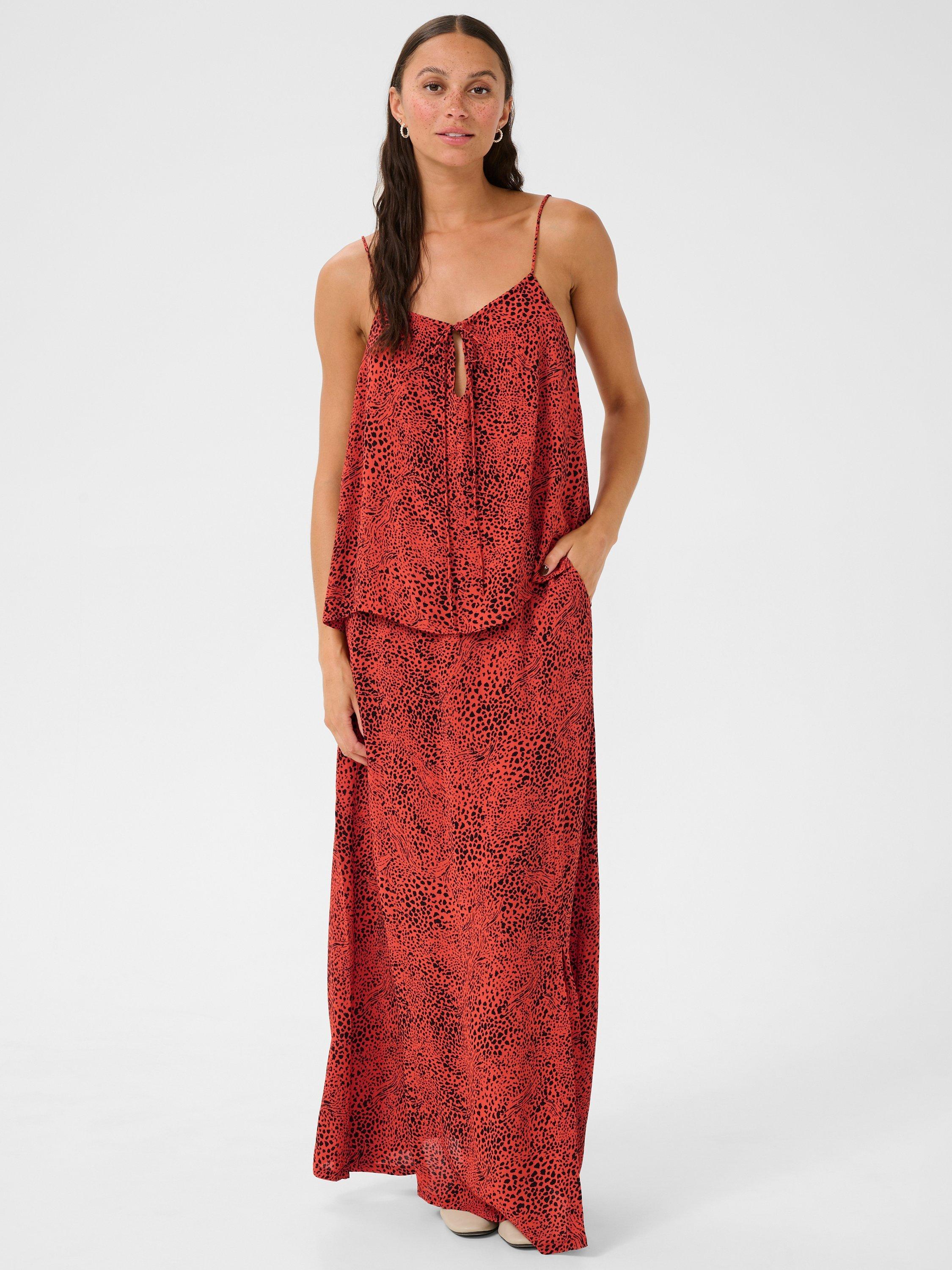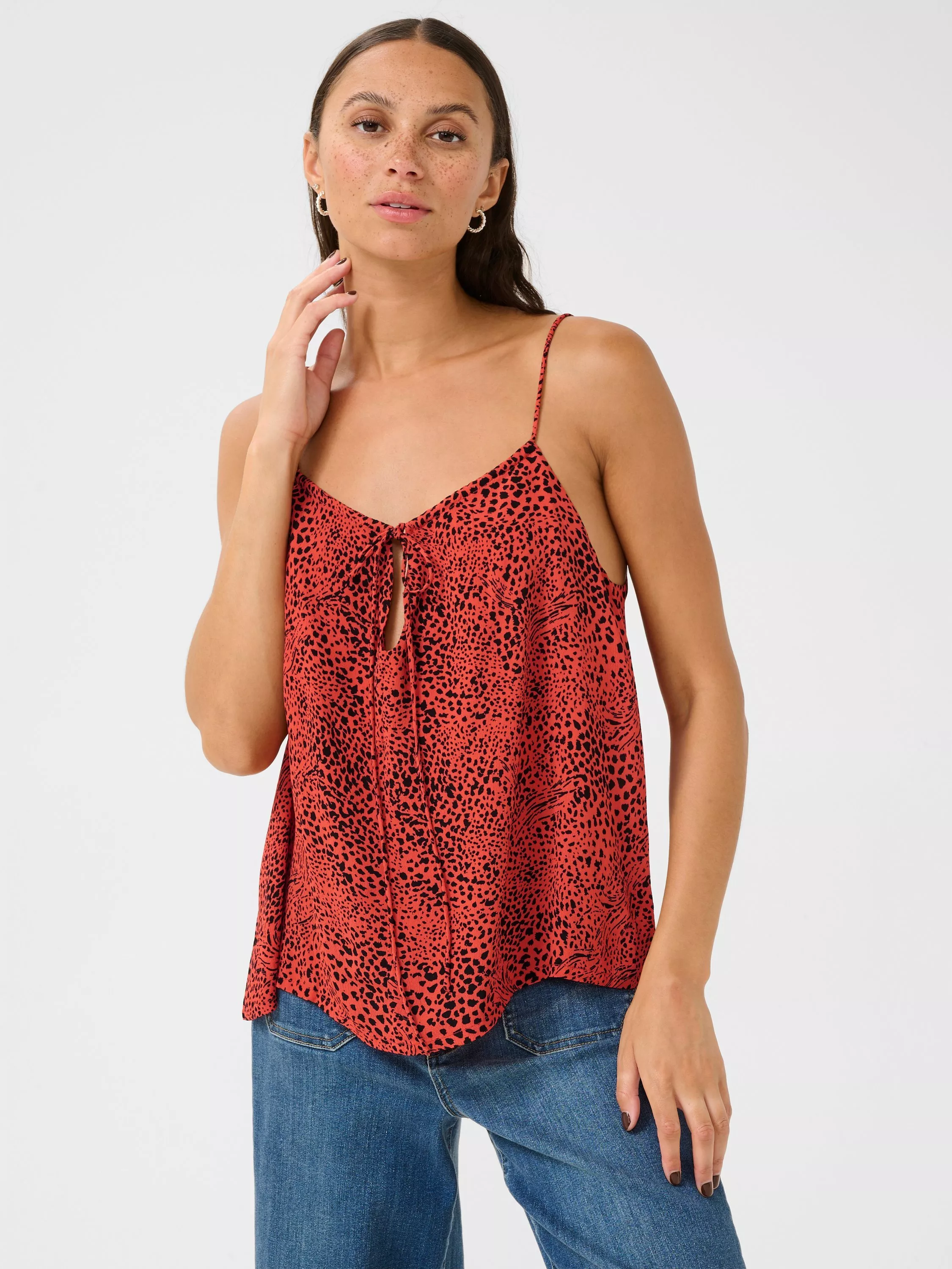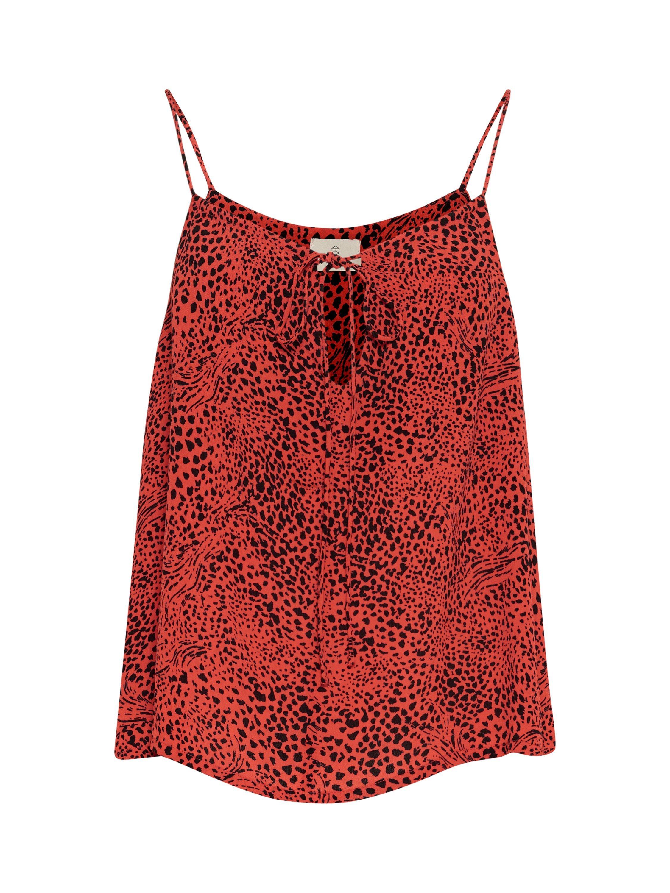 Embrace style effortlessly with the KAliana top from KAFFE, showcasing a vibrant animal pattern, tie front and fixed straps.