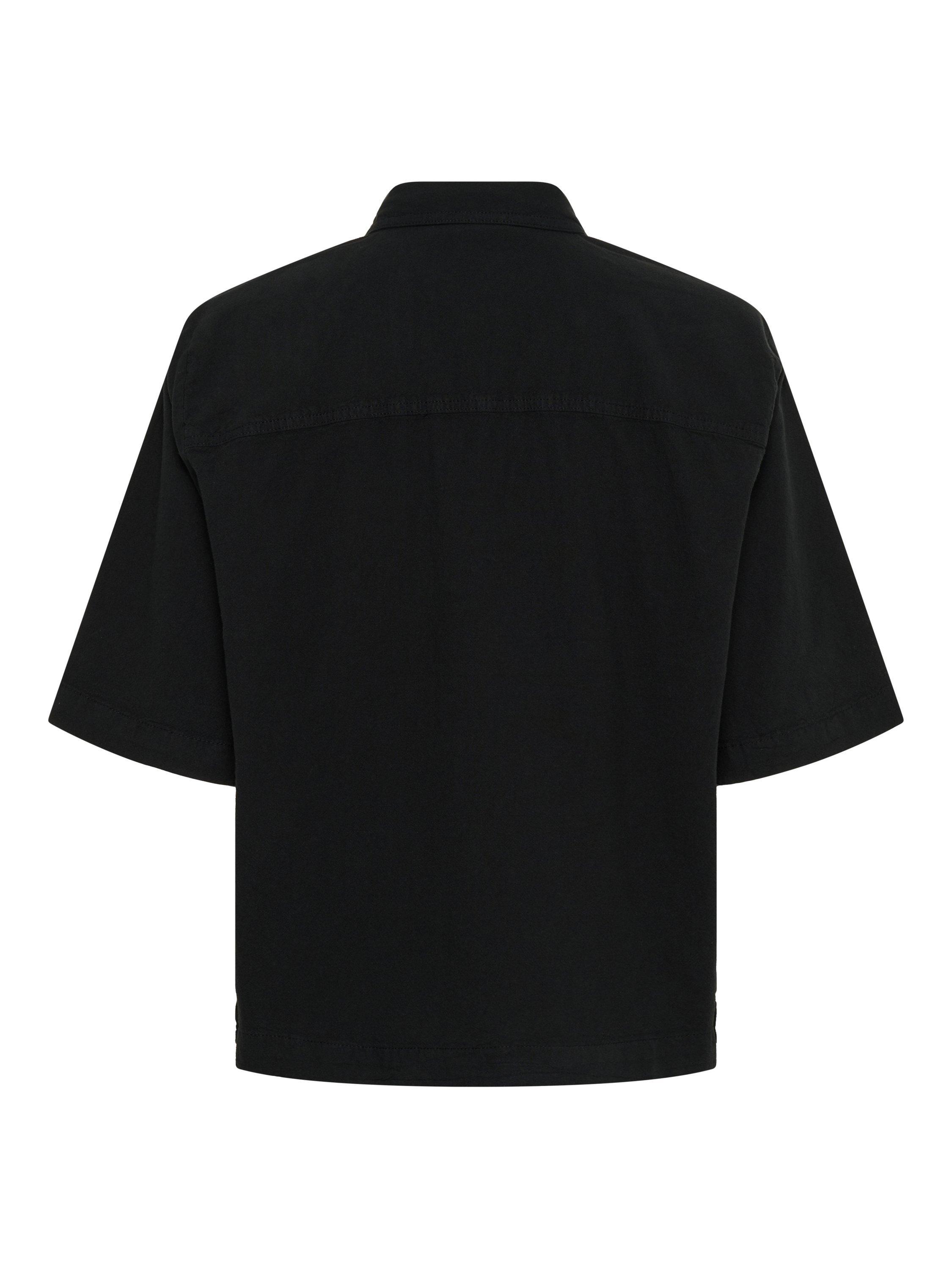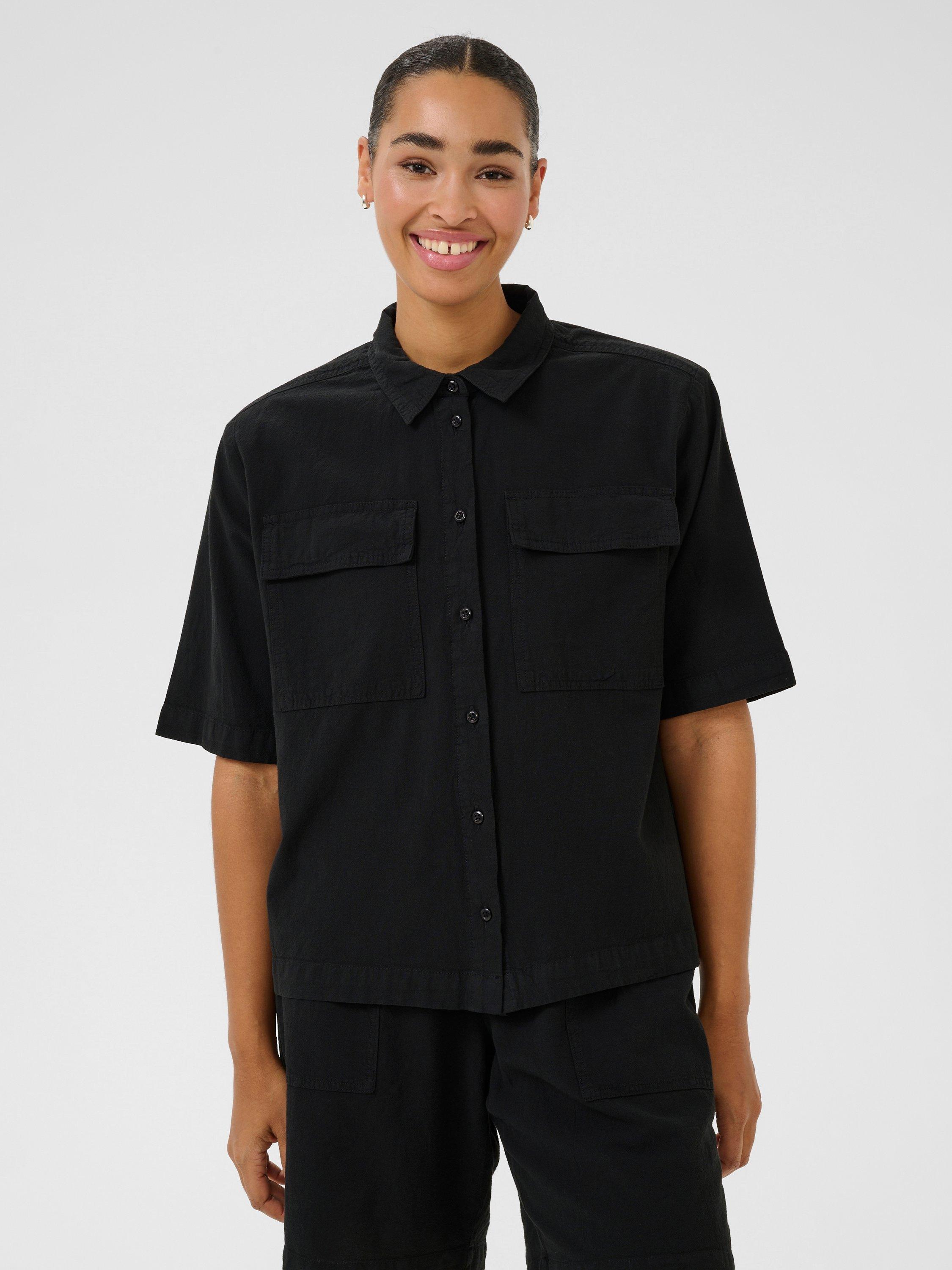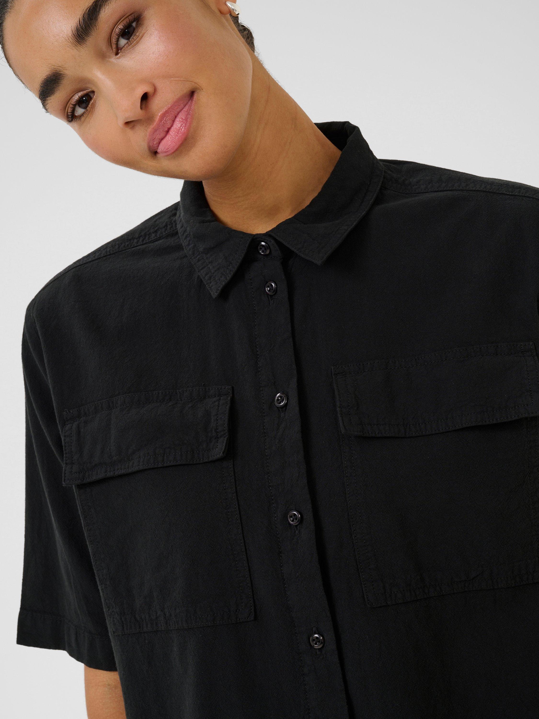 This casual, boxy fit utility shirt will add a cool touch to any outfit. Designed with a spread collar, button fastenings, a wide short sleeve and chest pockets with flaps, this cotton shirt finishes at the hip.