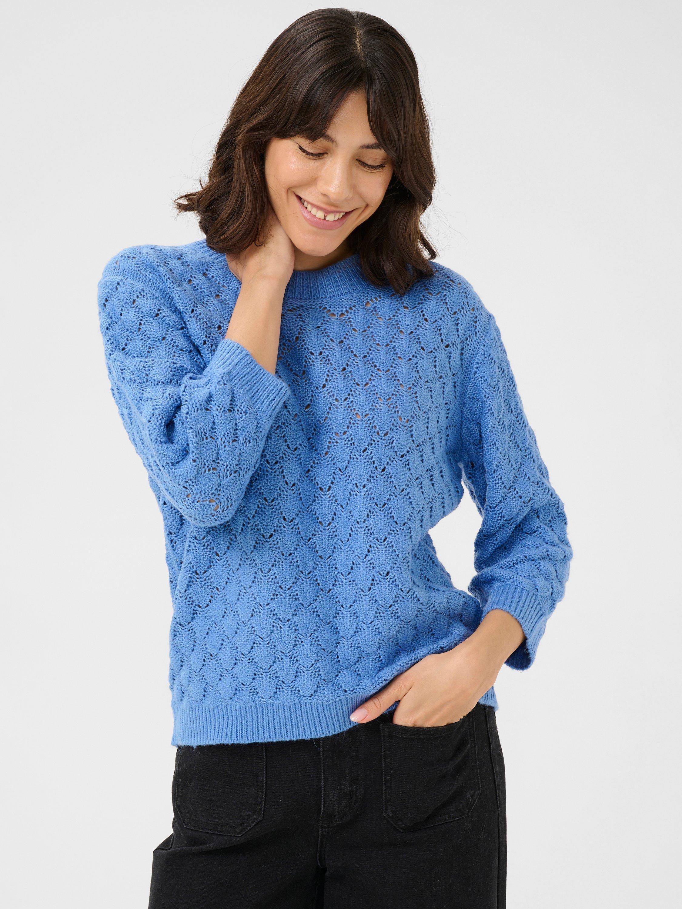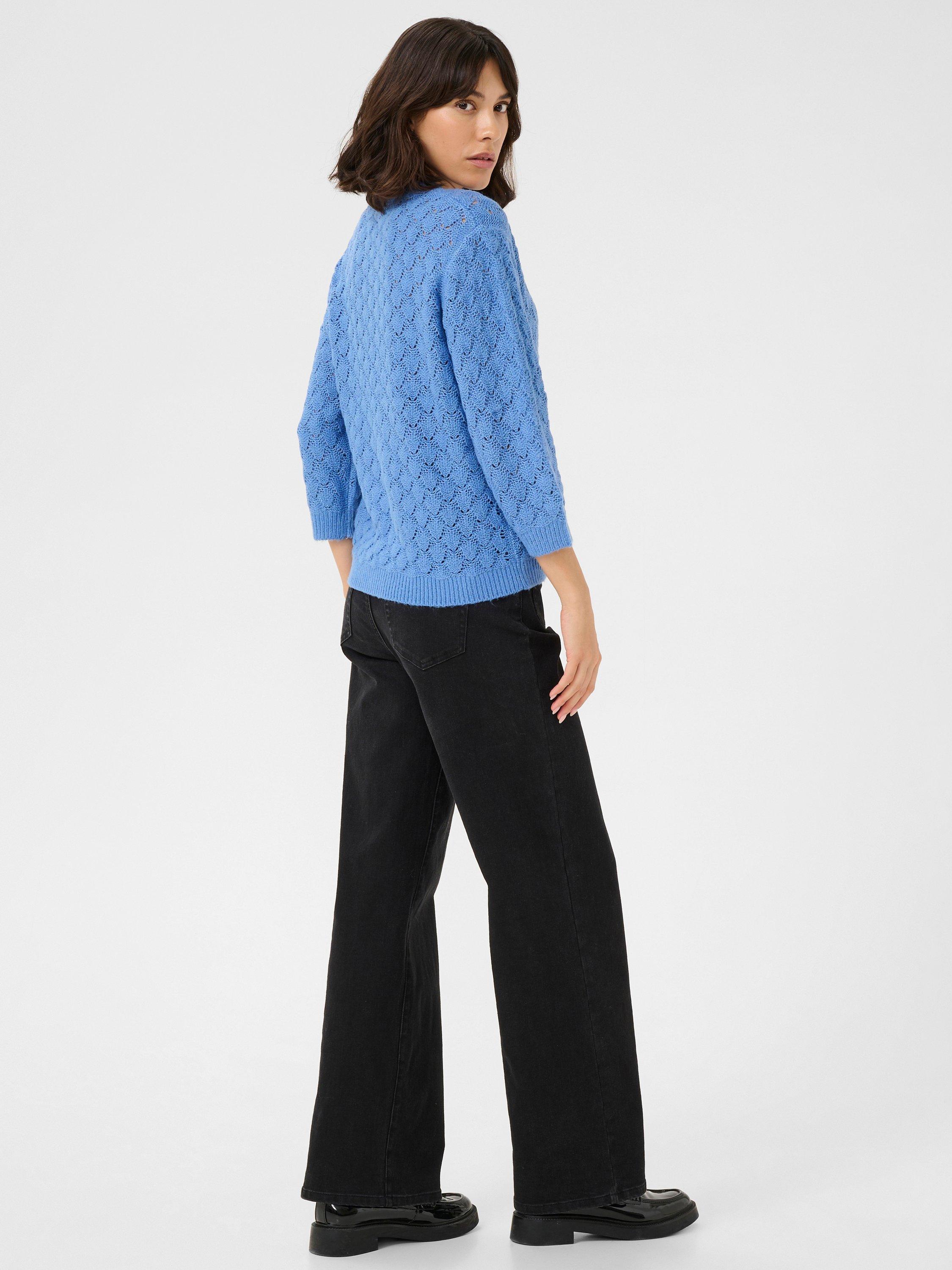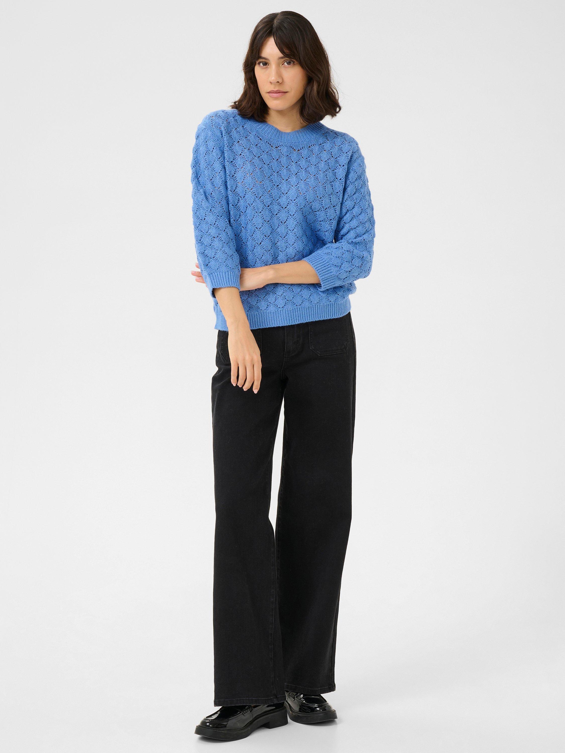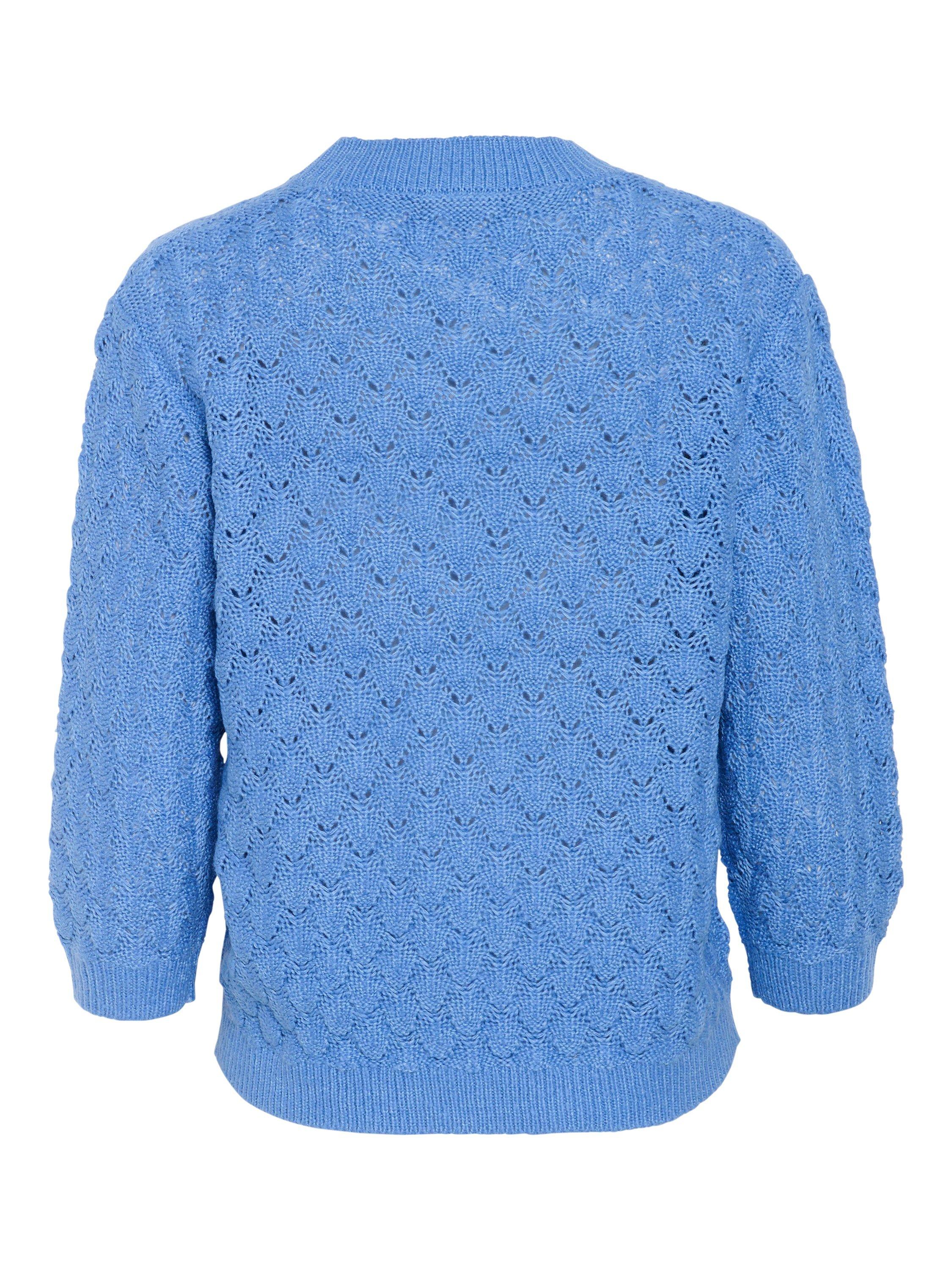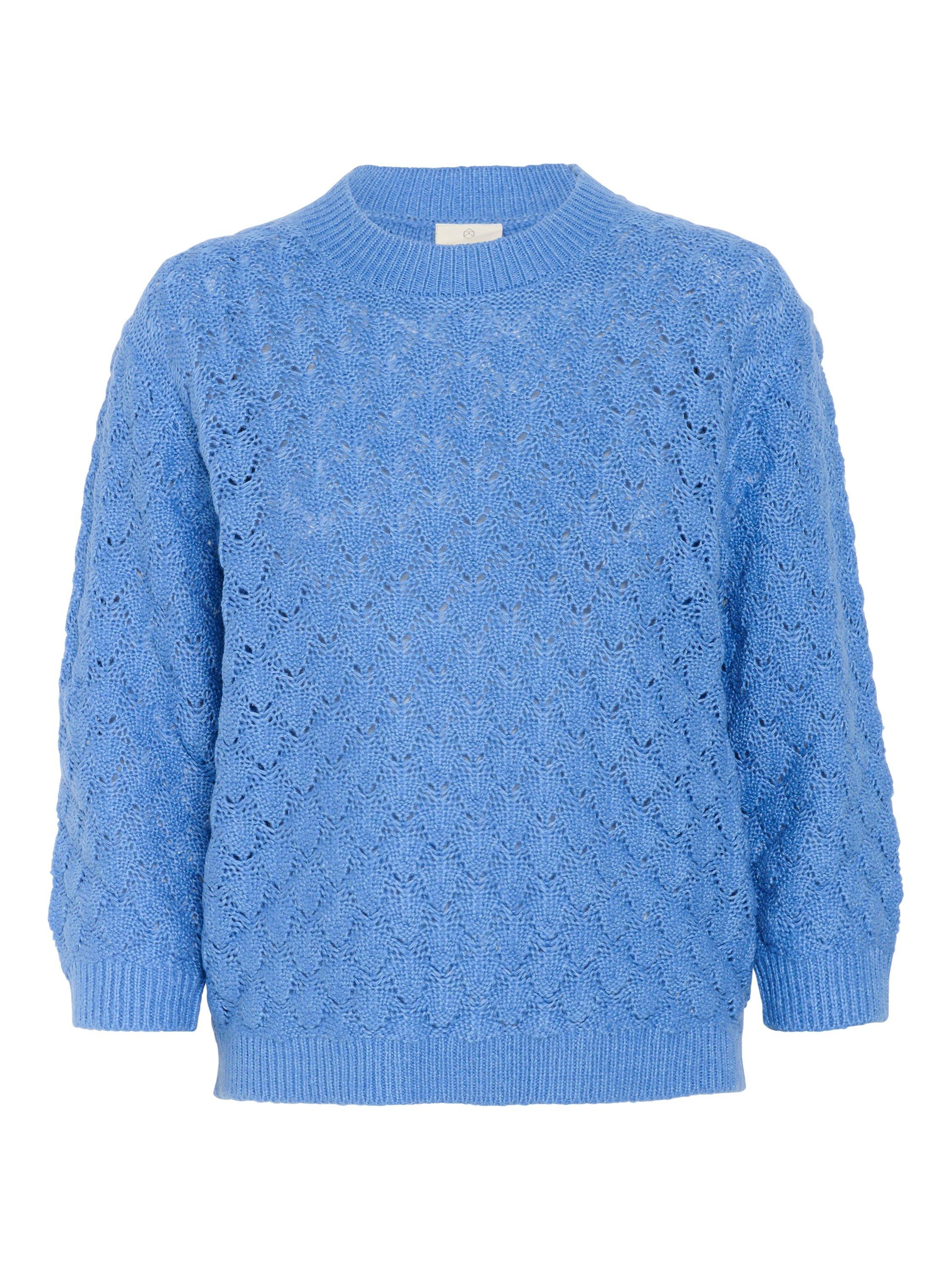 The kani pullover is a simple must-have item, that will give you a casual and cute look. It has a round neck and a loose fit, and it is made in a soft cable knit fabric. The sleeves are 3/4 length with a tapered fit, and all the edges are finished in a rib knit.