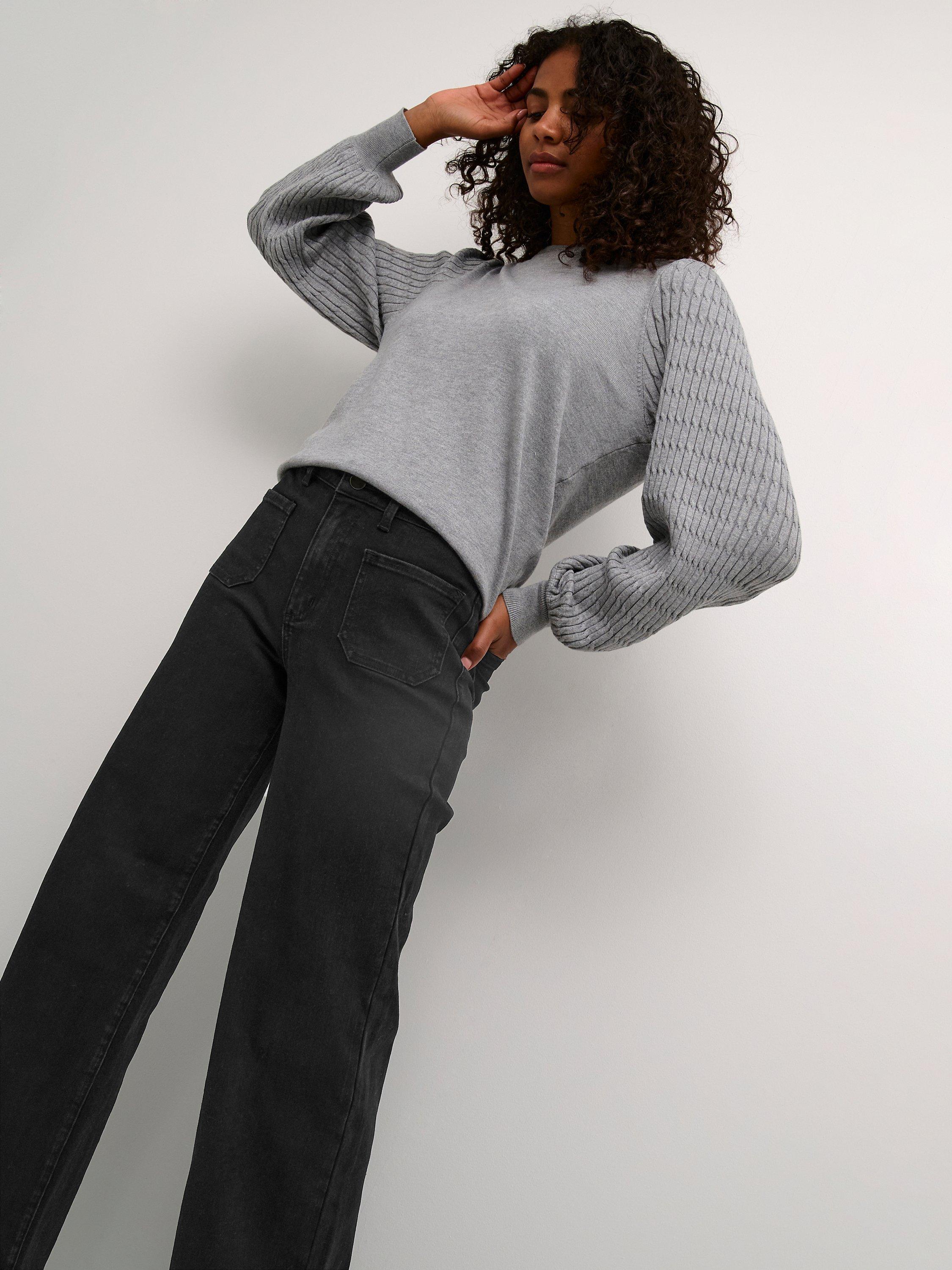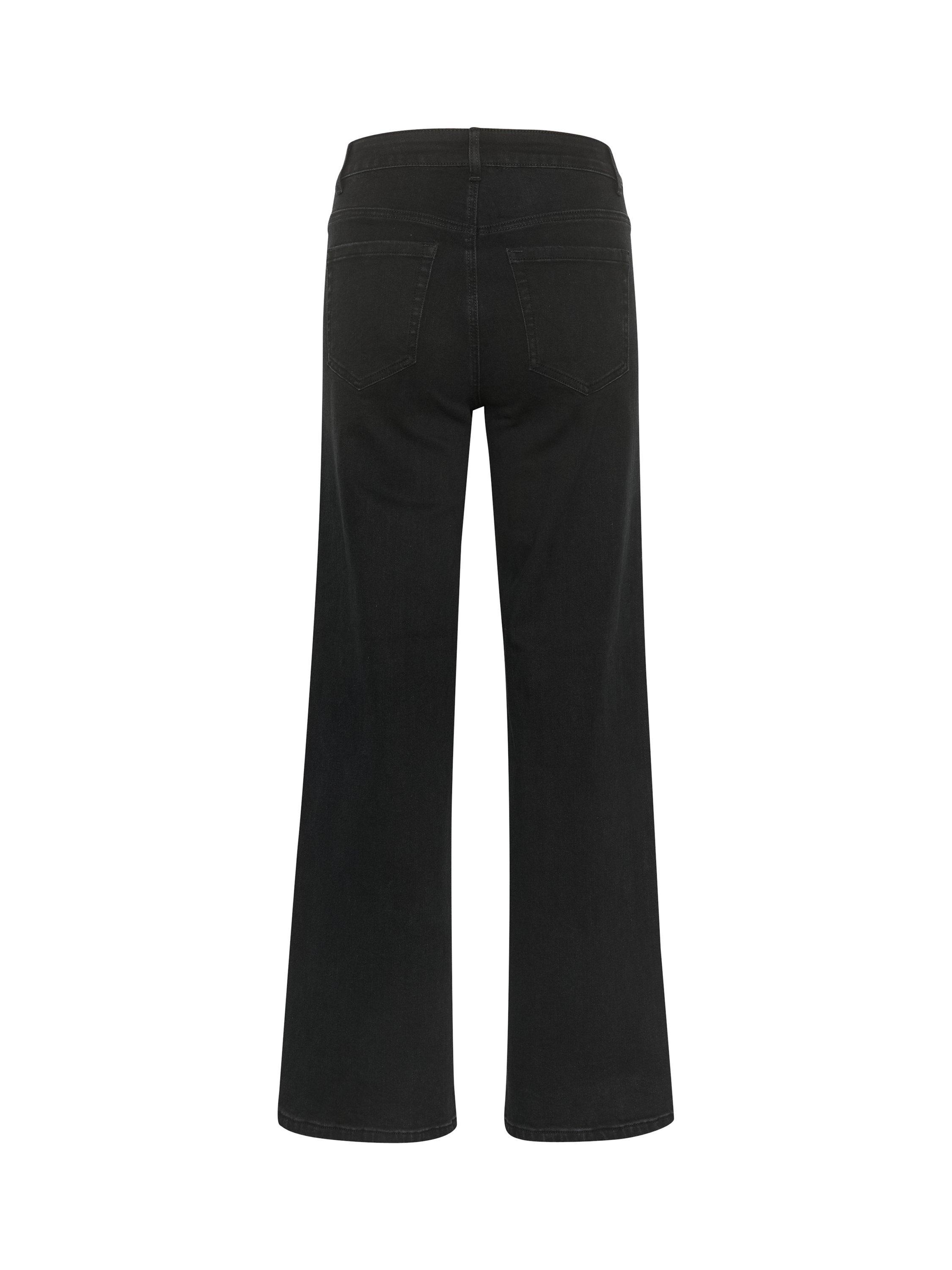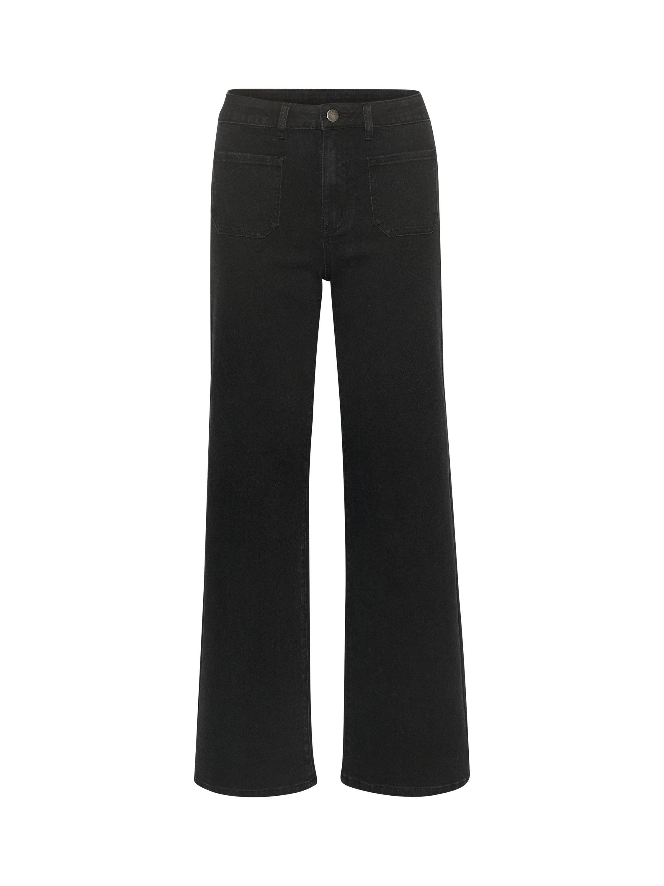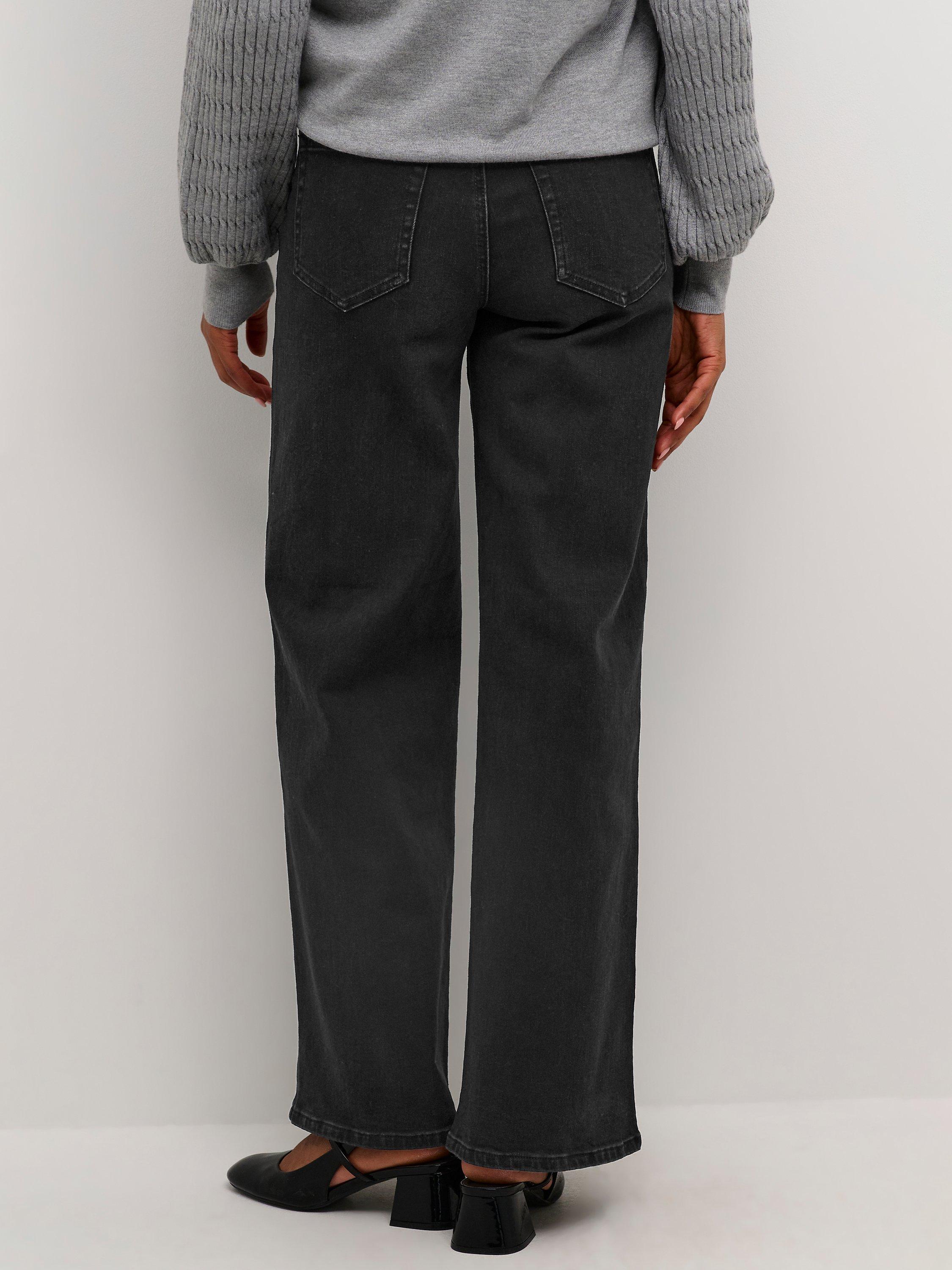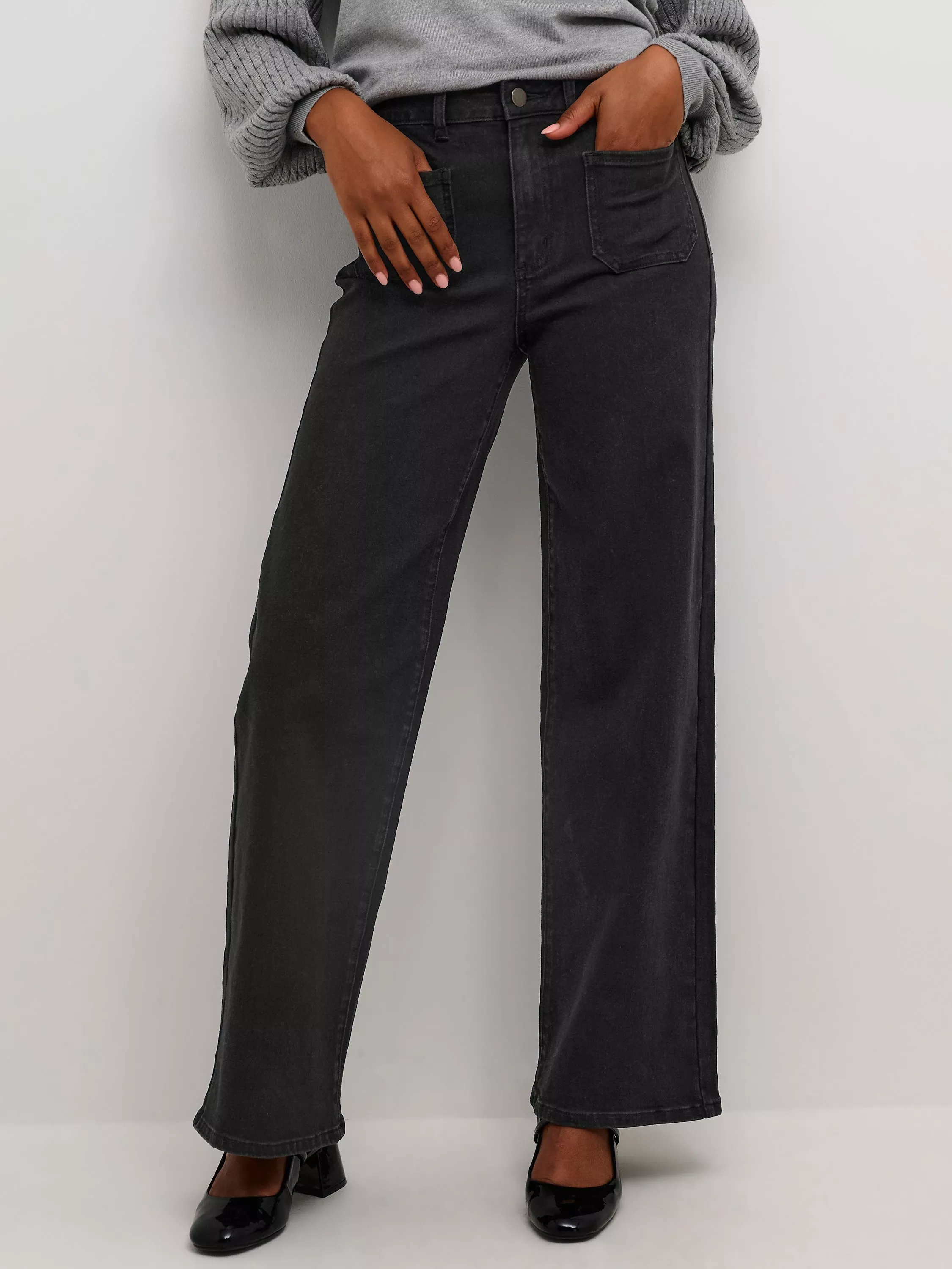 The karla jeans are a cool everyday style, that you can wear with any kind of top. They have a midrise waist with a regular waistband, and they have a regular fit with wide legs. The jeans have patch back pockets both front and back, and on the back they also have a yoke.