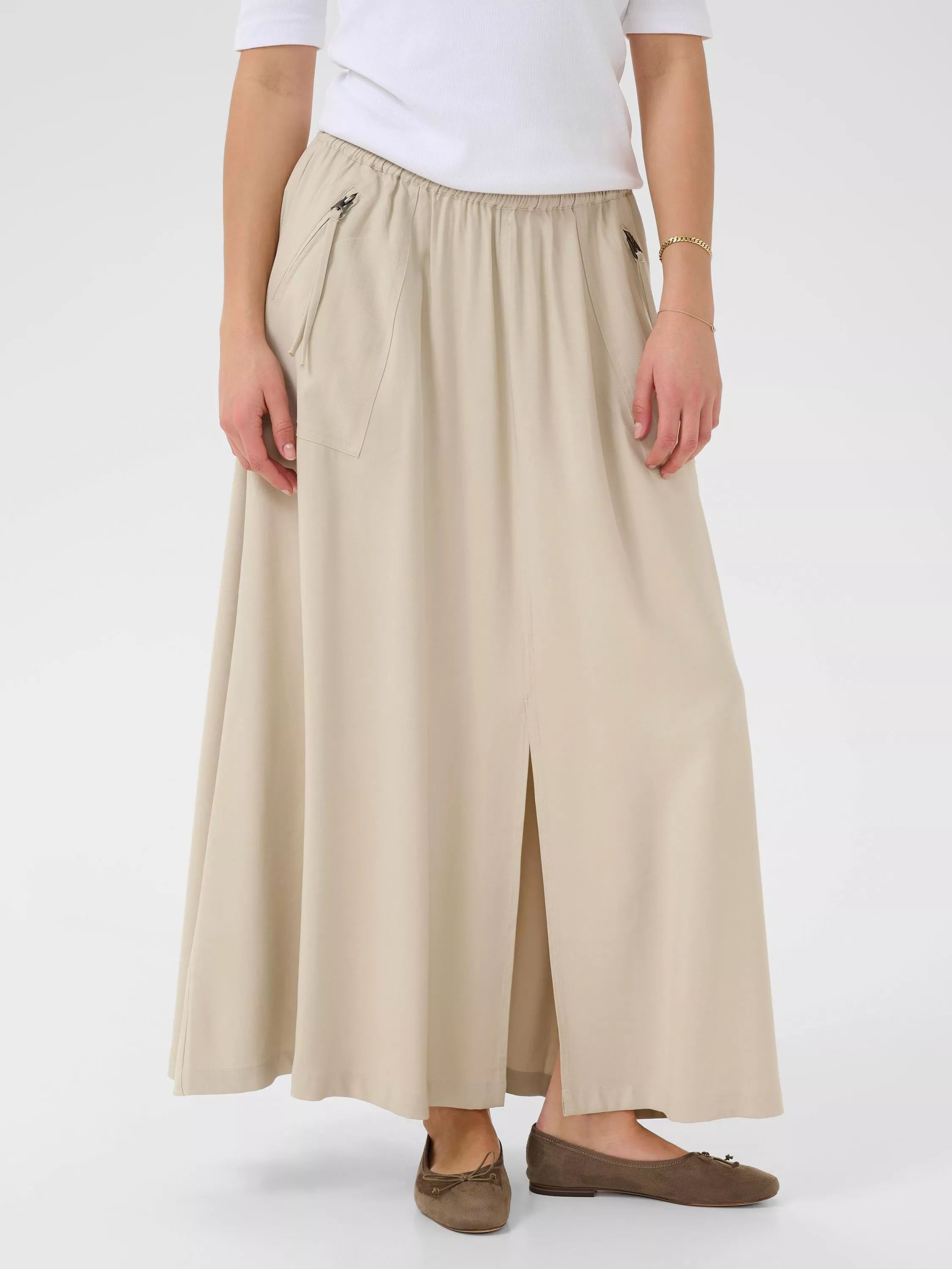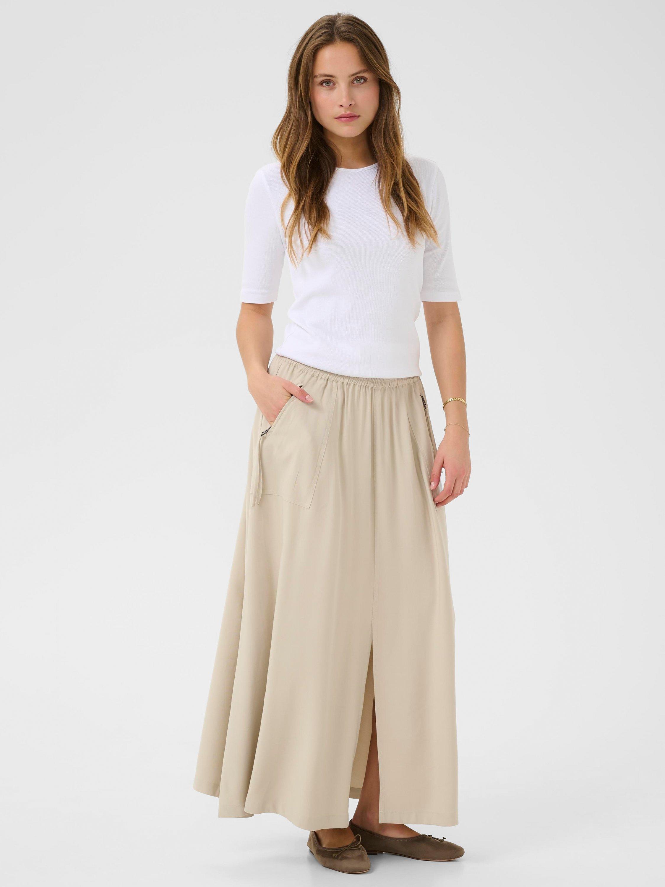 KAFFE's maxi skirt brings effortless style to any occasion, designed for comfort with a unique twist. The flowing silhouette and soft fabric invite you to move confidently from day to night.