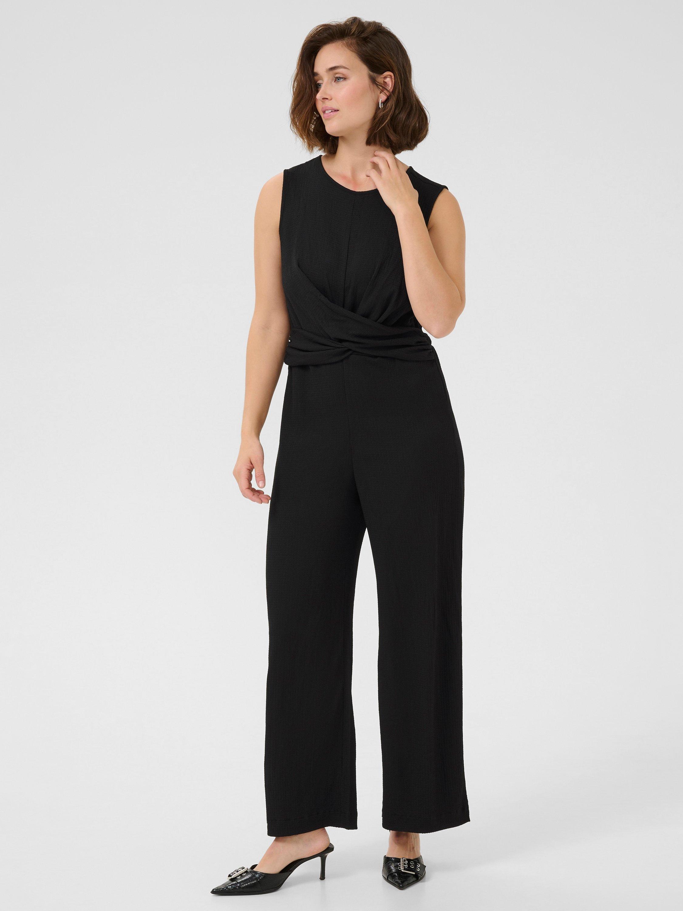 The katrine jumpsuit is the perfect alternative to a cocktail dress, and it will always make you look effortlessly chic. It is sleeveless with a round neck and a twist knot detail at the front, and it has a regular fit. The legs are wide and full-length, and the jumpsuit has an elastic waist.