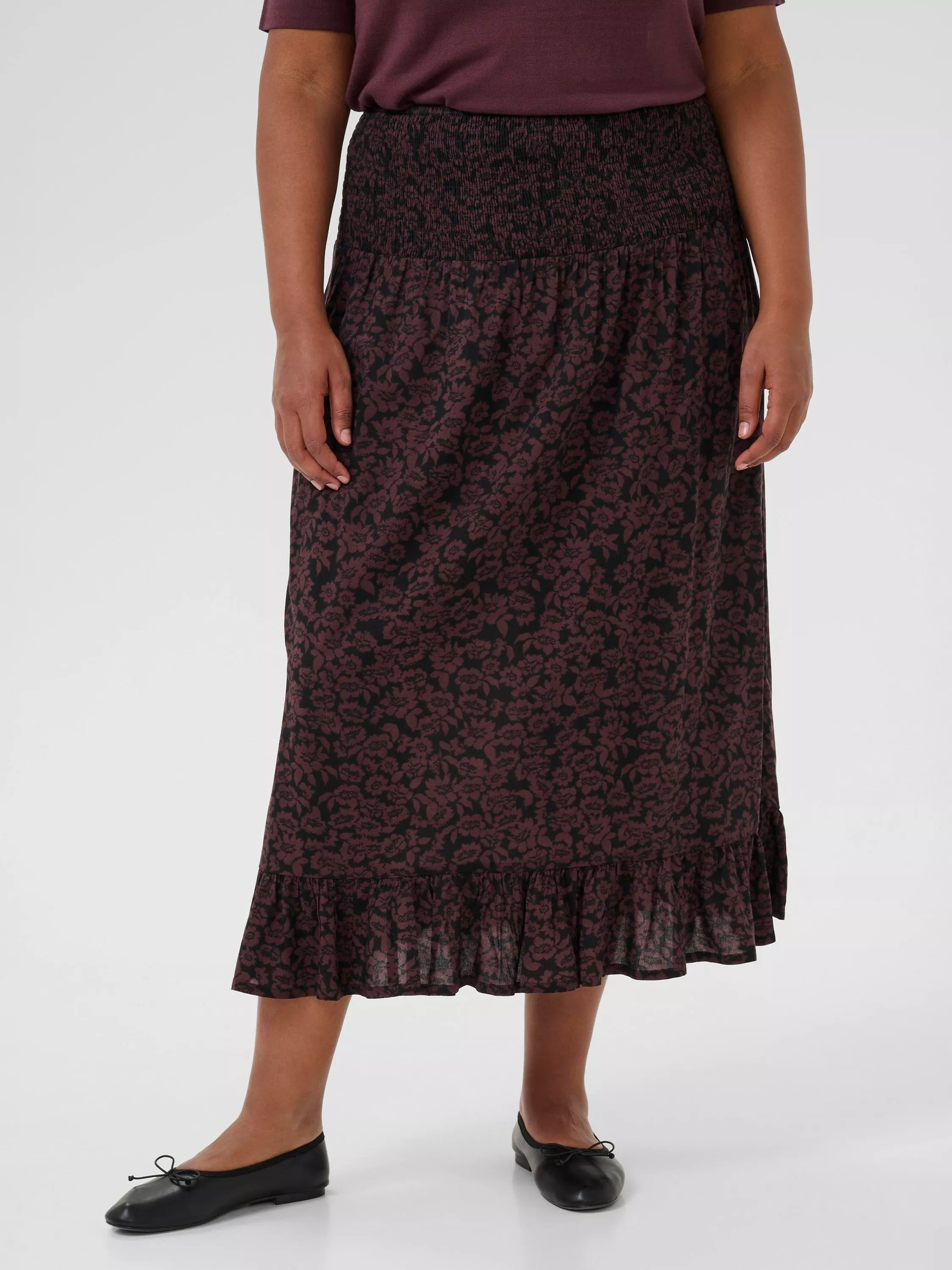A timeless A-line skirt perfect for both casual outings and formal events. Features a floral print in fudge with black hues for a sophisticated look.