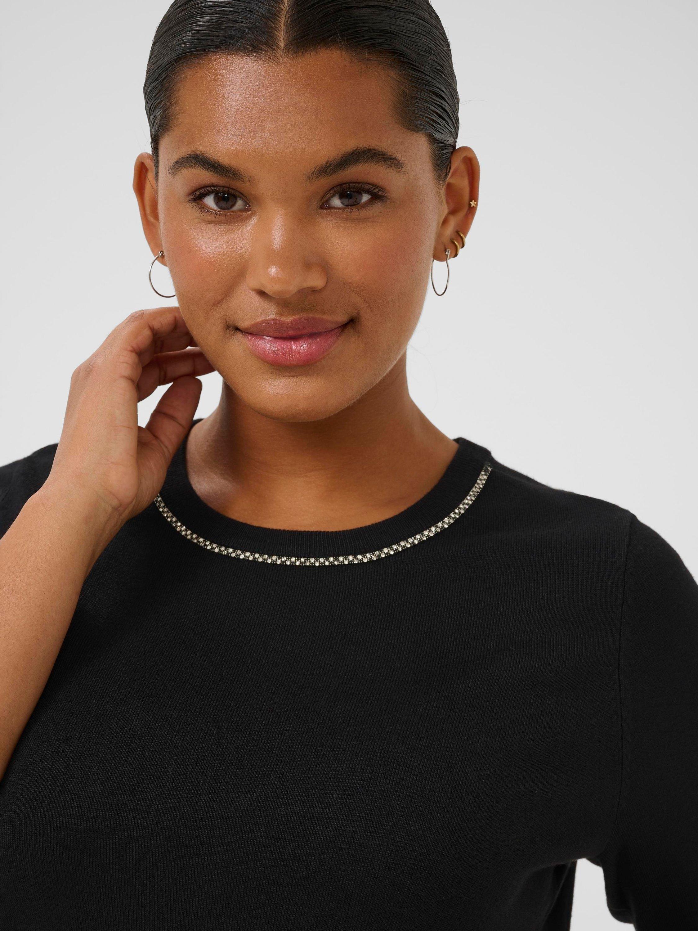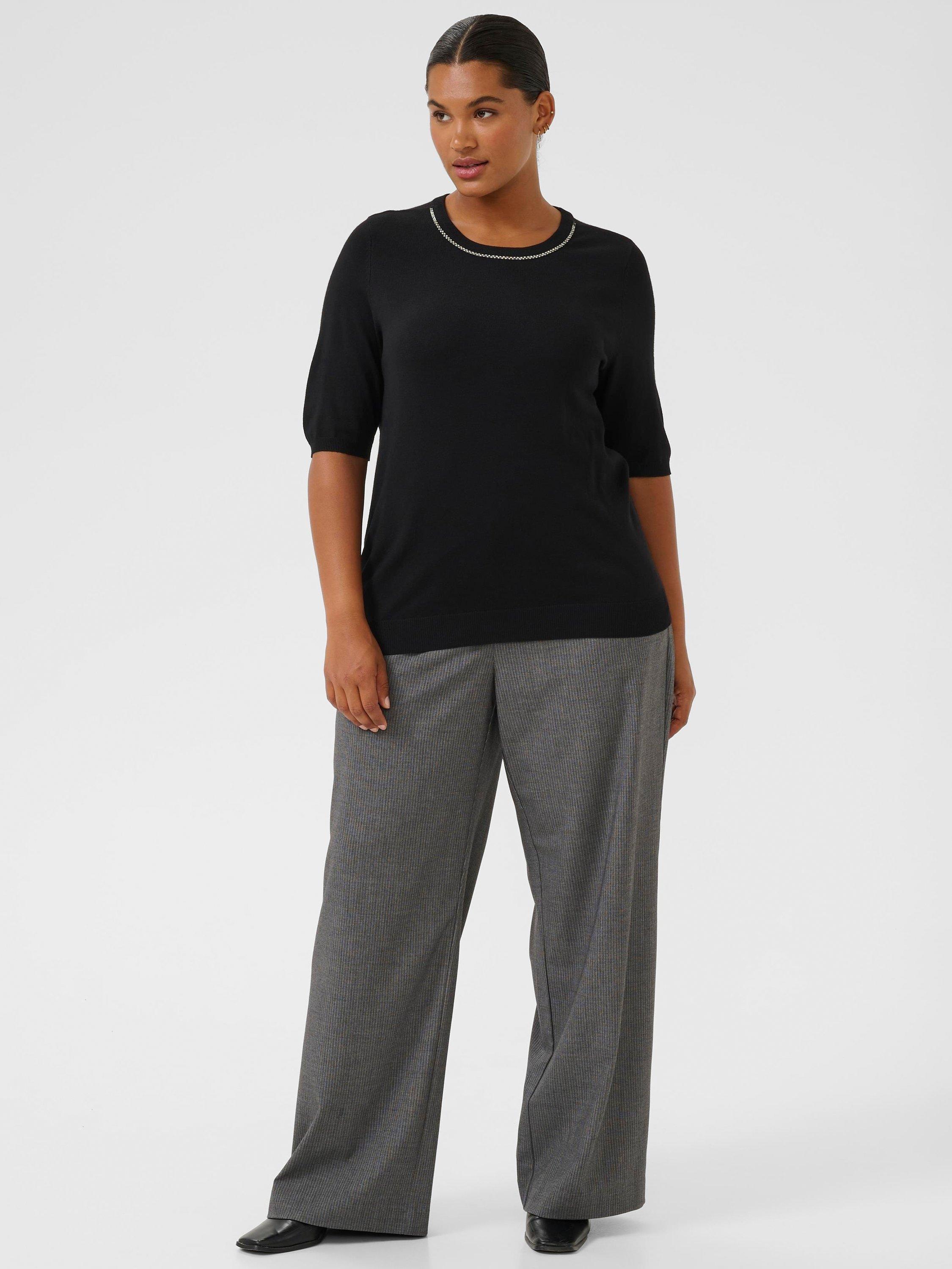 KAFFE Curve's jumper combines smart structure with soft comfort. The crew neck and short sleeves keep things fresh, while the viscose blend delivers smooth, reliable wear all day.