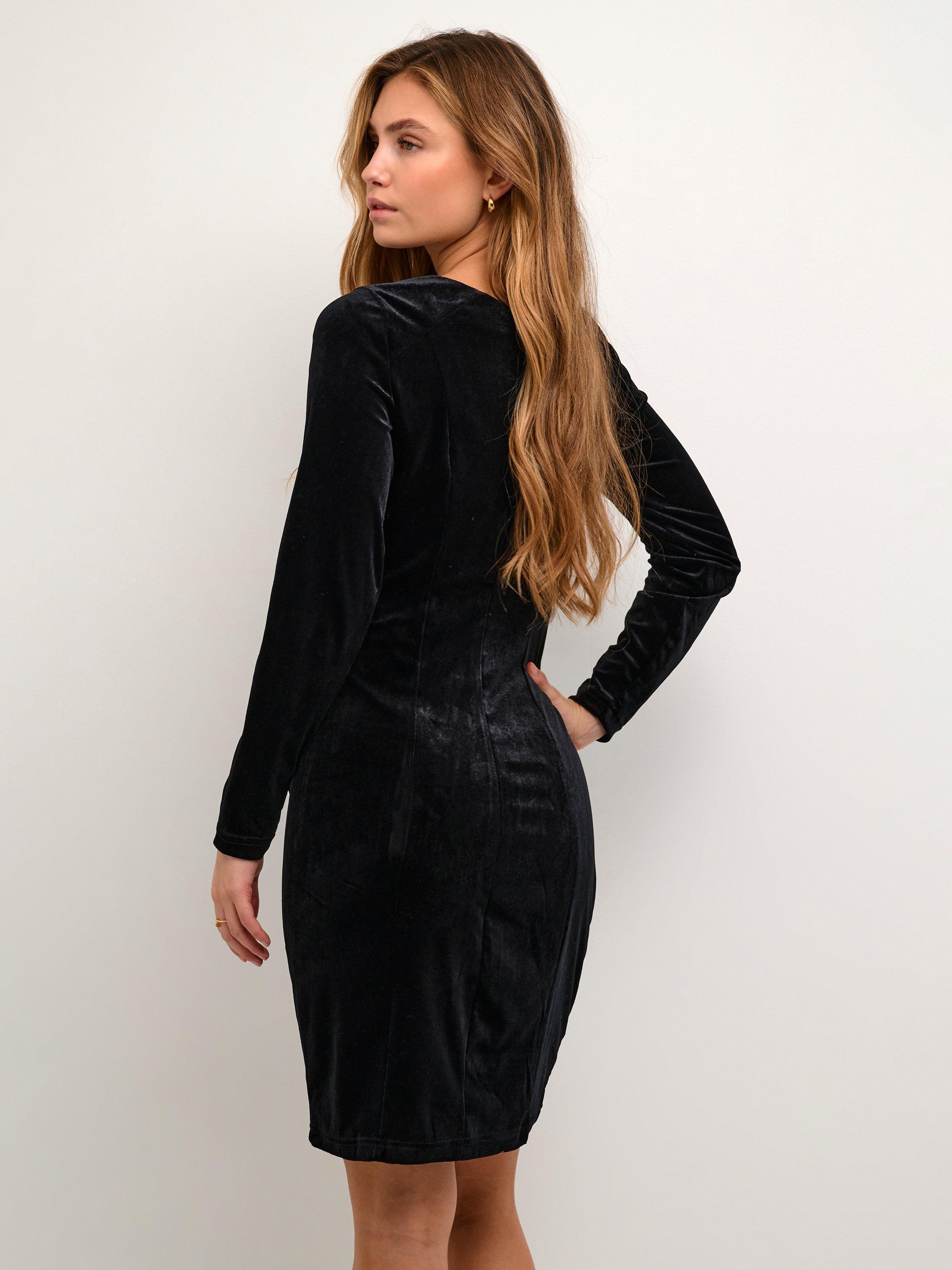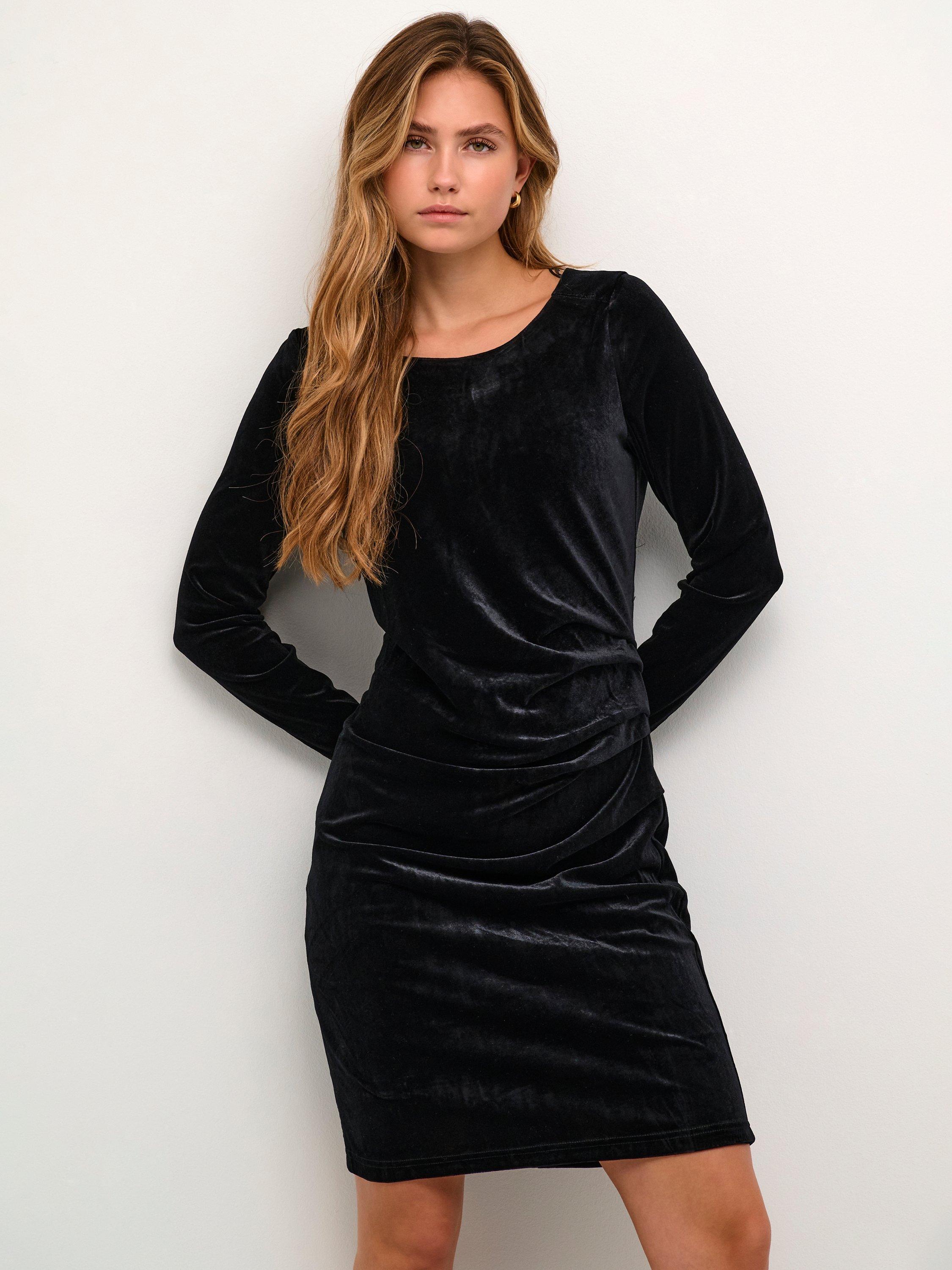 Made in supersoft velvet, the Kelly dress by KAFFE is a cute cocktail dress with soft drapings on the front, and princess seams and angled shoulder seams on the back. The dress has long, slim-fitting sleeves and a boat neckline, and is cut right above the knees.