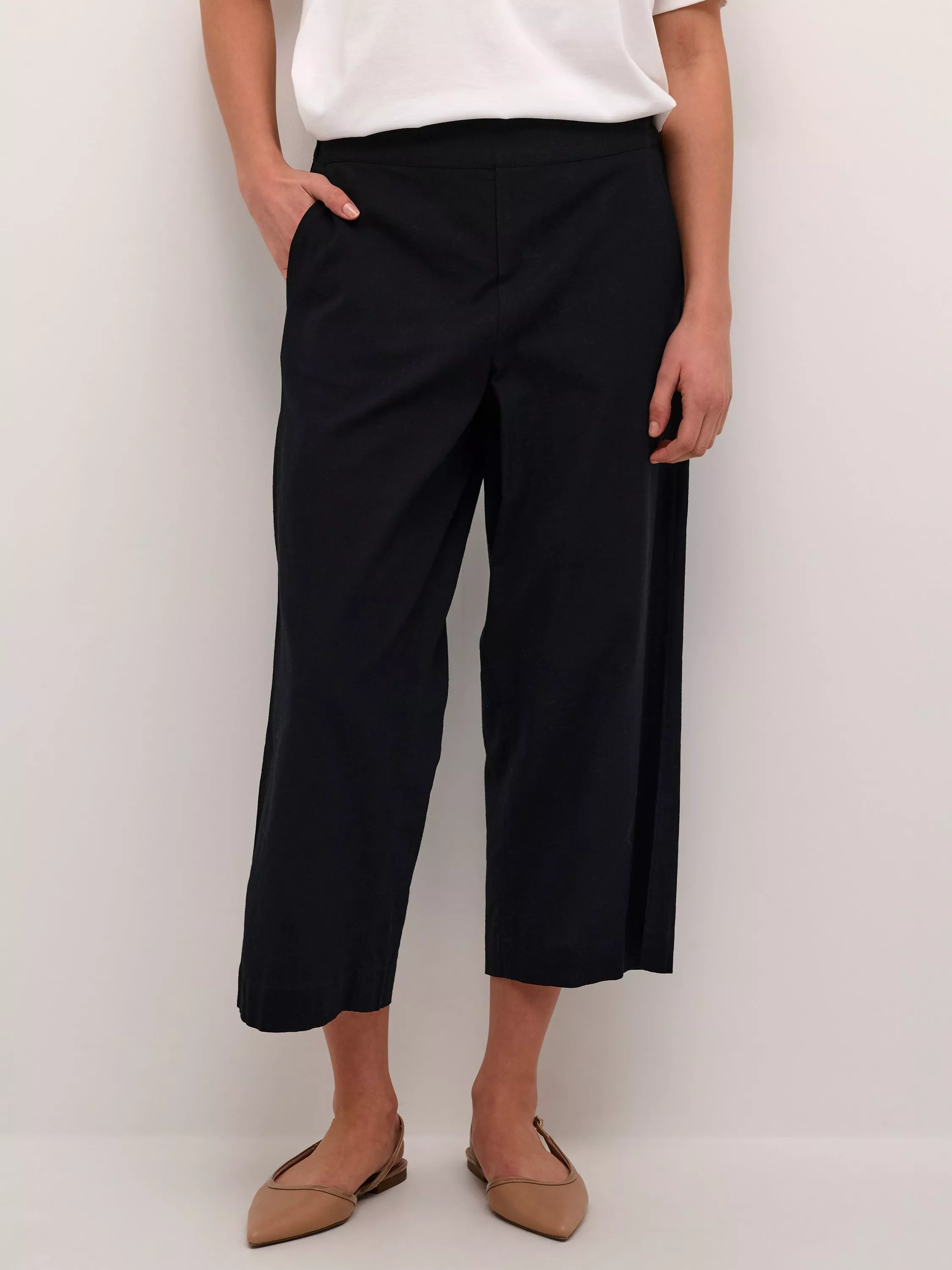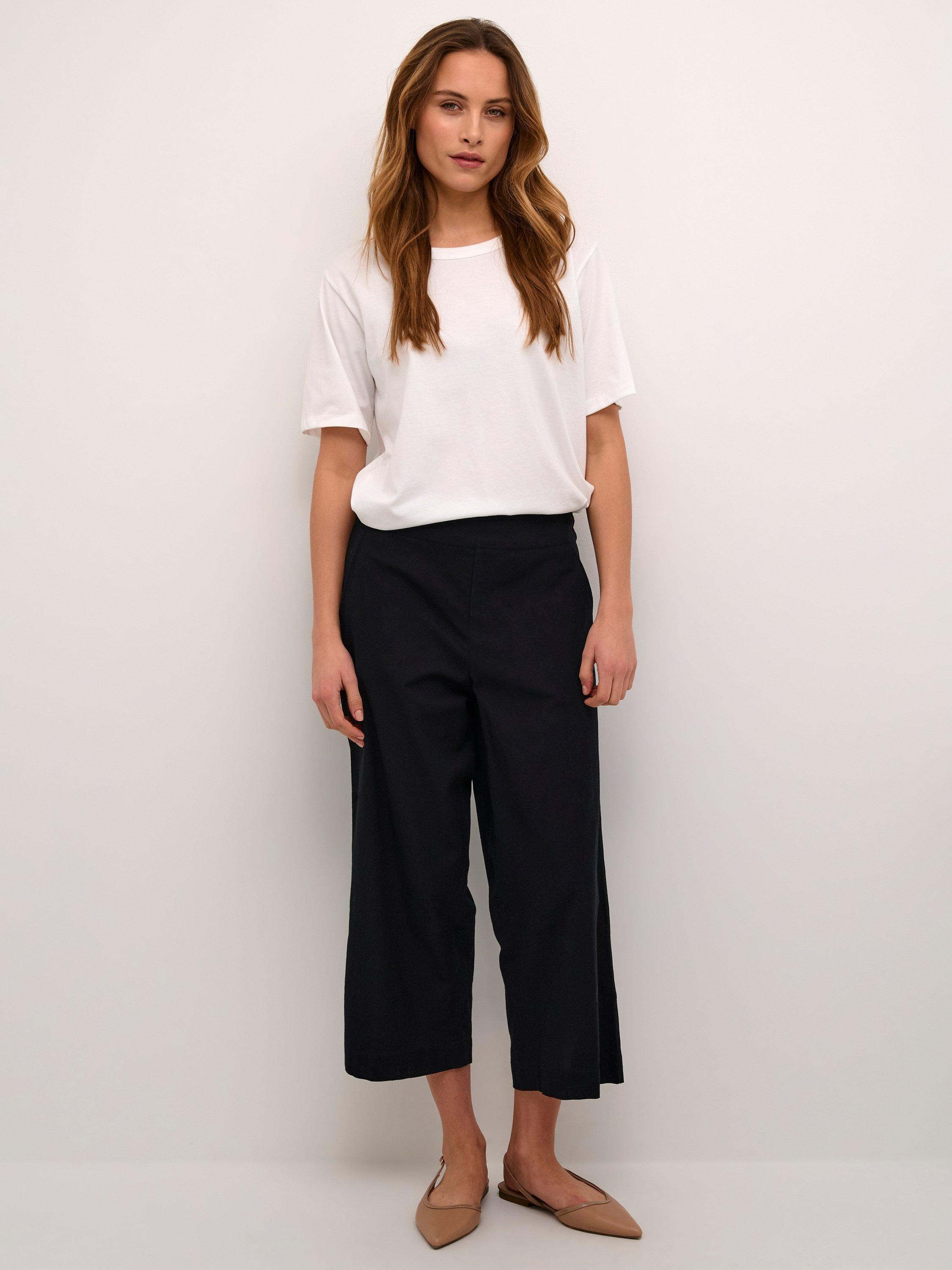 Giving the illusion of a skirt but with the practicality of trousers, this pair of trousers by KAFFE sit naturally on the hips and are cut to a straight fit. Formed from a comfy yet durable cotton blend fabric, they have cropped hems.