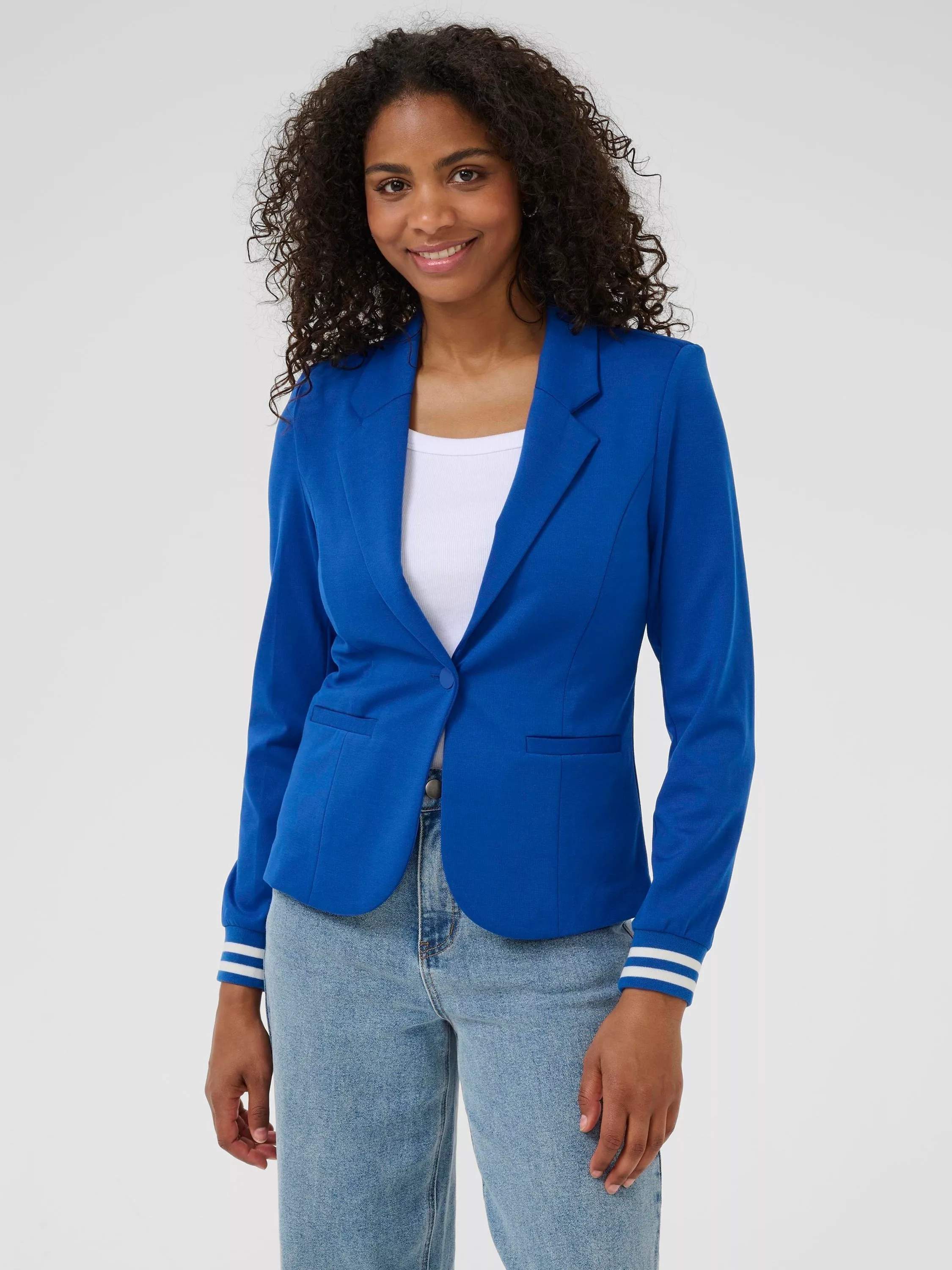 Carefully cut to a sharp silhouette, this blazer from KAFFE is framed with a collar neckline and finished with a stripe detail at the cuff.