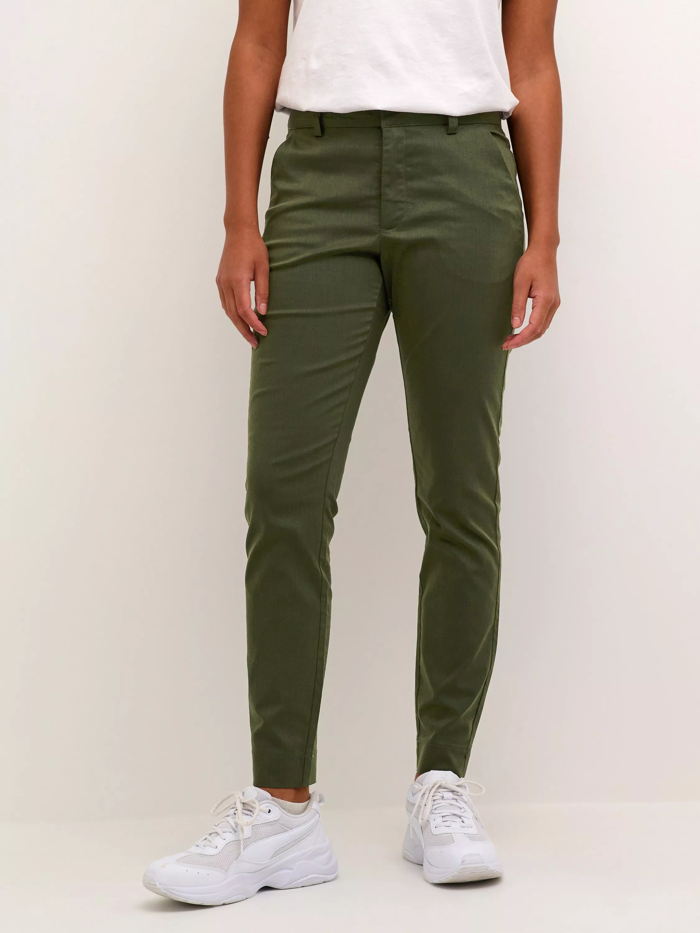 Designed in a fit that is slim but not skinny, these mid rise chinos from KAFFE are blended with natural cotton for breathability and graze the ankles for an on-trend look.